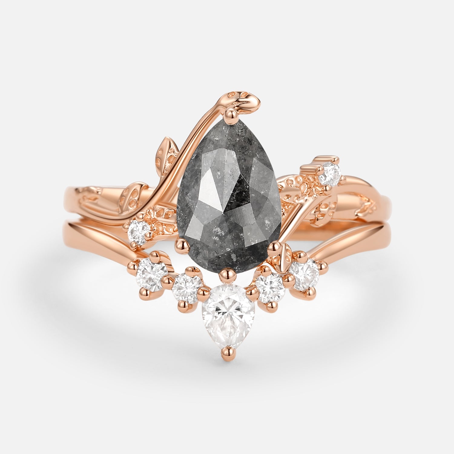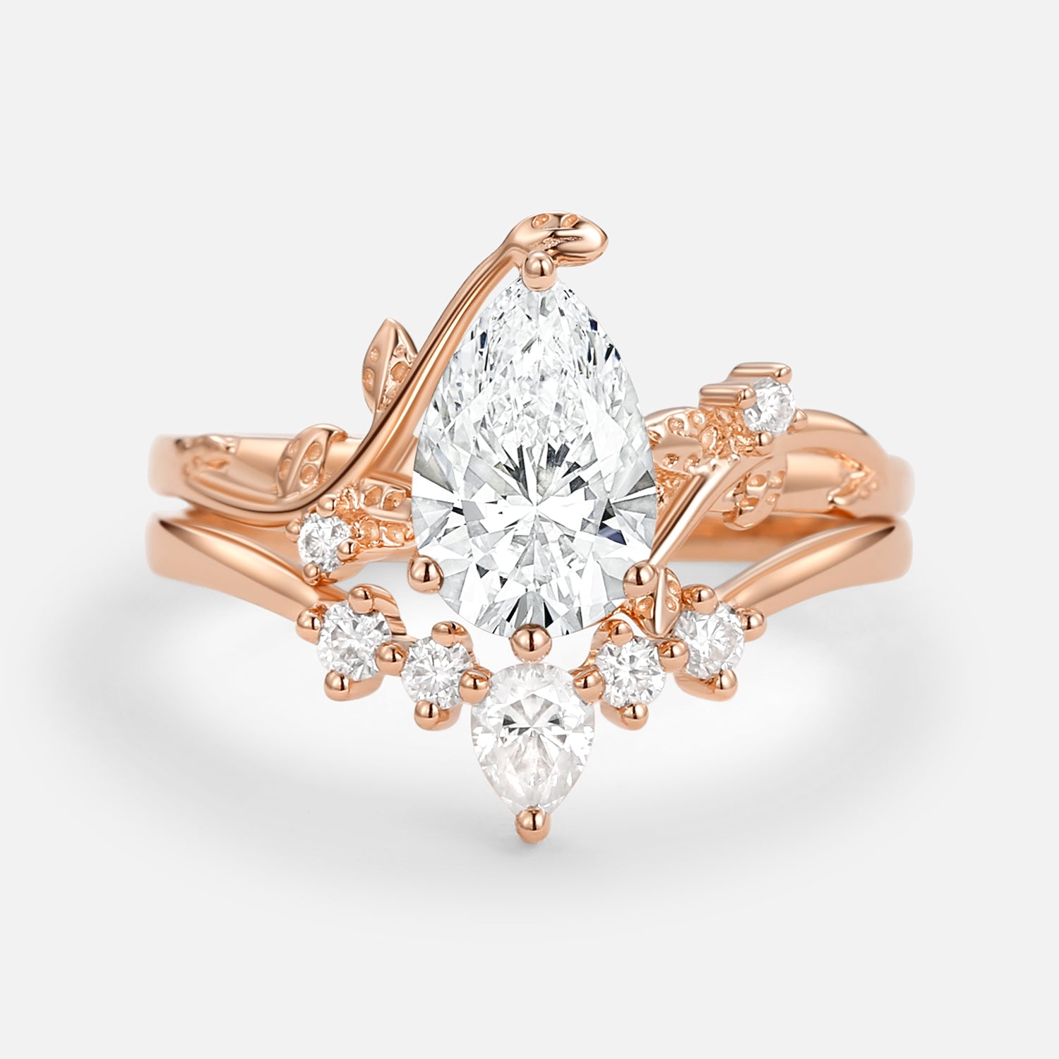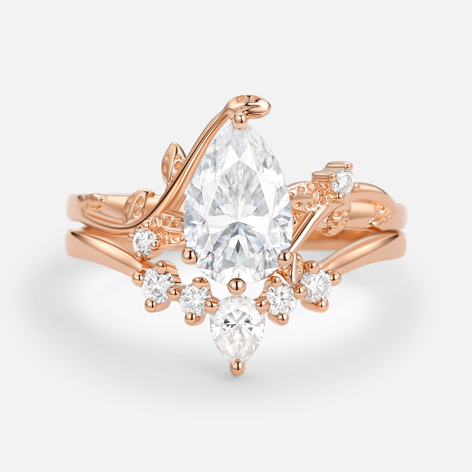 Felicegals Moss Agate Rings Pear Shaped Engagement Ring Pear Moss Agate Ring Vine Band Art Deco Chevron Band Marquise Leafy Infinity Ring Bridal Set 2pc Rose Gold Ring