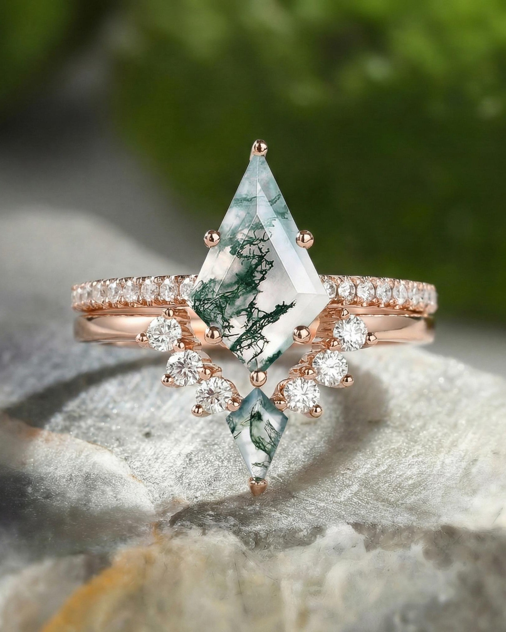 Introducing our Moss Canvas Series—where earth’s organic beauty dances with vibrant color. Each design centers on a one-of-a-kind moss agate: its swirly green veins tell a story of the wild, like tiny forests or misty meadows captured in stone. No two rings are the same: some feature dainty colored stones clustered around the moss agate, others line the band in subtle pops of color, all crafted to feel both fresh and timeless. This series isn’t just jewelry—it’s a way to carry nature’s diversity with you, turning everyday moments into something vivid and unique.