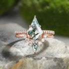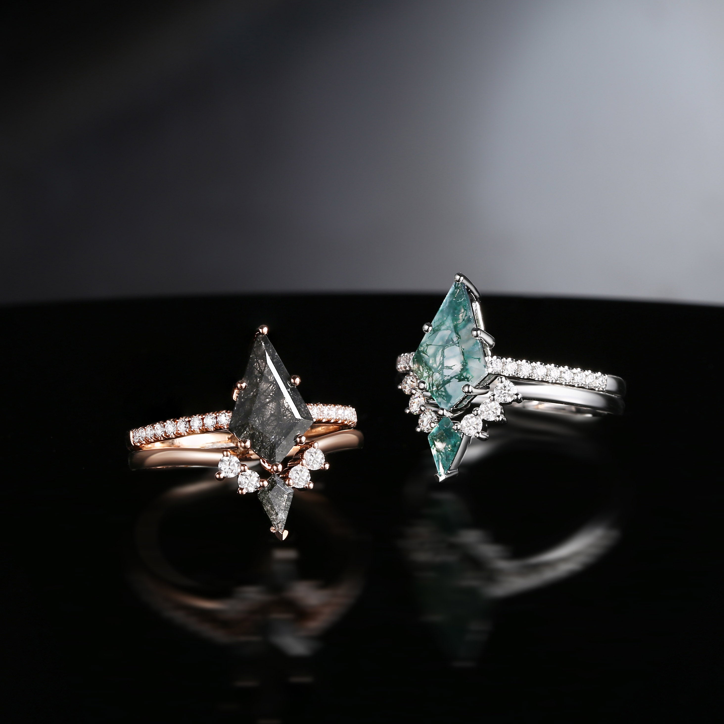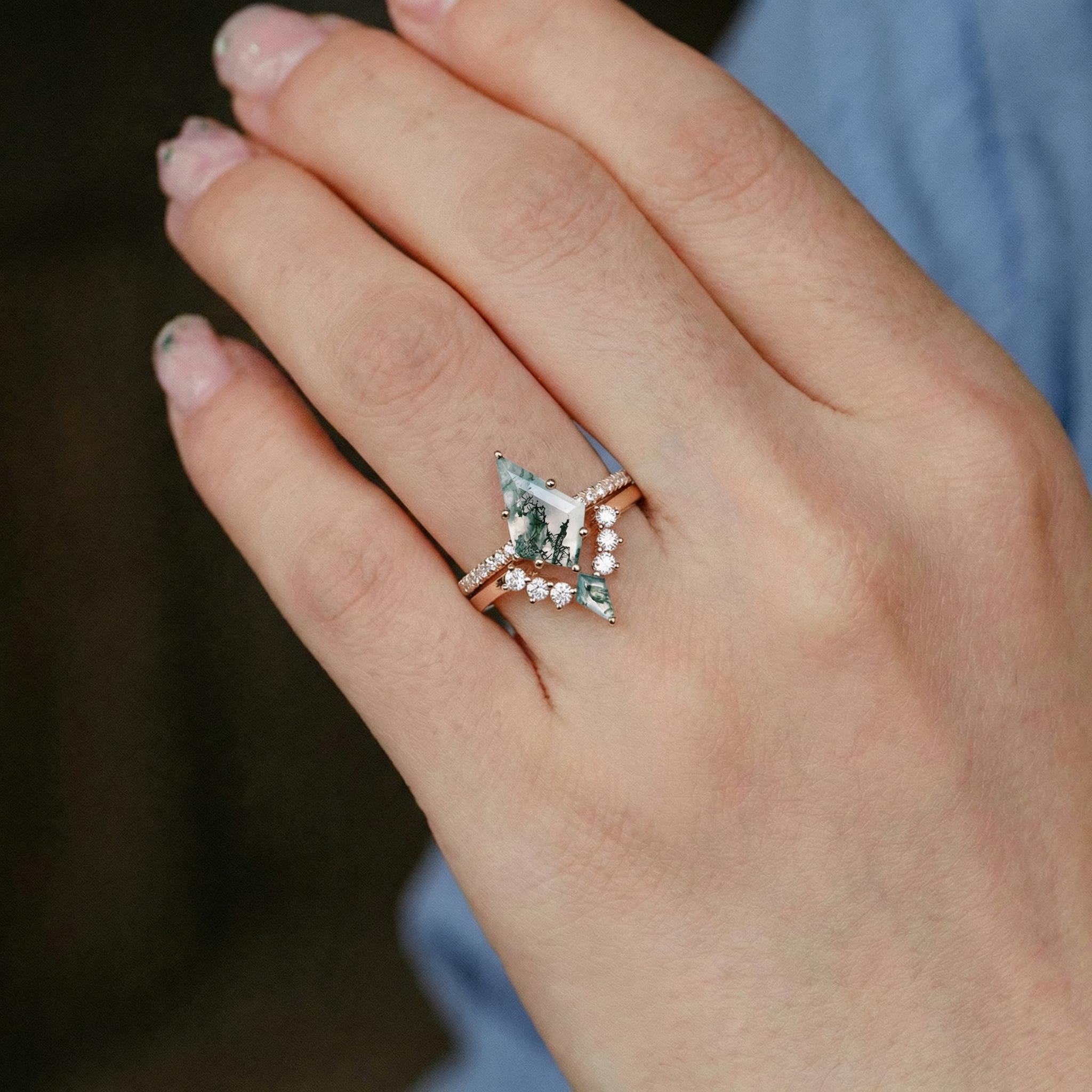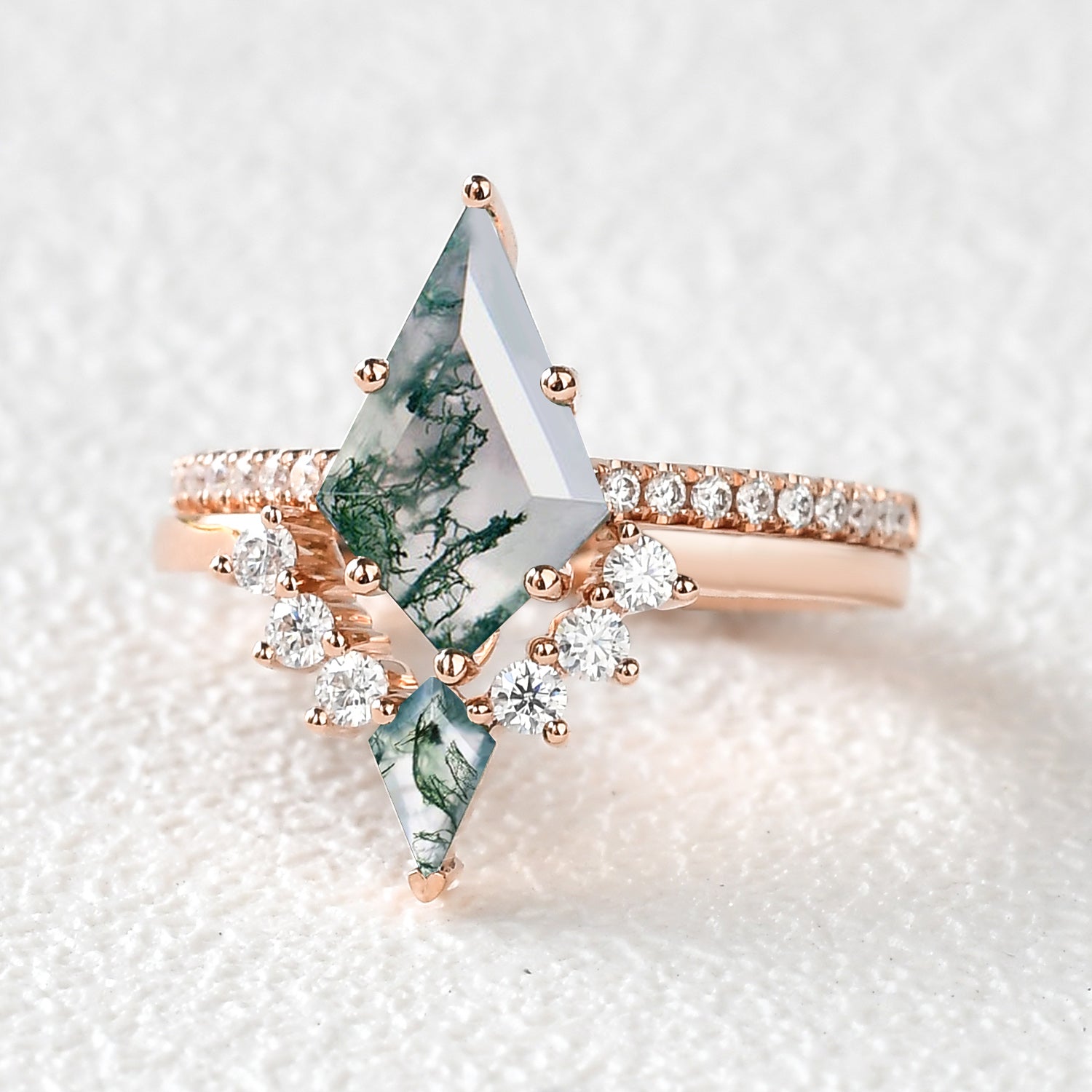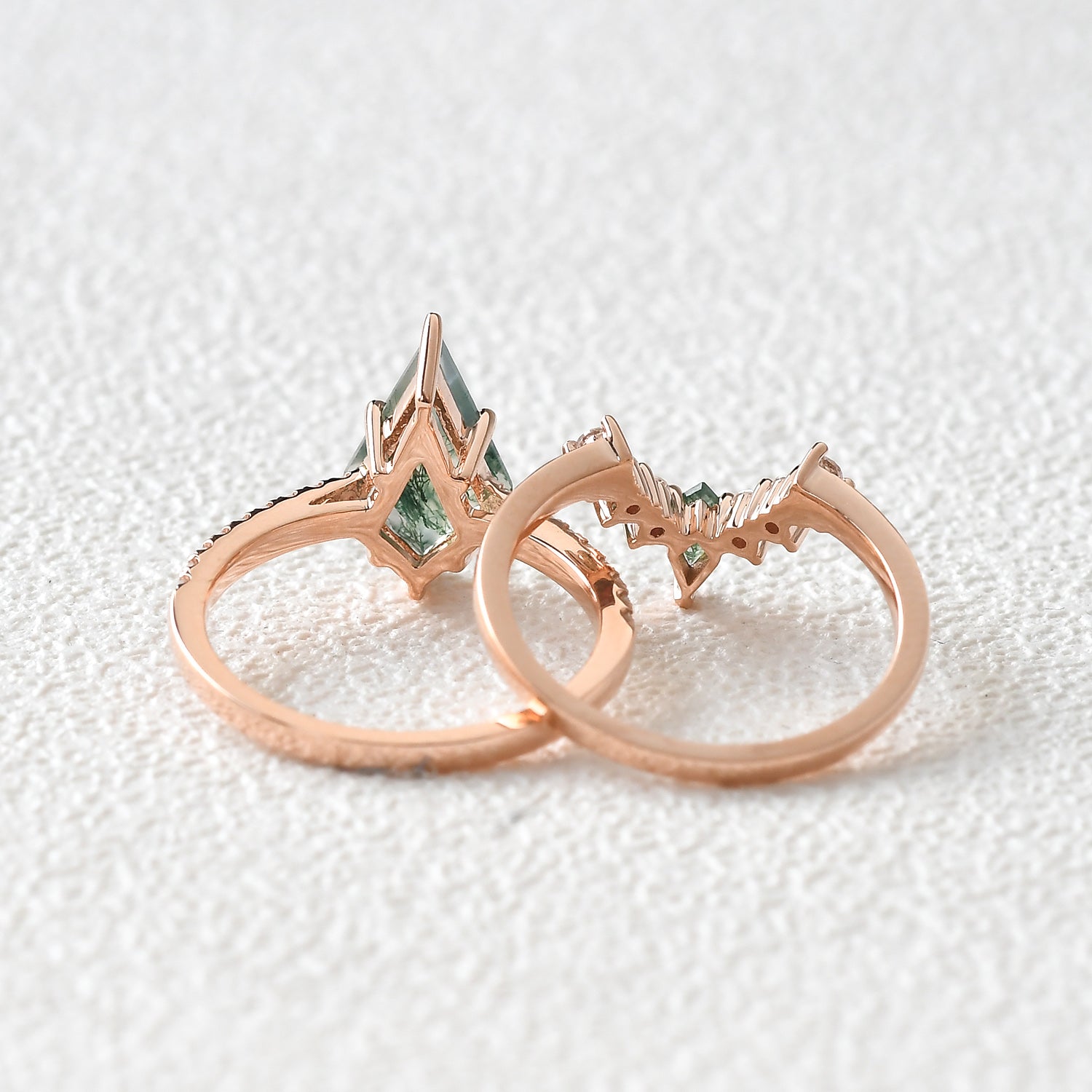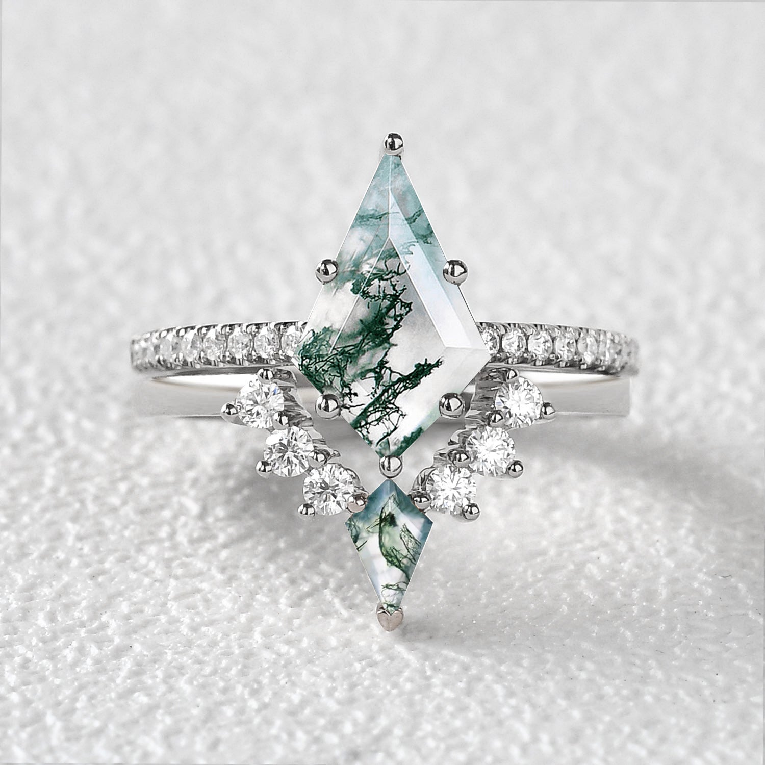 Twin Flames - Women Unique Kite Moss Agate Engagement Ring Sets 2pcs - Karen