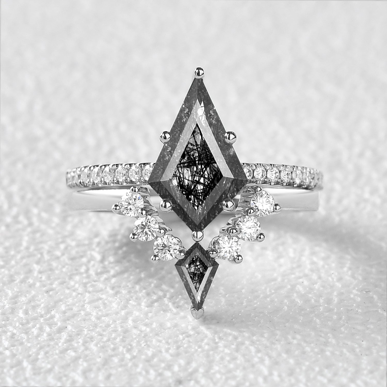 - Colourless Moissanite Accents, the kite-shaped stone on the side stones change together with the center stone.