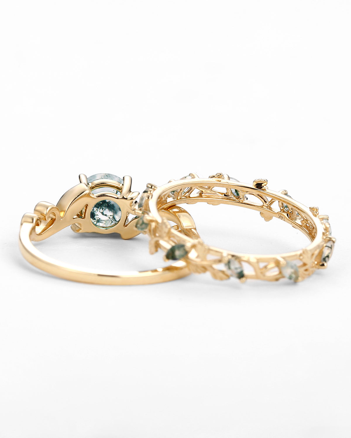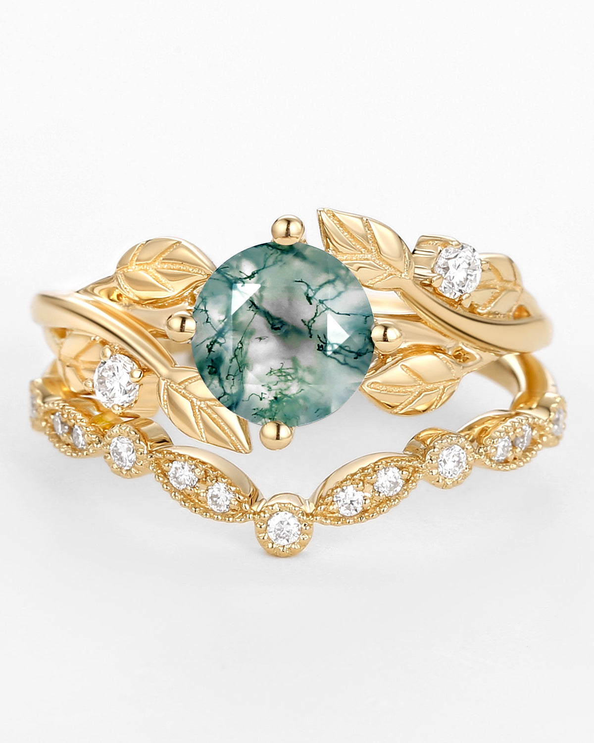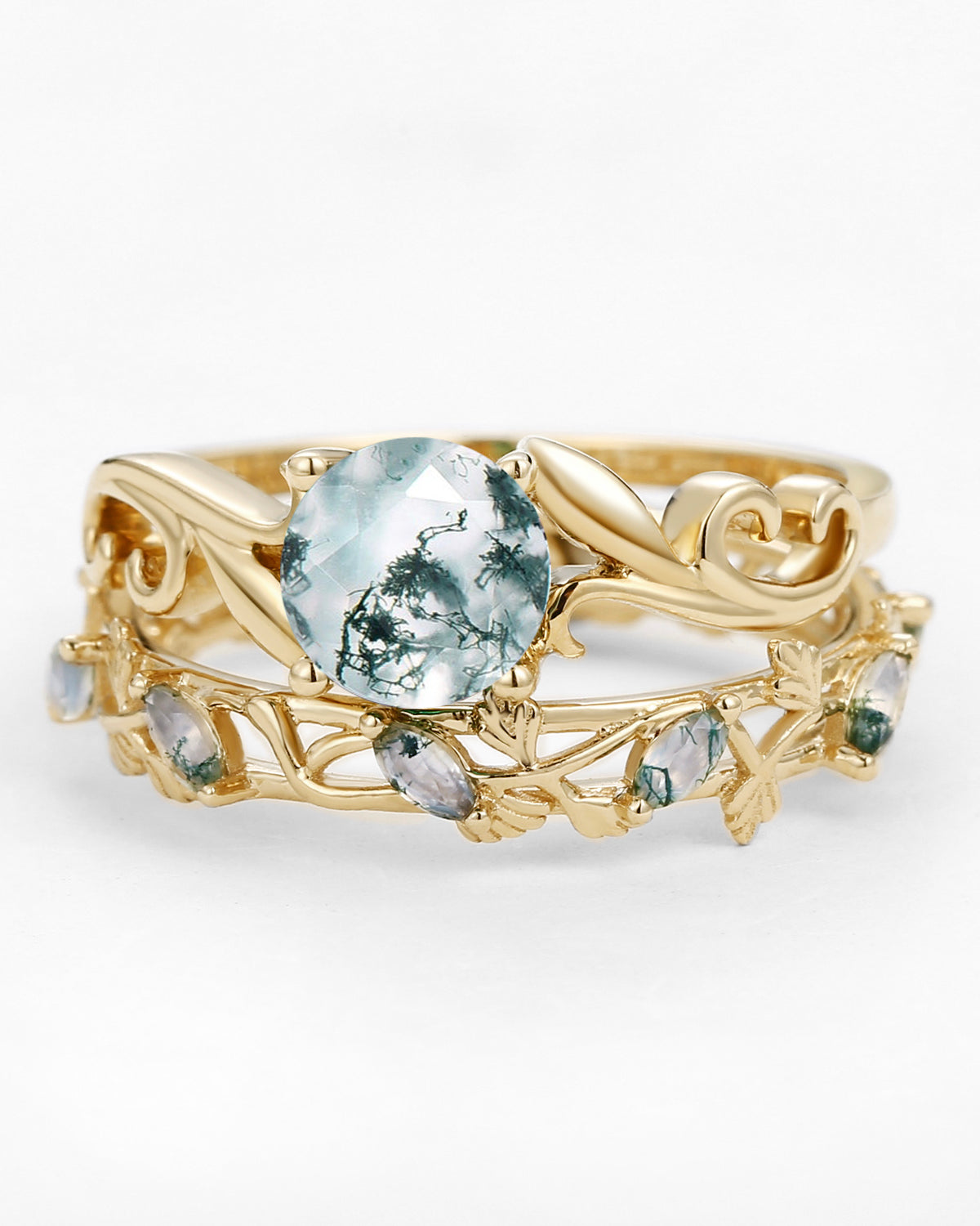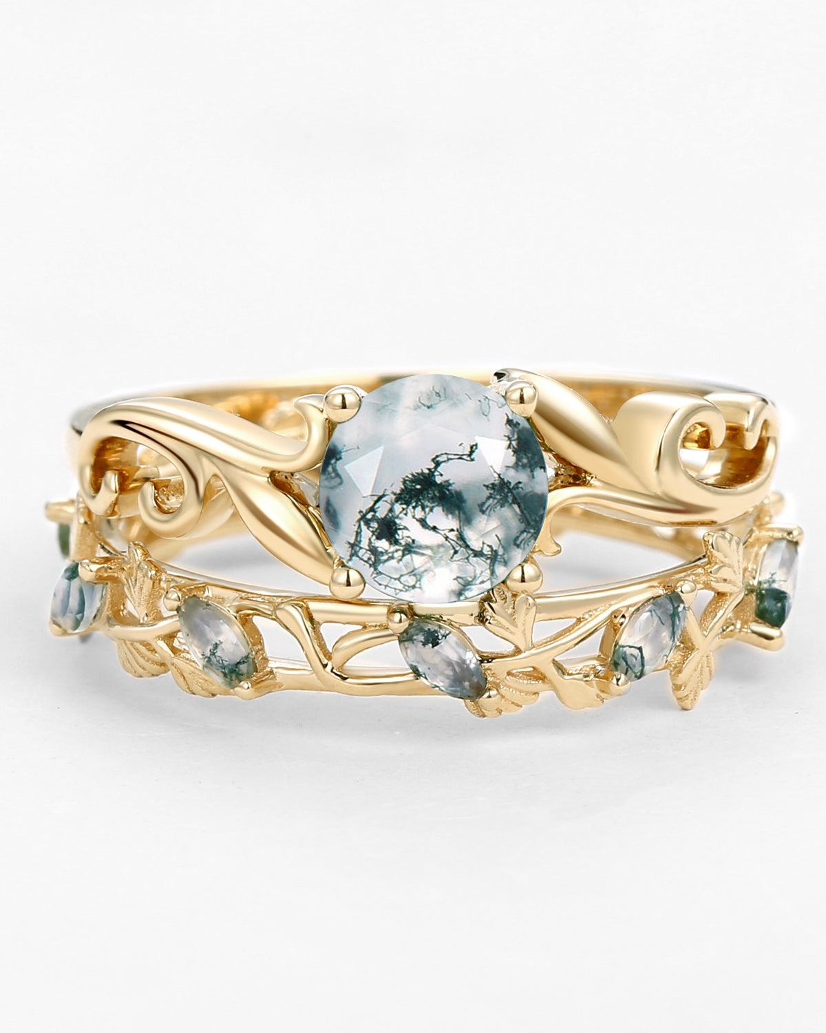 Most people buy moss agate rings in the nature inspired engagement rings collection because the green color and texture of moss agate are very close to nature.