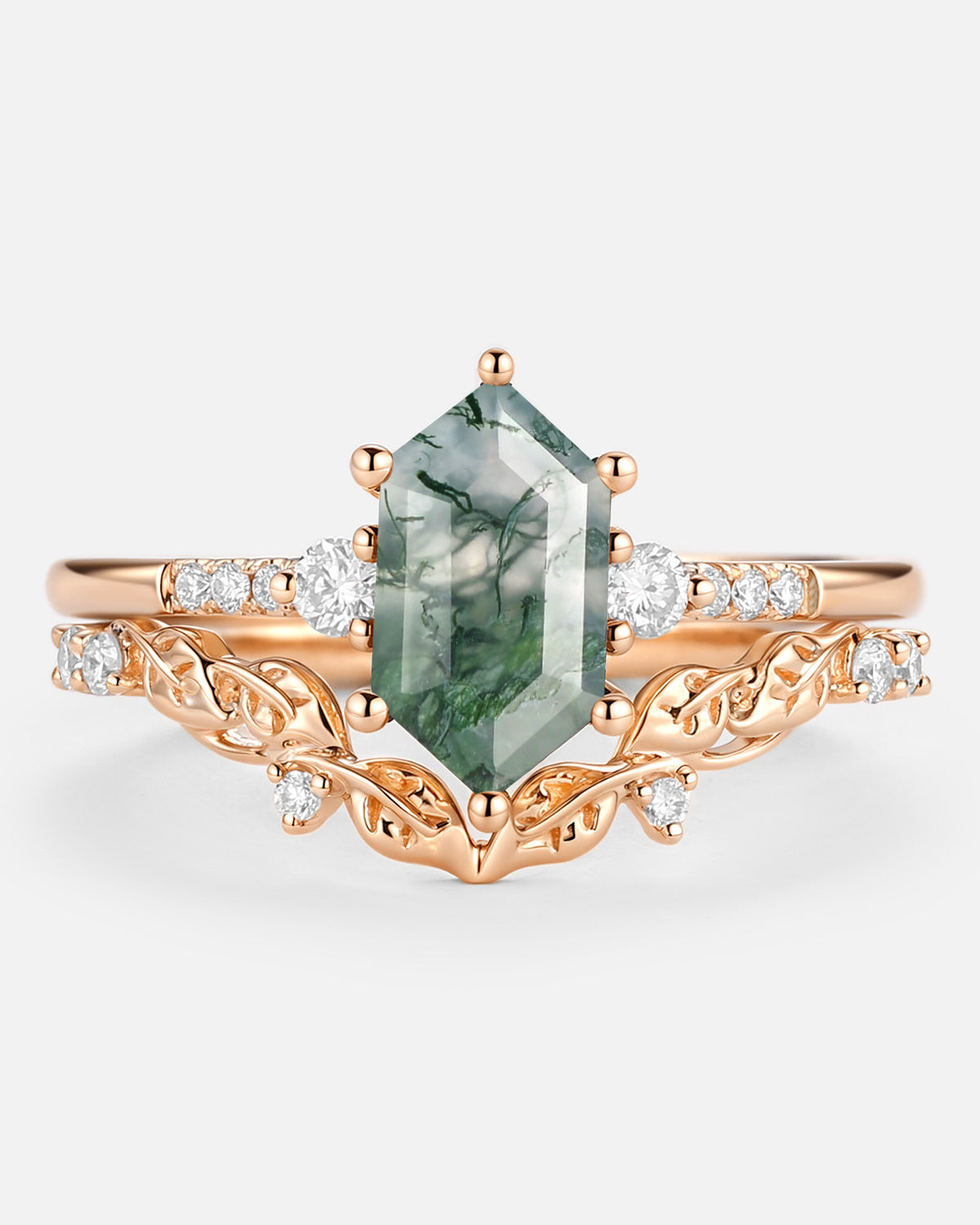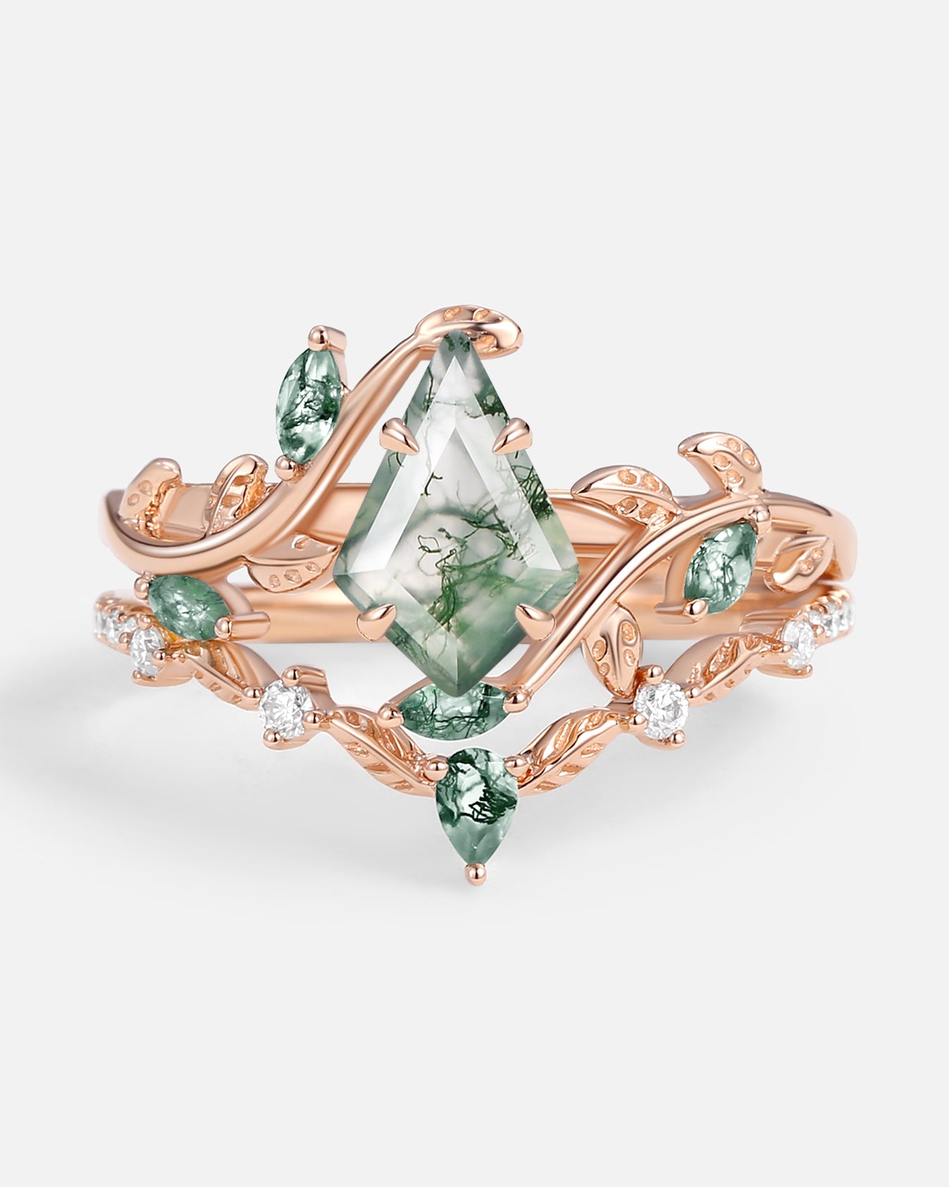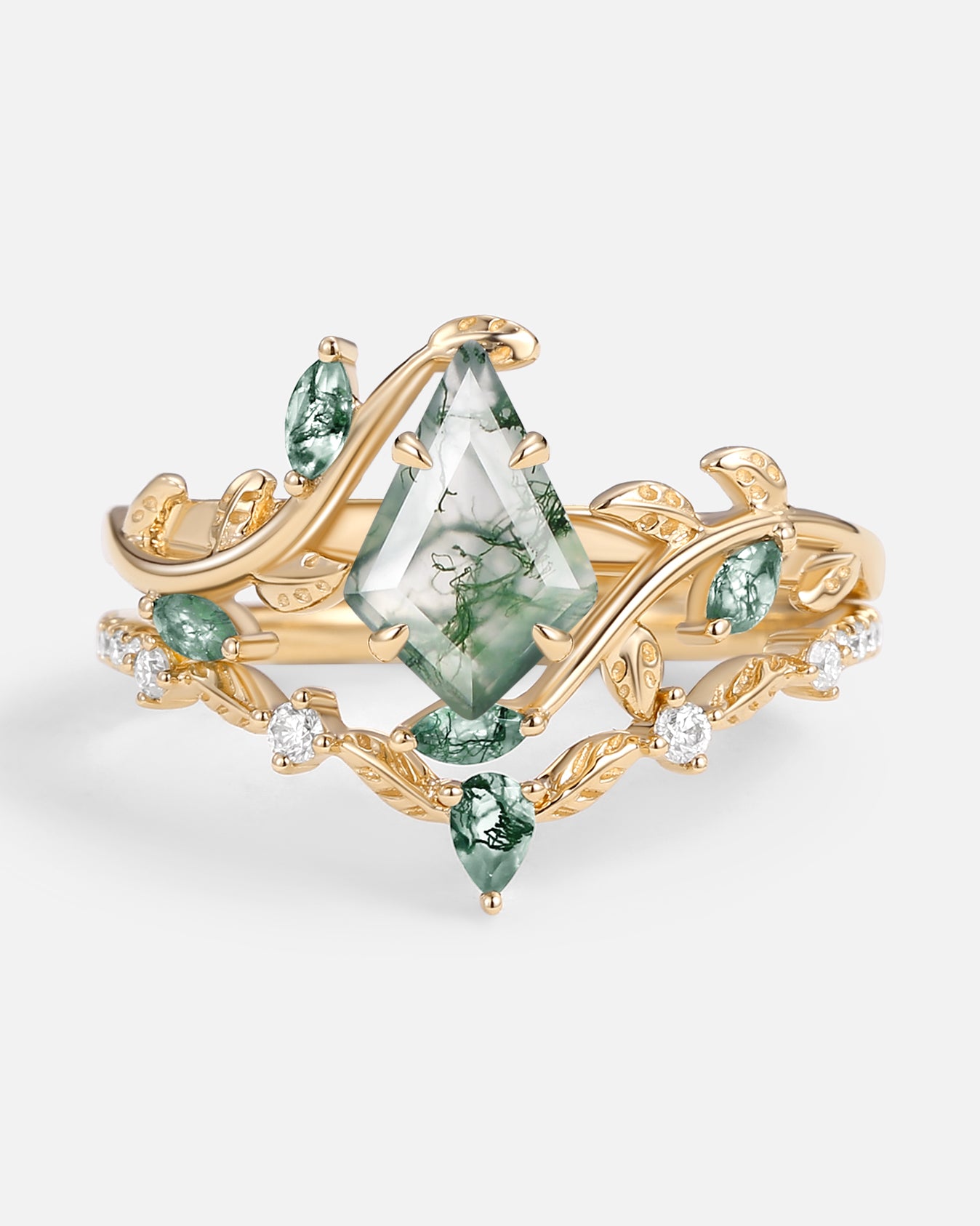 Our Nature Inspired Moss Agate ring series transforms the beauty of the earth into wearable works of art. Each moss agate gem boasts one-of-a-kind green swirls, like tiny forests frozen in time—while the accompanying designs mirror the gentle grace of nature. We’ve also crafted our setting craftsmanship with sincere reverence for this essence: leaf-adorned band details echo the rhythms of the natural world. More than just rings, this collection is an expression of your love for nature, seamlessly blending the warmth of the outdoors with your everyday style.