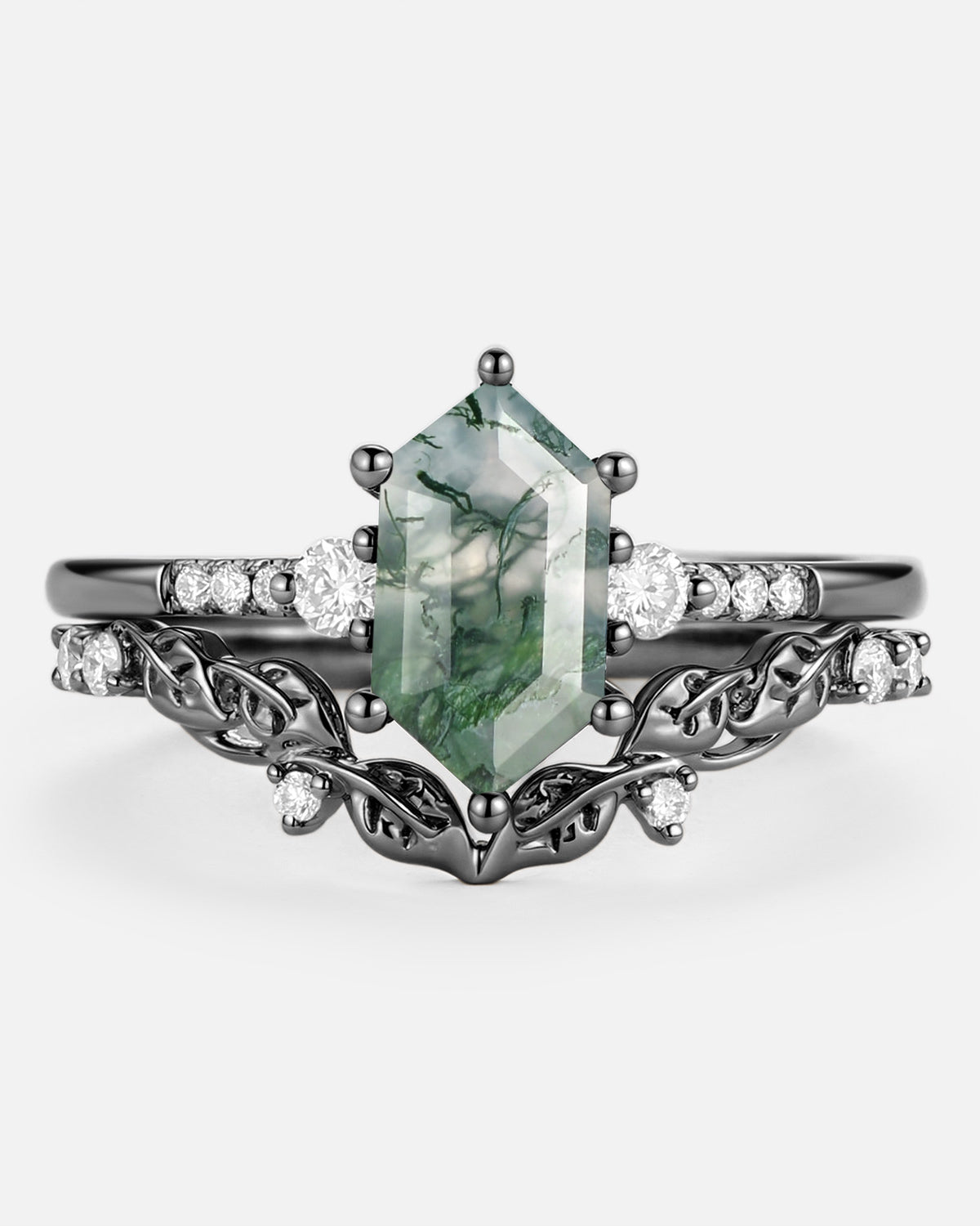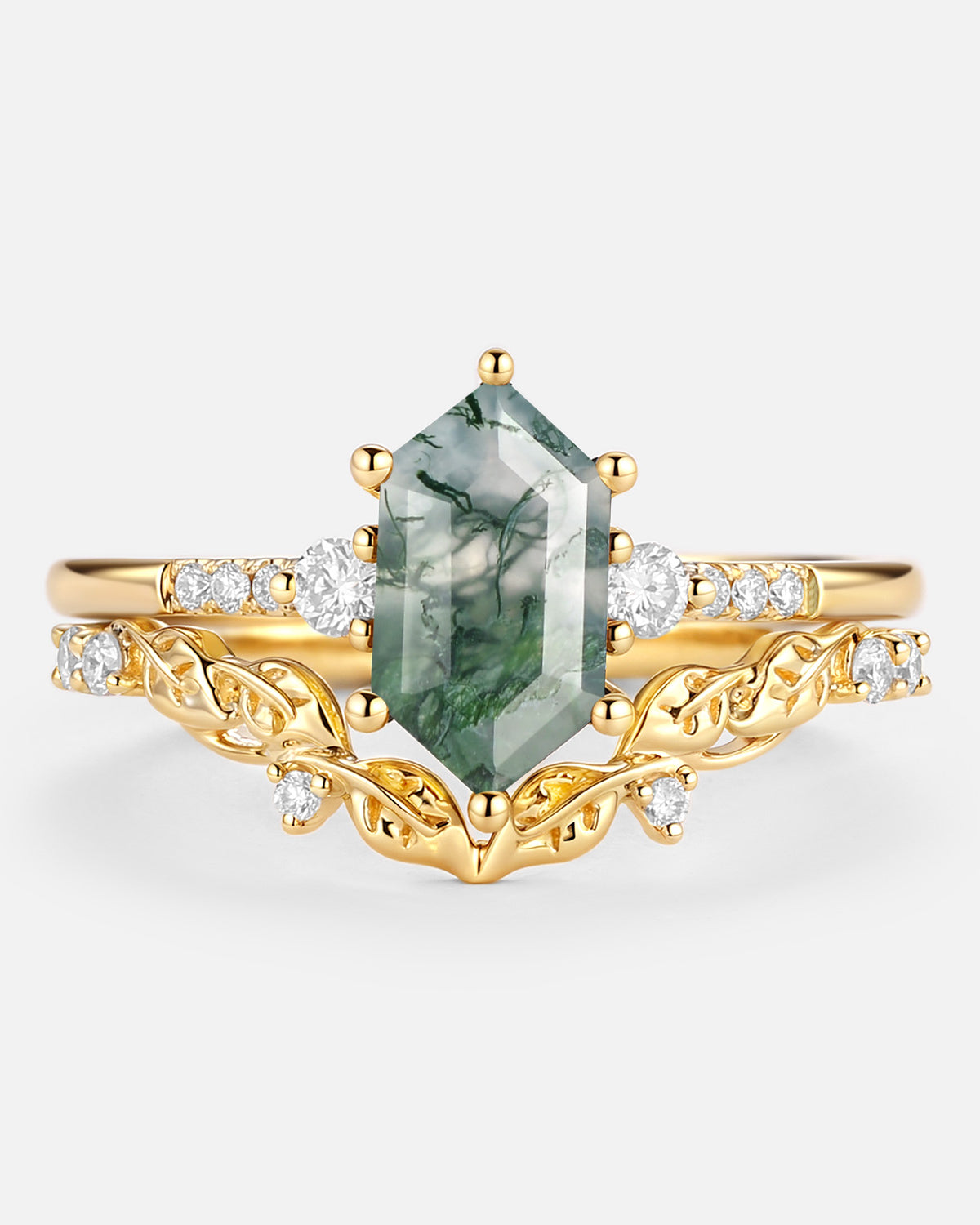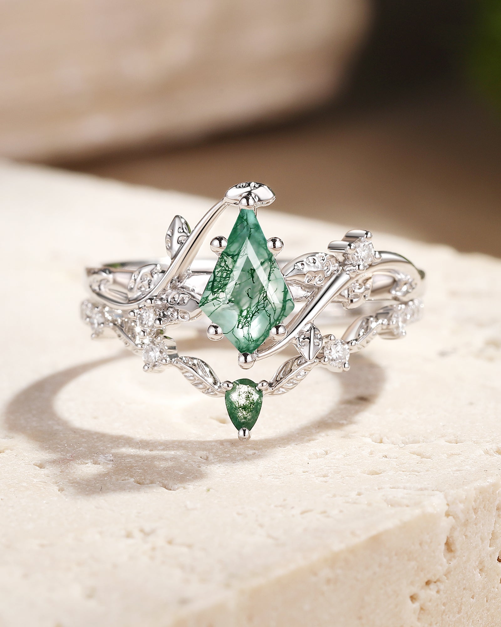 Our Nature Inspired Moss Agate ring series transforms the beauty of the earth into wearable works of art. Each moss agate gem boasts one-of-a-kind green swirls, like tiny forests frozen in time—while the accompanying designs mirror the gentle grace of nature. We’ve also crafted our setting craftsmanship with sincere reverence for this essence: leaf-adorned band details echo the rhythms of the natural world. More than just rings, this collection is an expression of your love for nature, seamlessly blending the warmth of the outdoors with your everyday style.