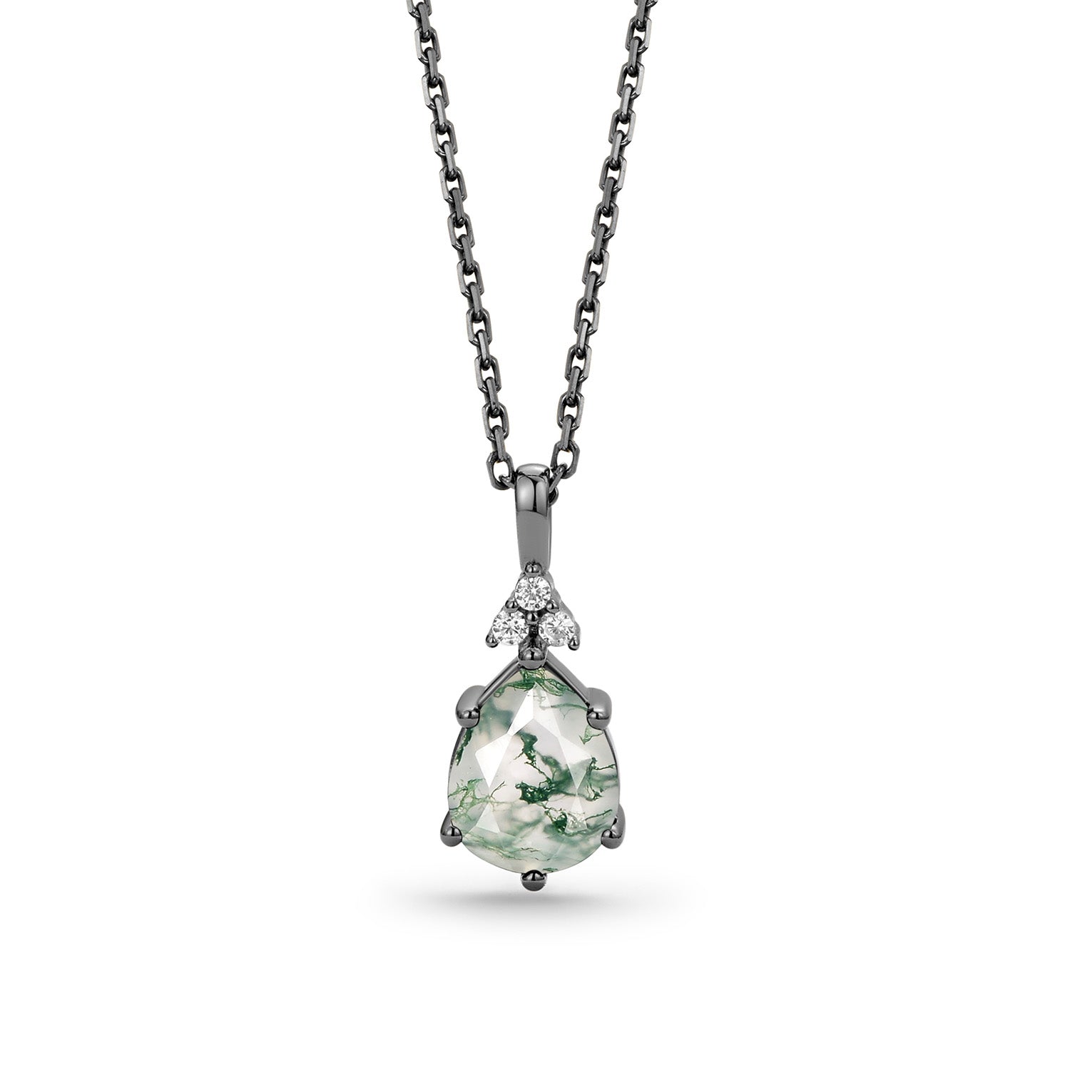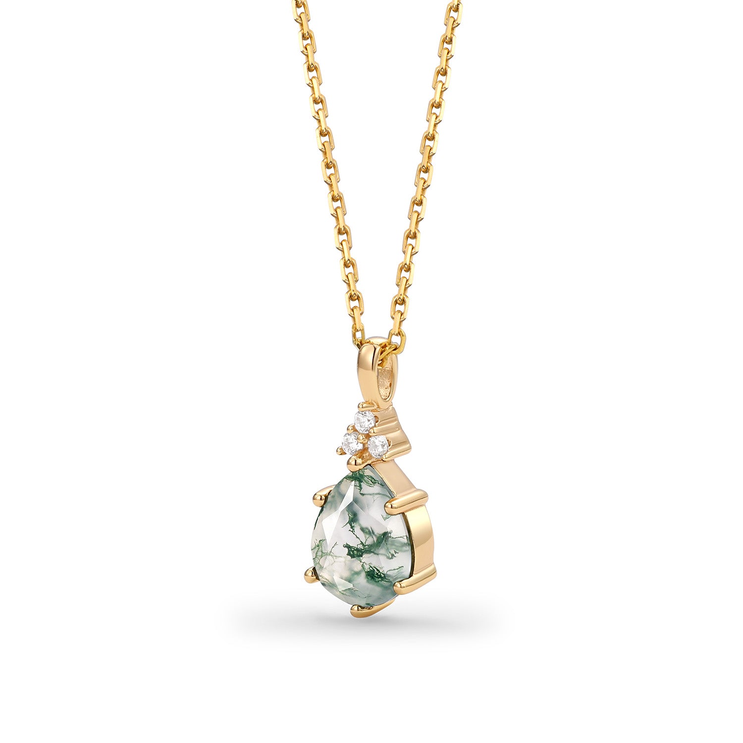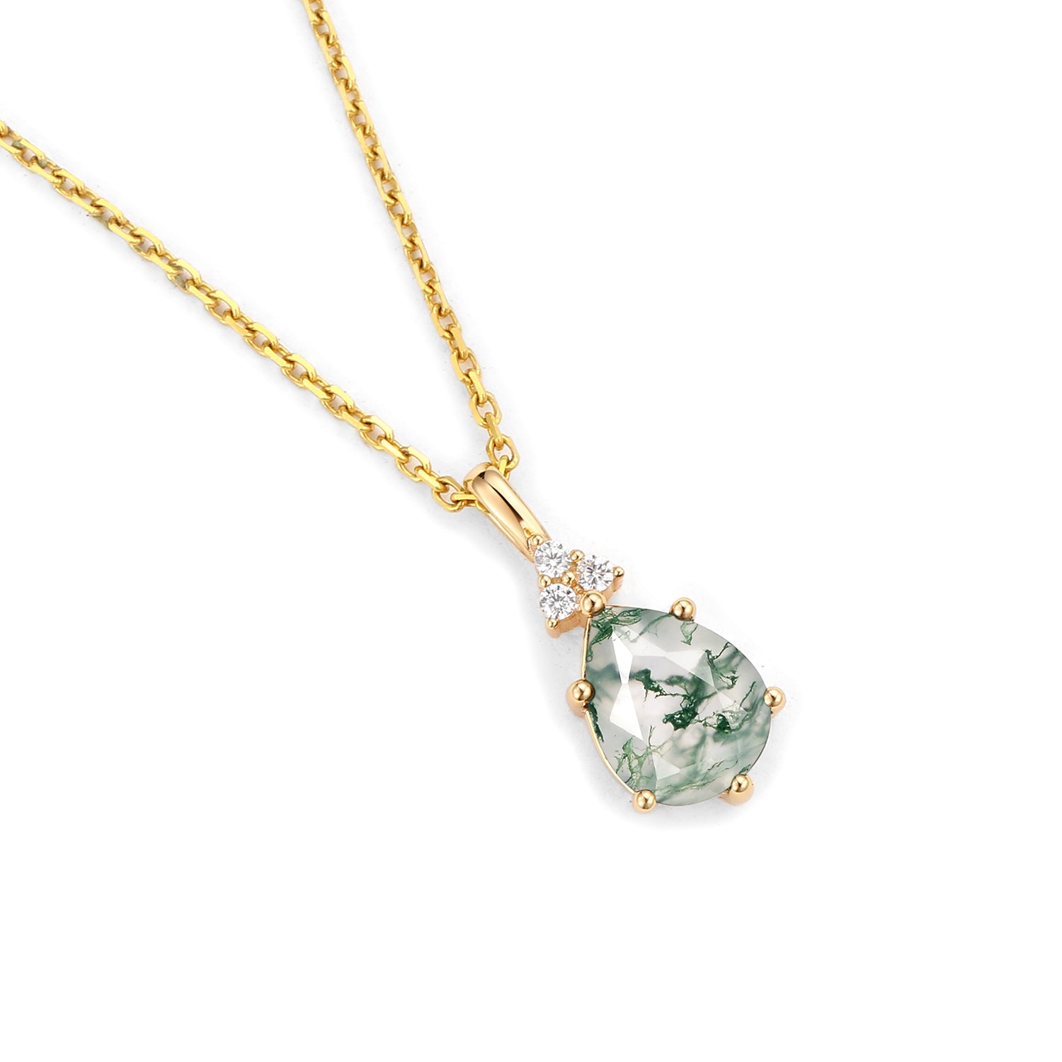 Inspired Minimalist Pear Cut Moss Agate Cluster Necklace