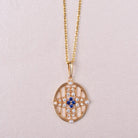 Felicegals Natural Sapphire & Pearl & Moissanite Yellow Gold Necklace Gift for Her Anniversary Gift Vintage Look