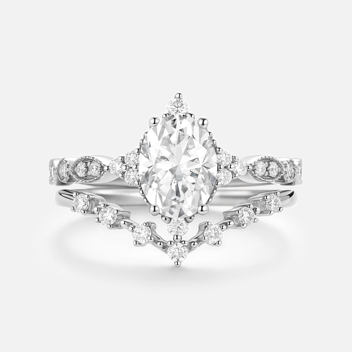 - Colorless Moissanite Accents