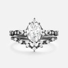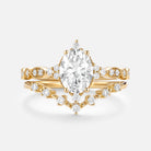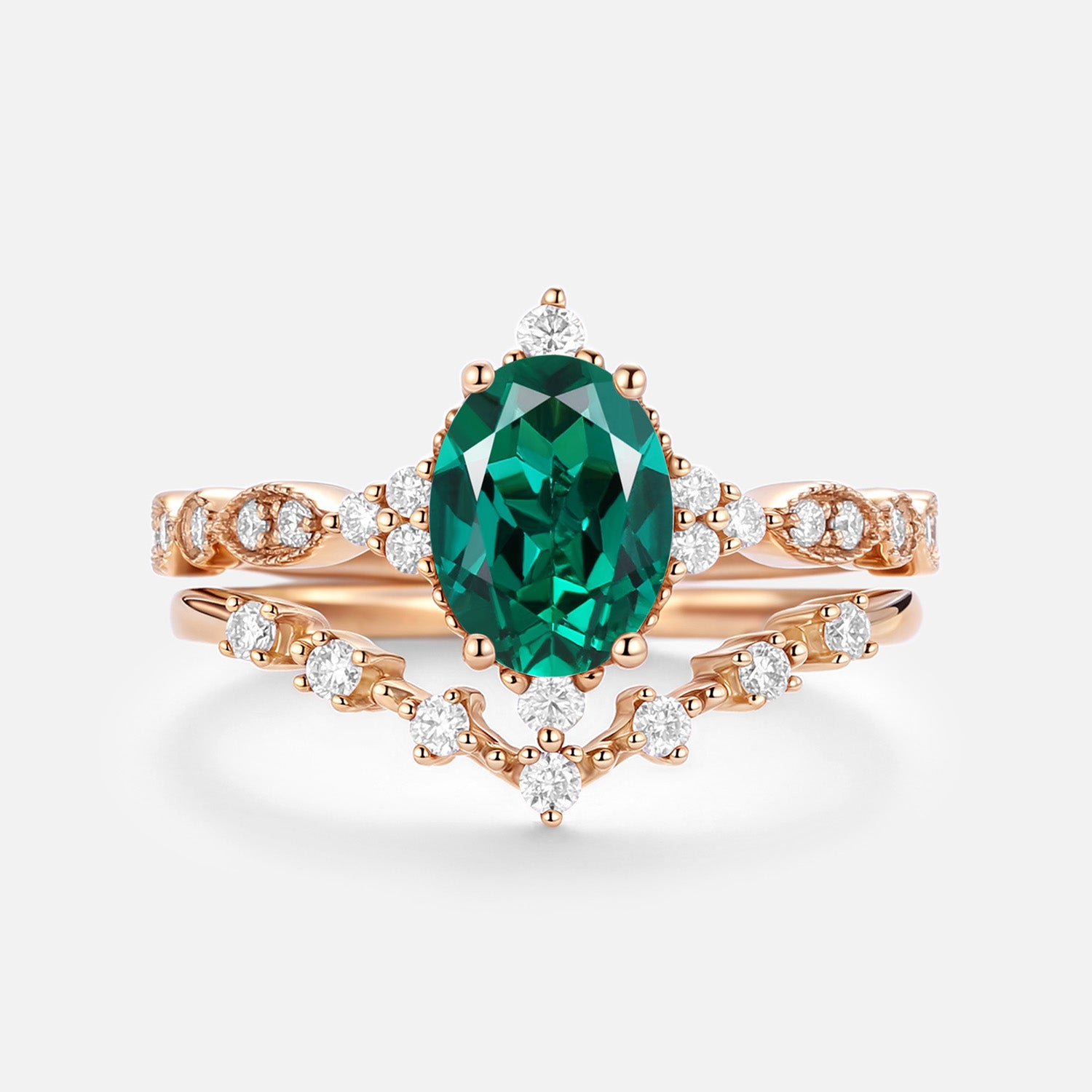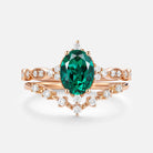 Oval Cut Emerald & Moissanite Yellow Gold Ring Set 2pcs - Heliux