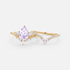 Pear Cut Lab Lavender Sapphire Leafy Ring Sets 2pcs - Mauve
