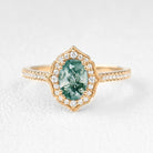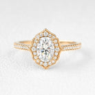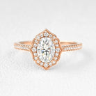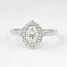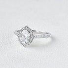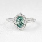 Oval Moss Agate White Gold Antique Halo Engagement Ring