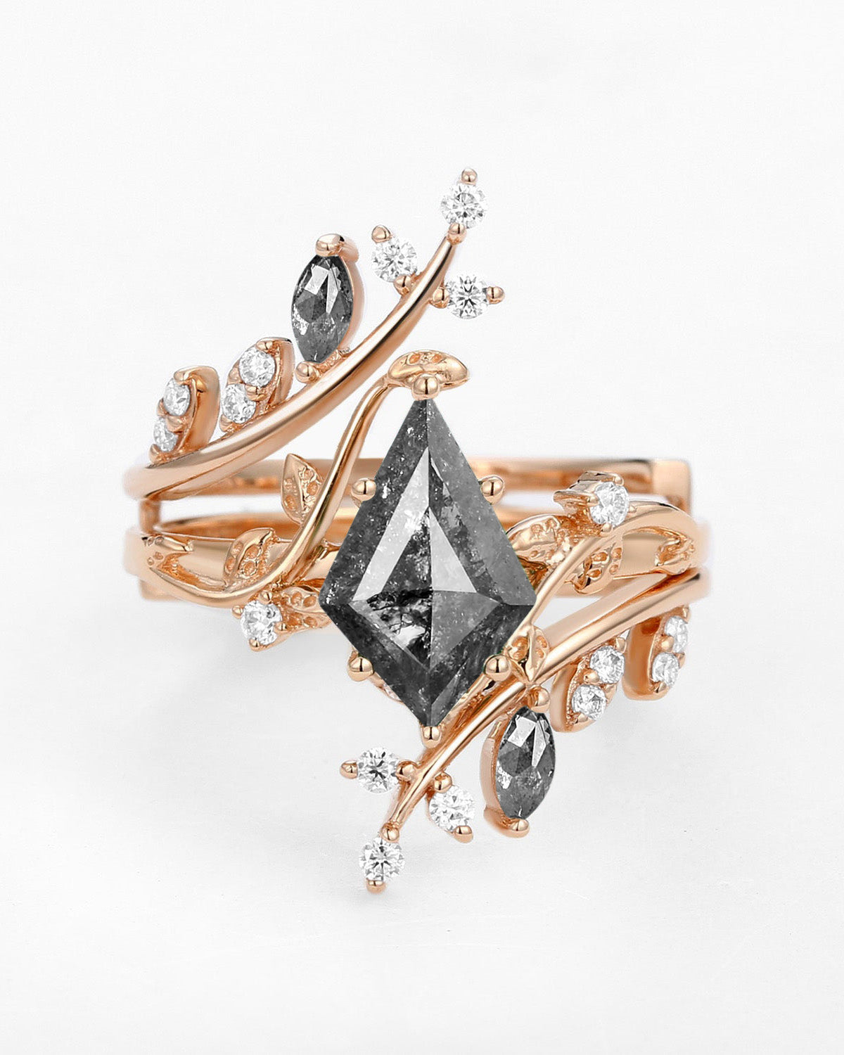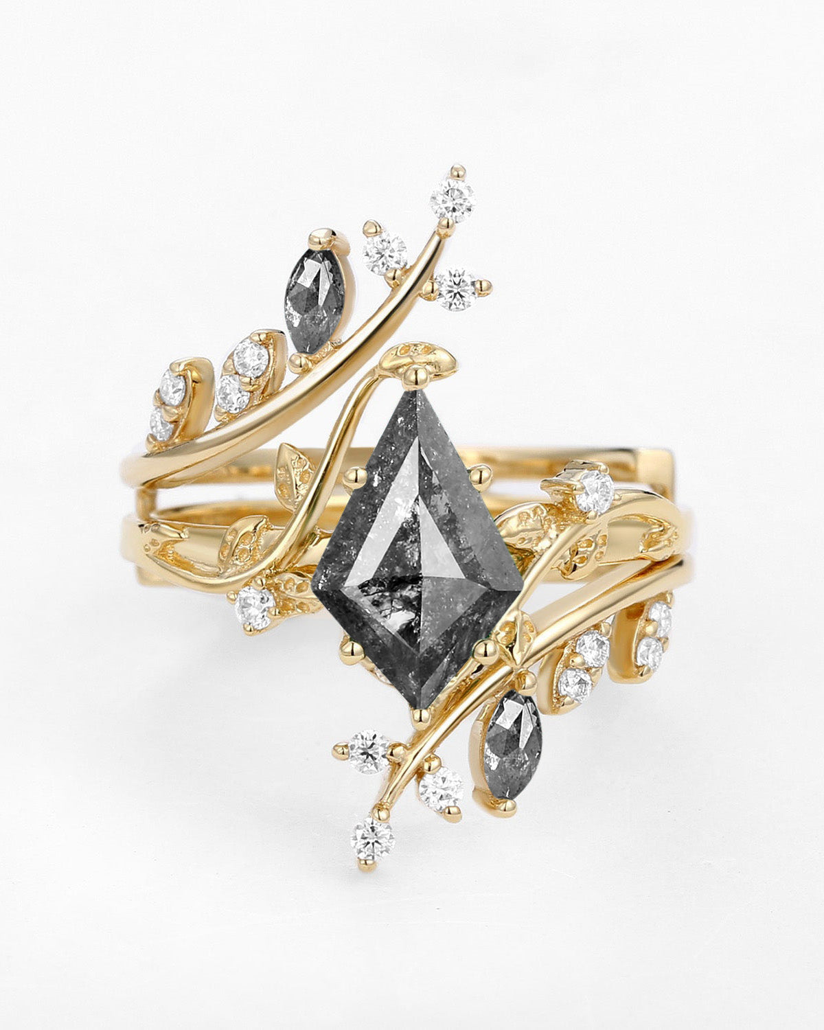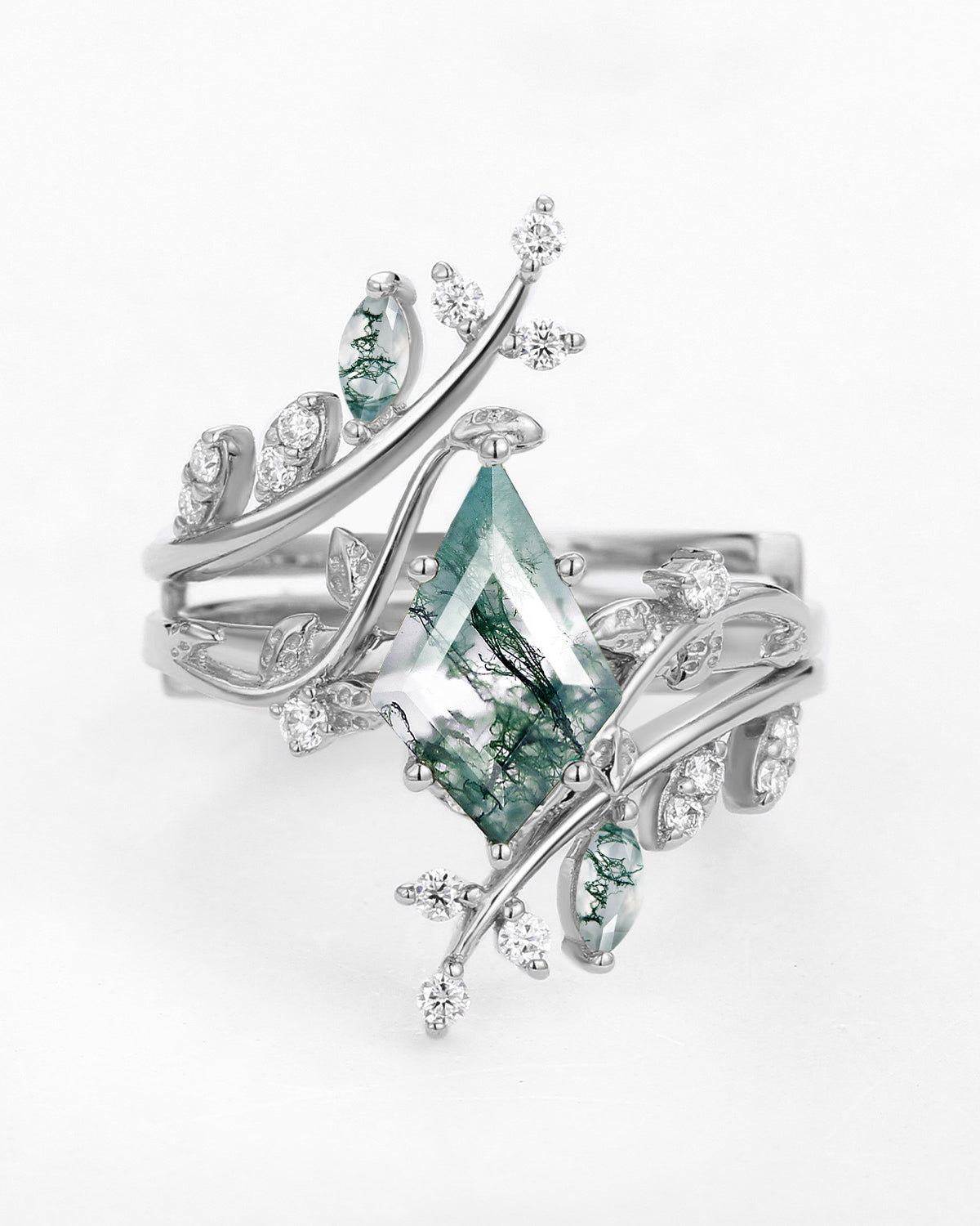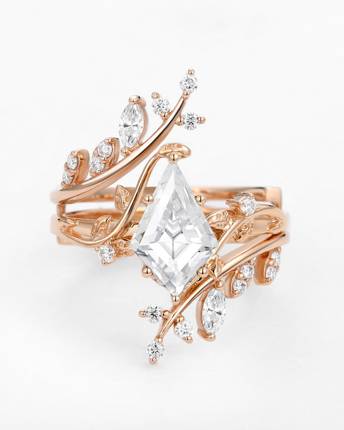 1.5ct Pear Moissanite Maple Leafy Halo Infinity Ring Set 2pcs - Tara