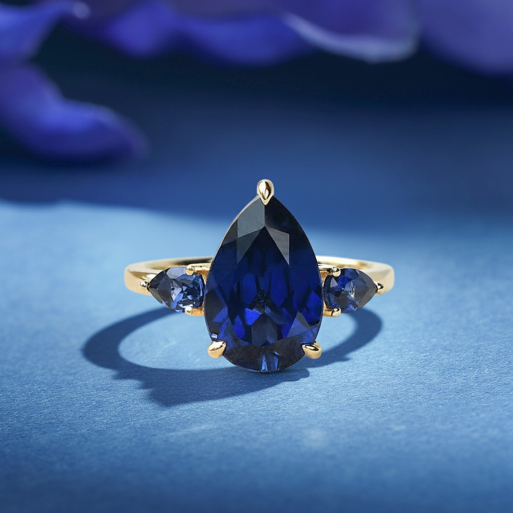 Felicegals Pear Shaped Sapphire Three-stone Ring Lab Sapphire Gold Ring Engagement Wedding Ring Anniversary Gift Birthstone Gemstones