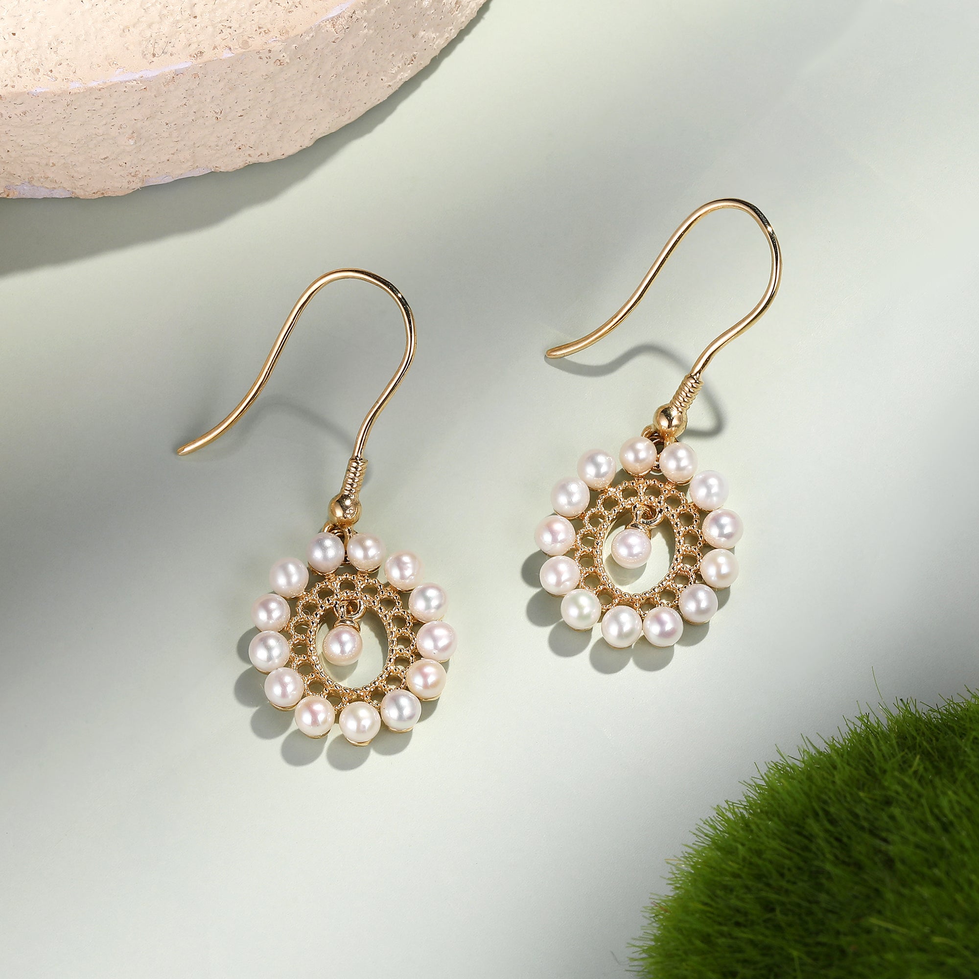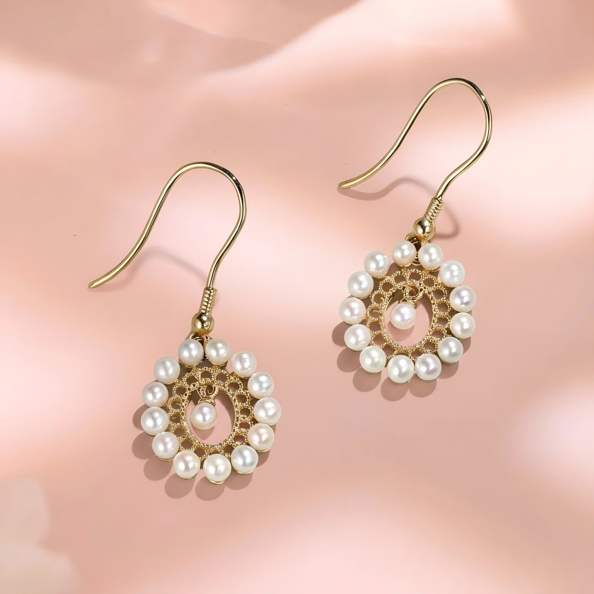 Pearl Beaded Circle Drop Earrings