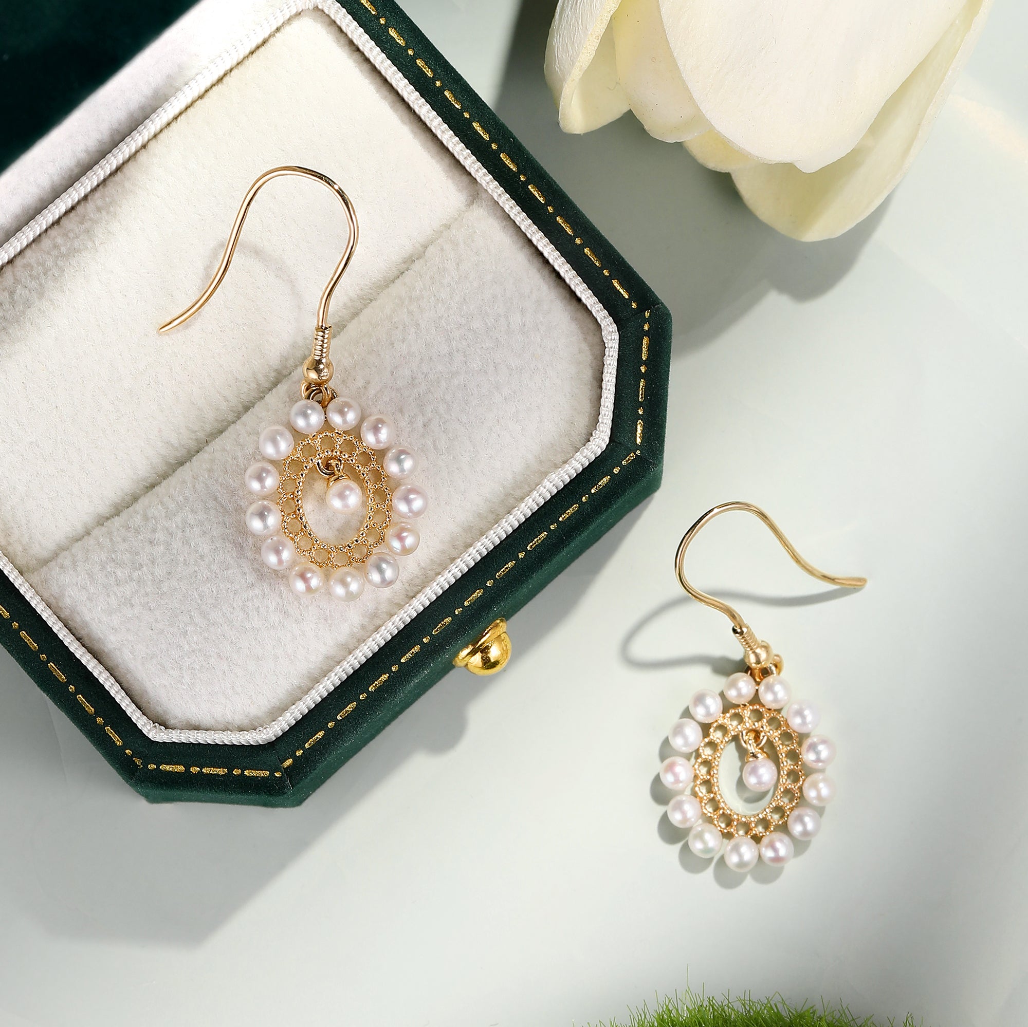 Pearl Beaded Circle Drop Earrings Valentine’s Day Gift For Her