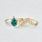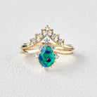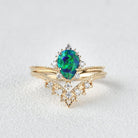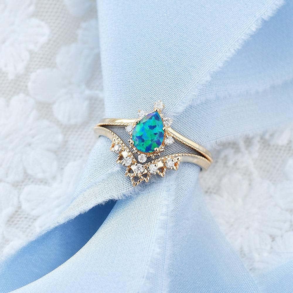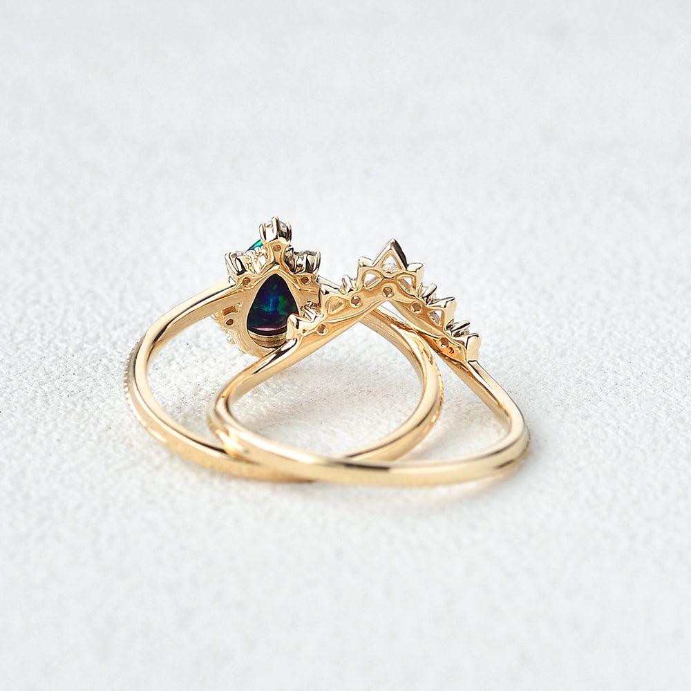 Lab Opal & Moissanite Stacking Yellow Gold Ring Set 2pcs