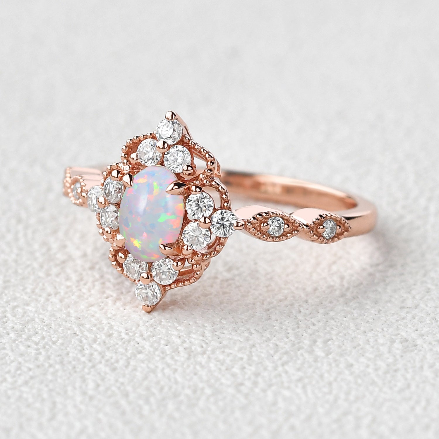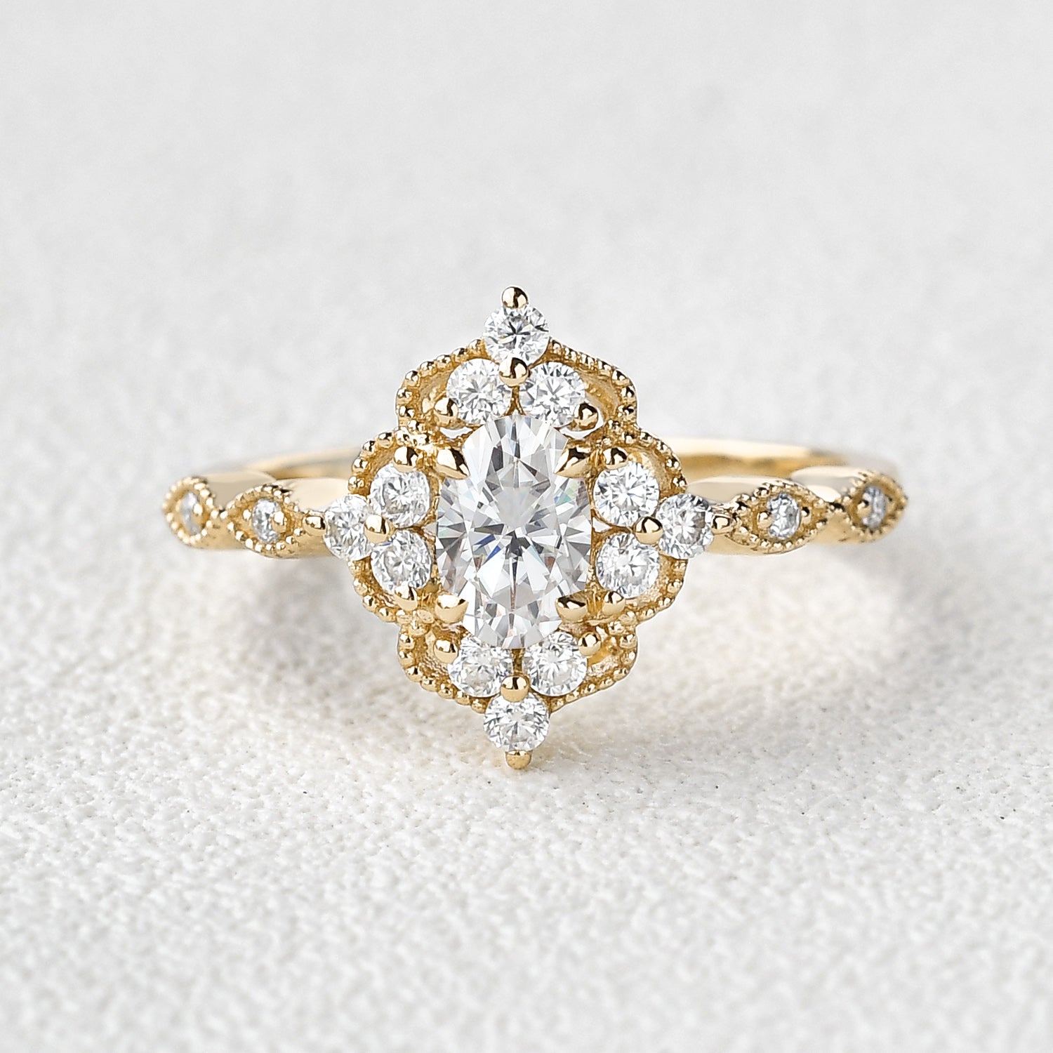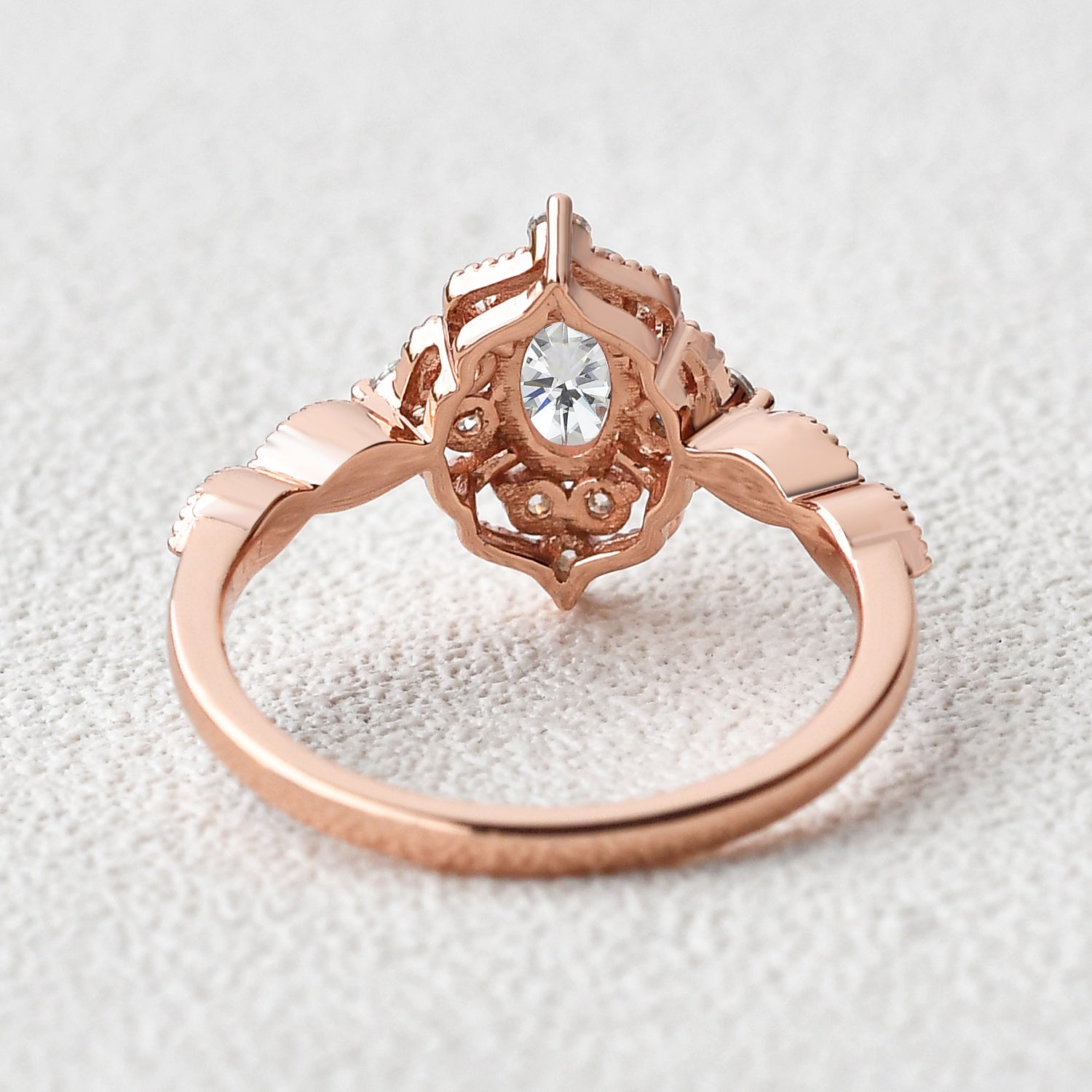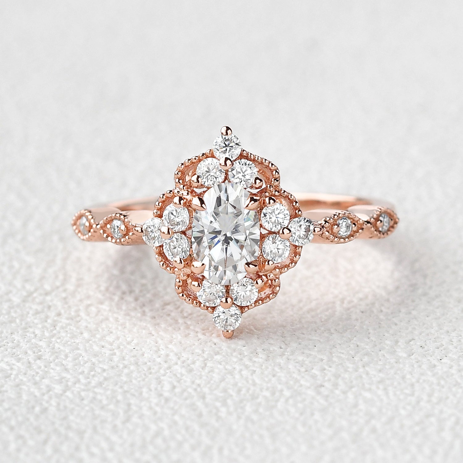 1.0ct Bohemian Moissanite Vintage Halo Engagement Ring