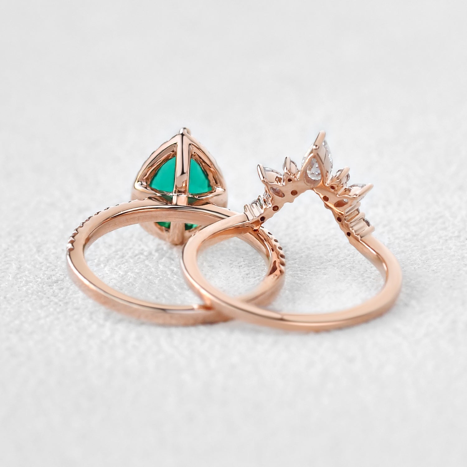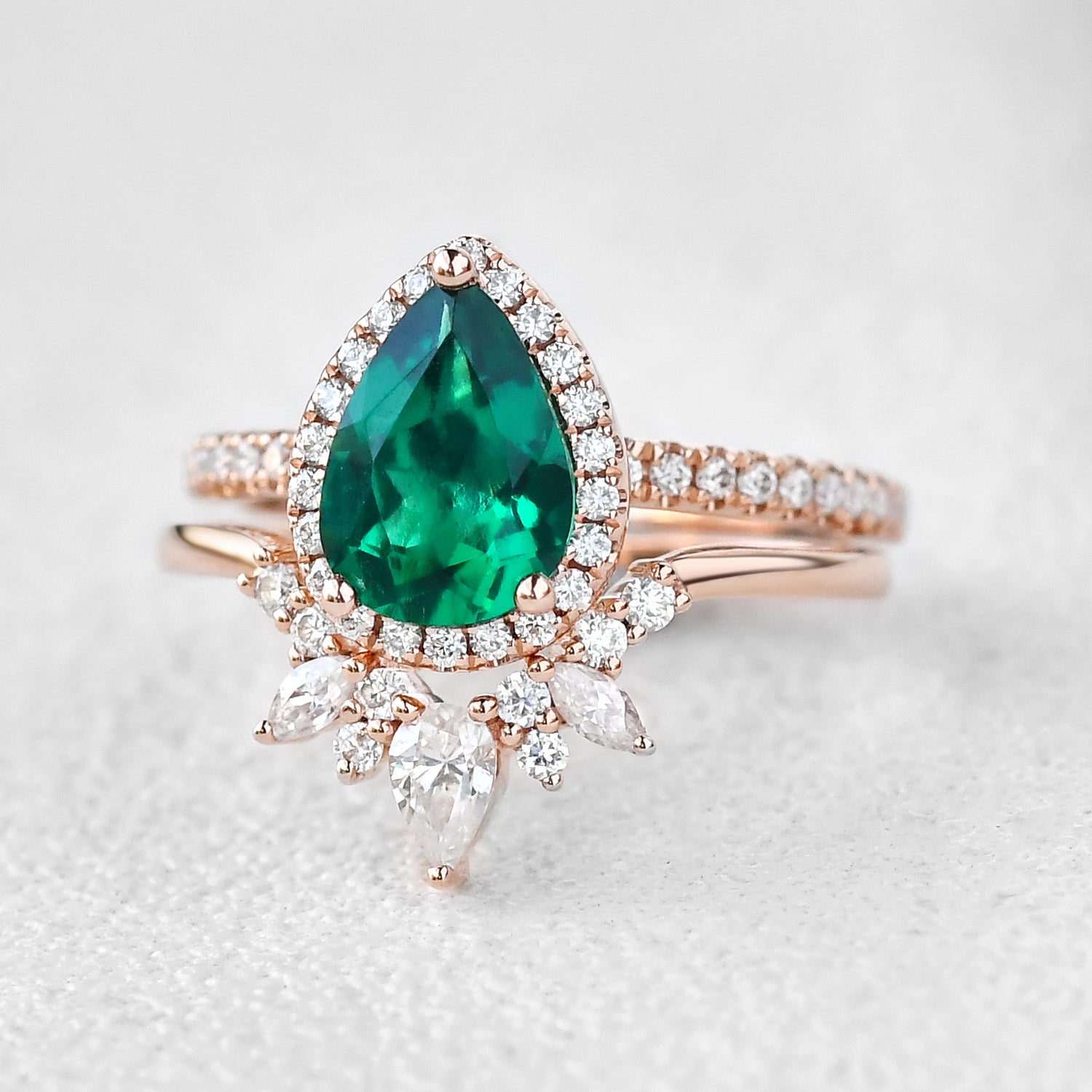 1.5ct Pear Shaped Emerald Cluster Halo Ring Set 2pcs