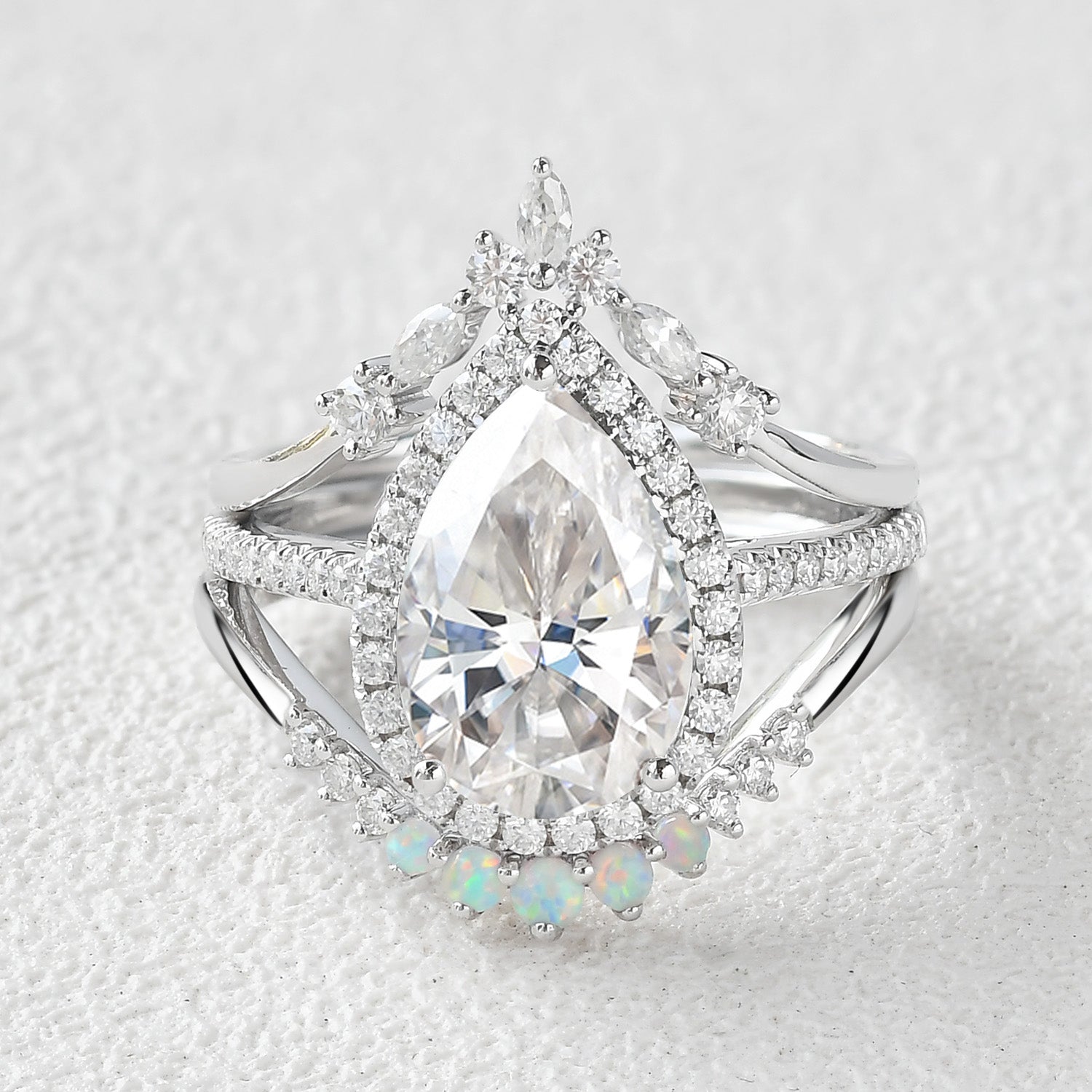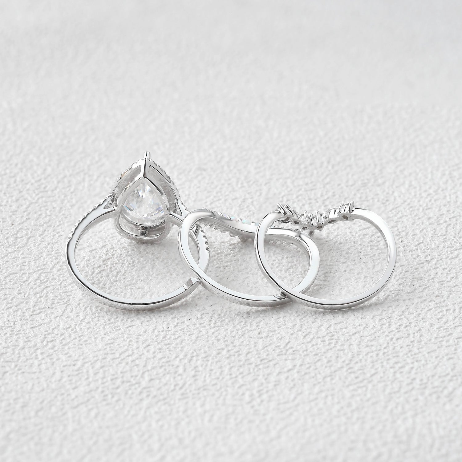 3.5ct Pear Shaped Moissanite Inspired Ring Set 3pcs