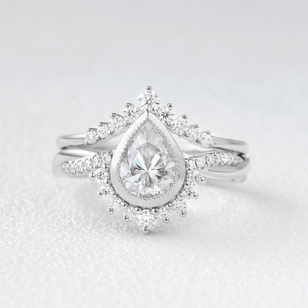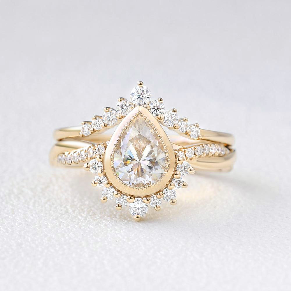 Felicegals Pear Shaped Moissanite 14K Gold Ring Set 2pcs Infinity Moissanite Ring Chevron V Shaped Moissanite Wedding Ring Anniversary Gift