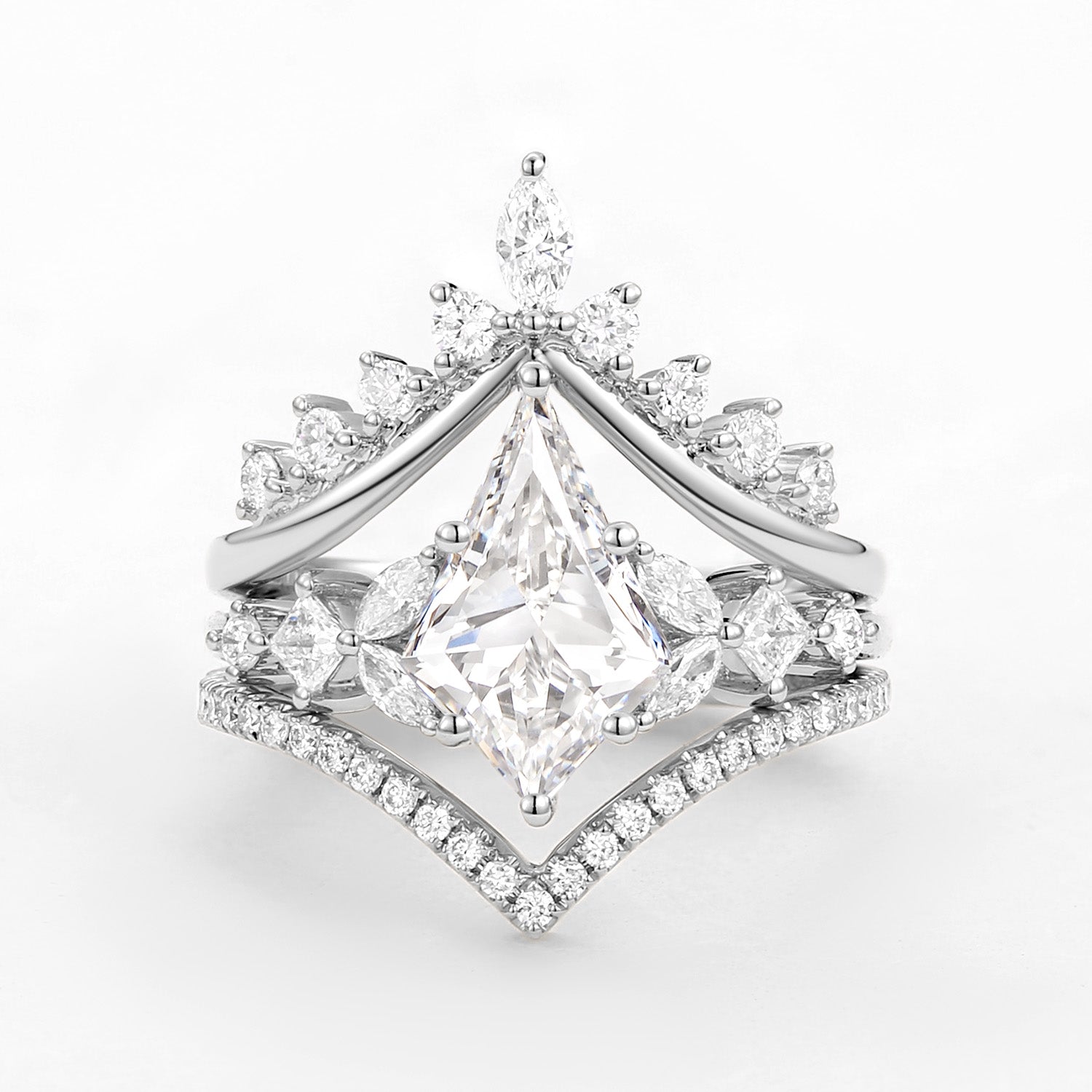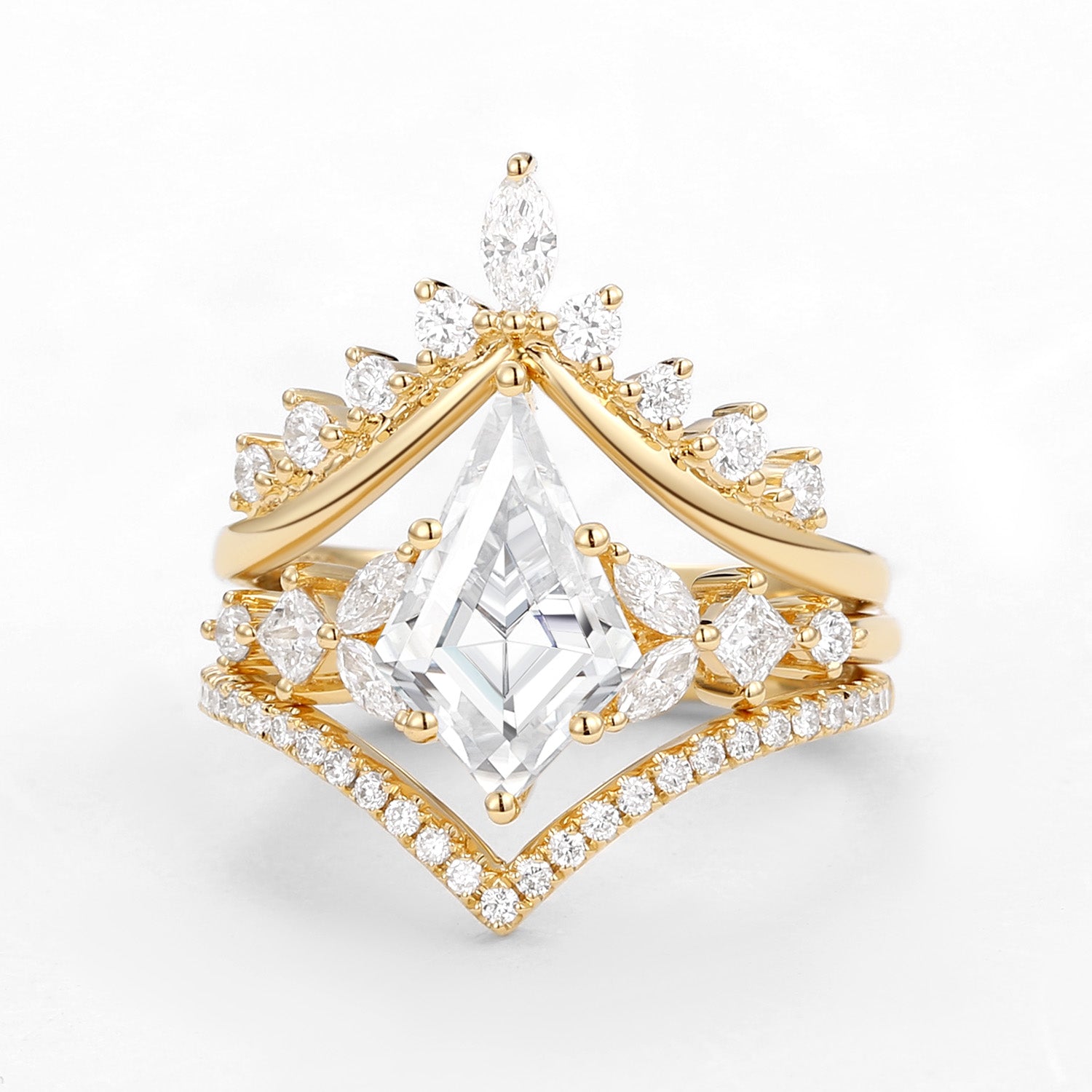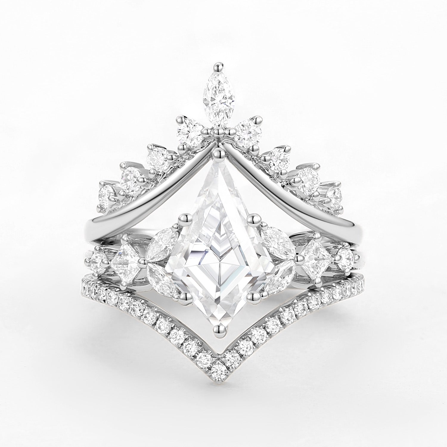Kite Cut Moissanite Stacking Luxurious Engagement Bridal Set 3pcs - Amelia