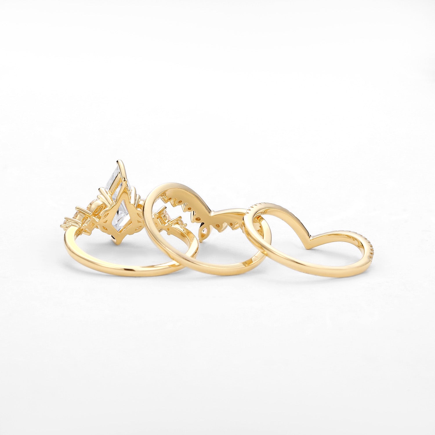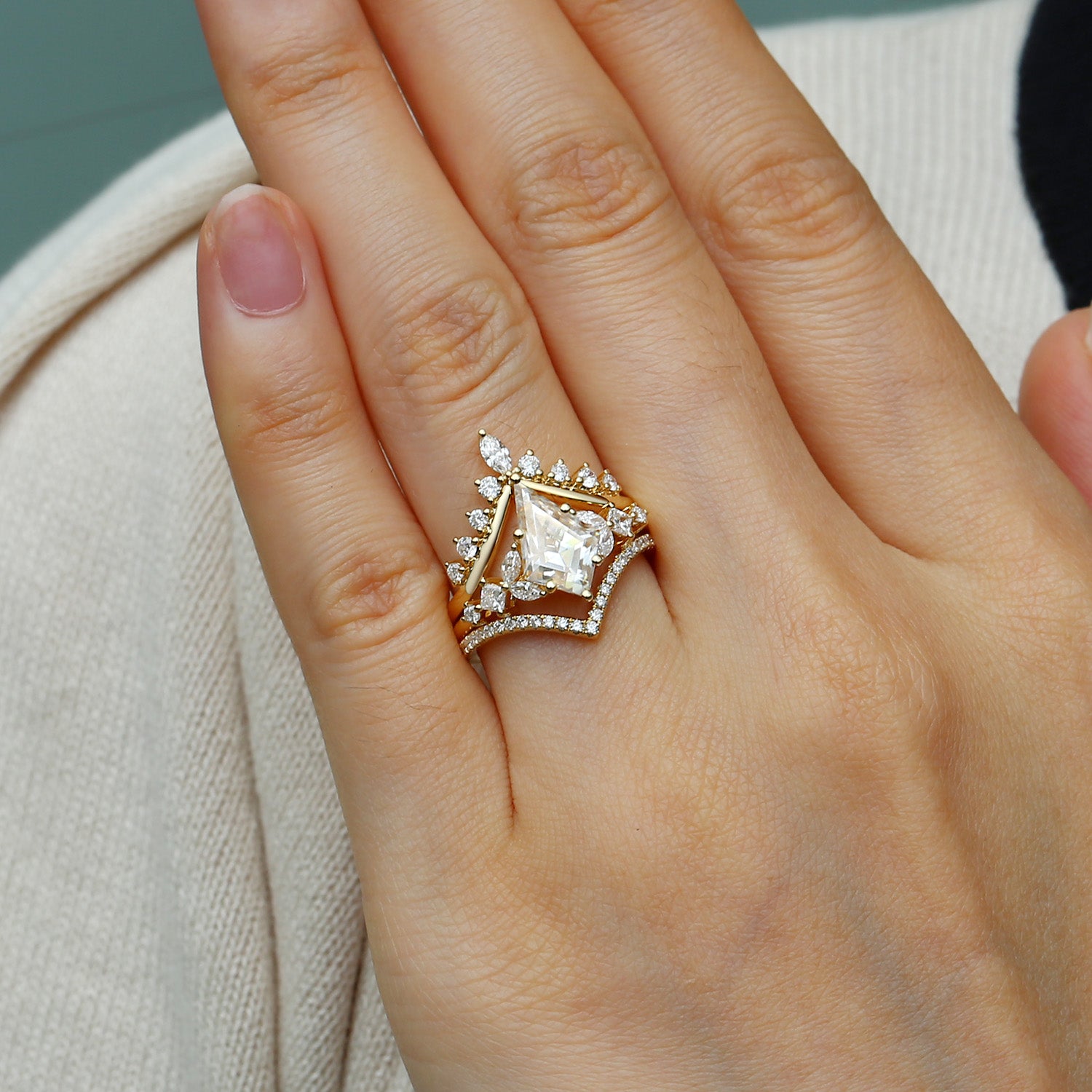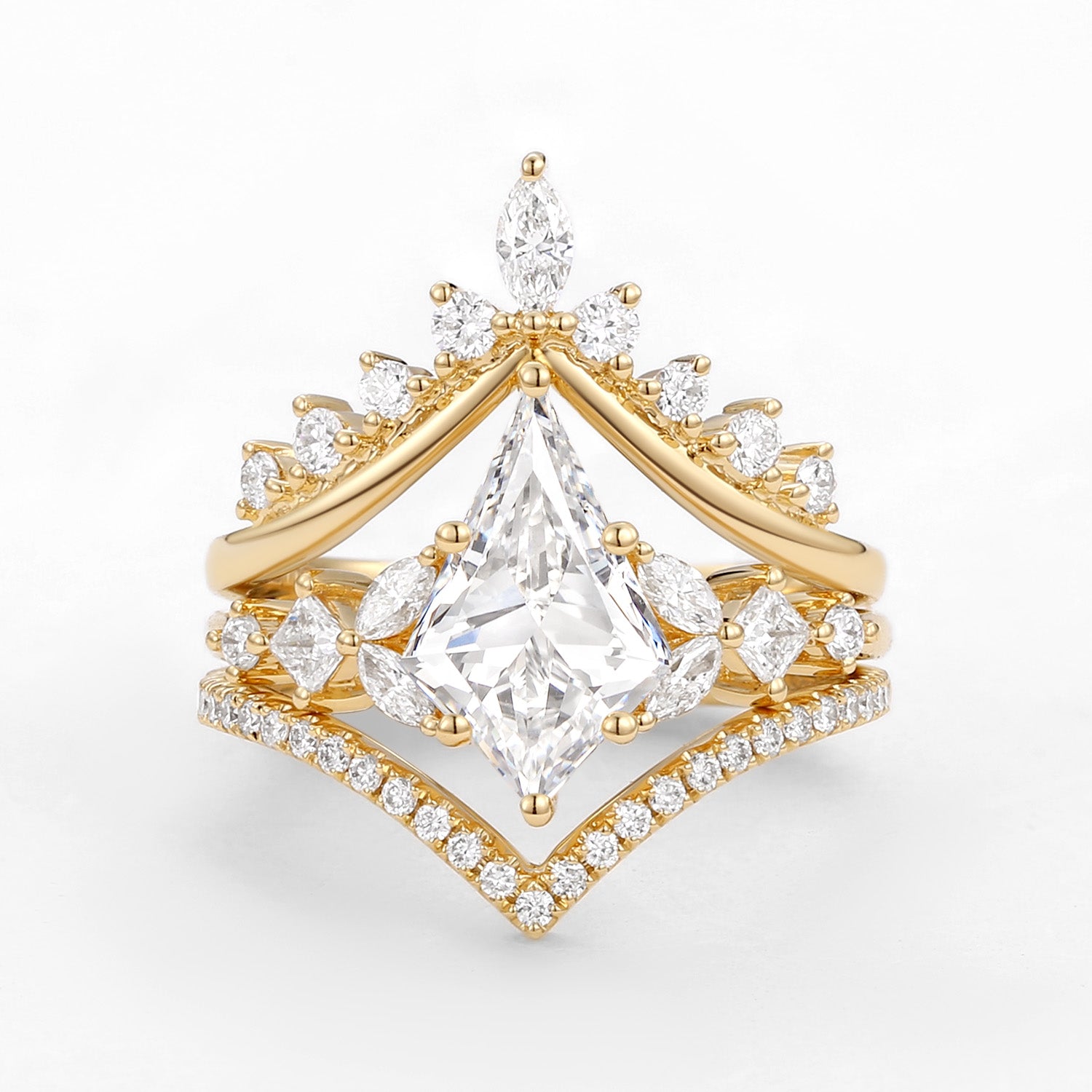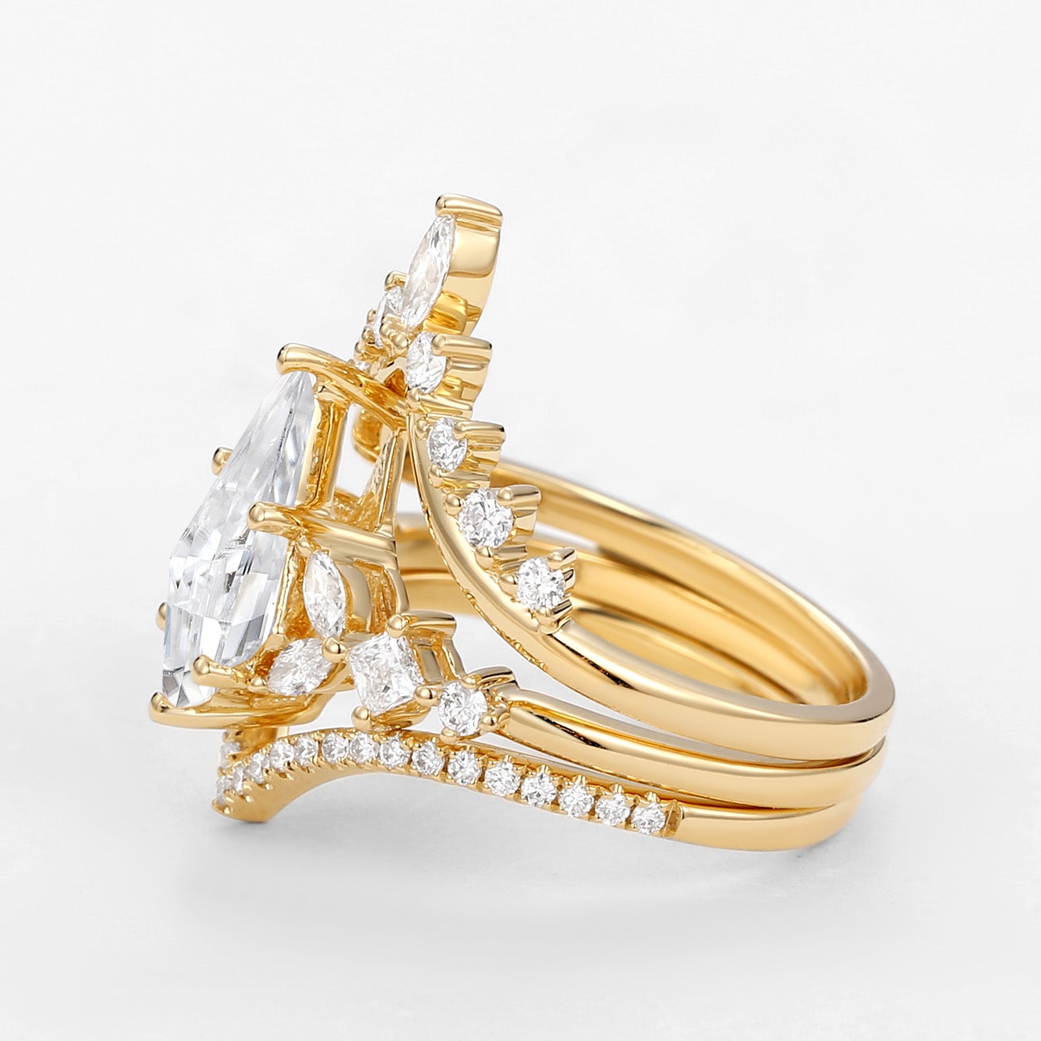 Kite Cut Moissanite Stacking Luxurious Engagement Bridal Set 3pcs - Amelia