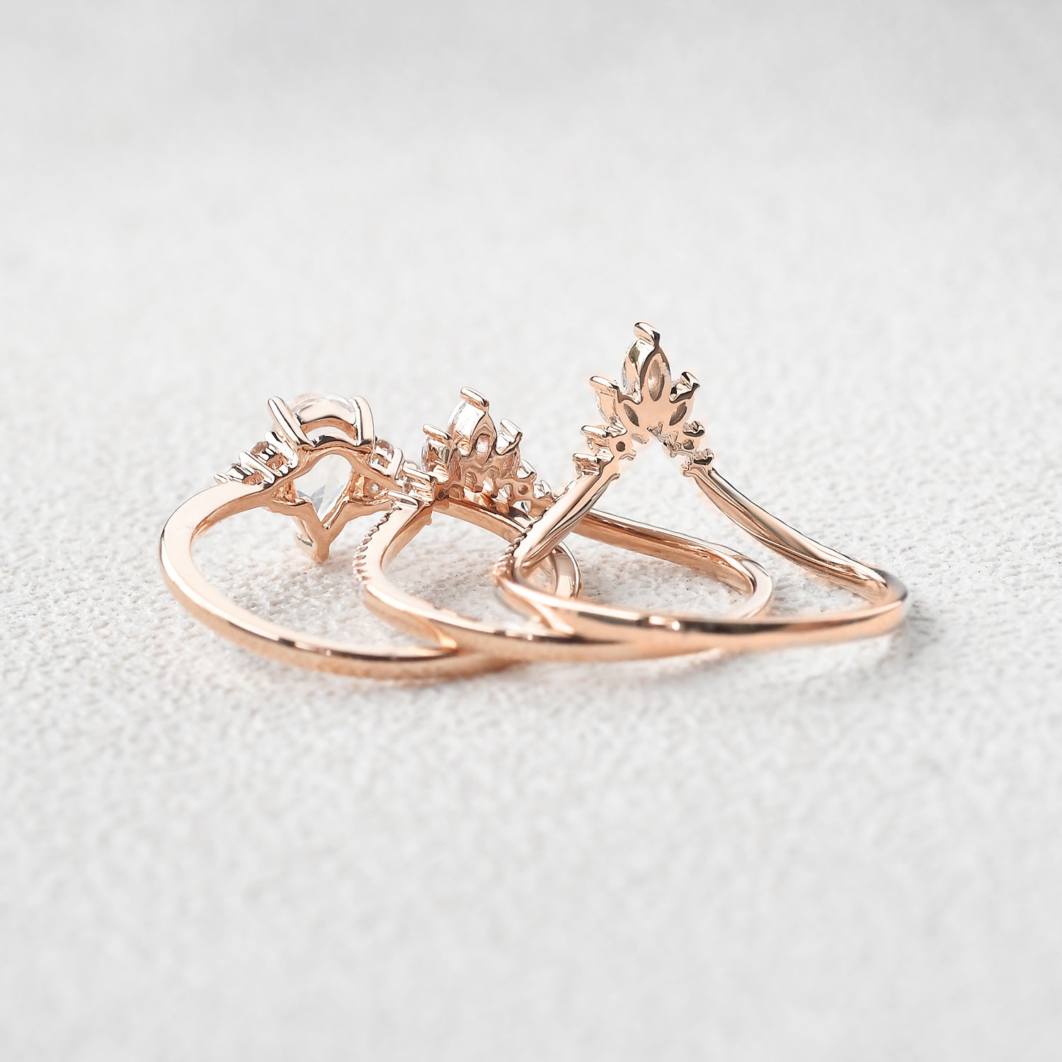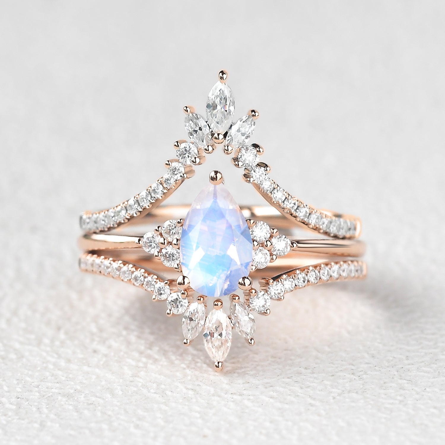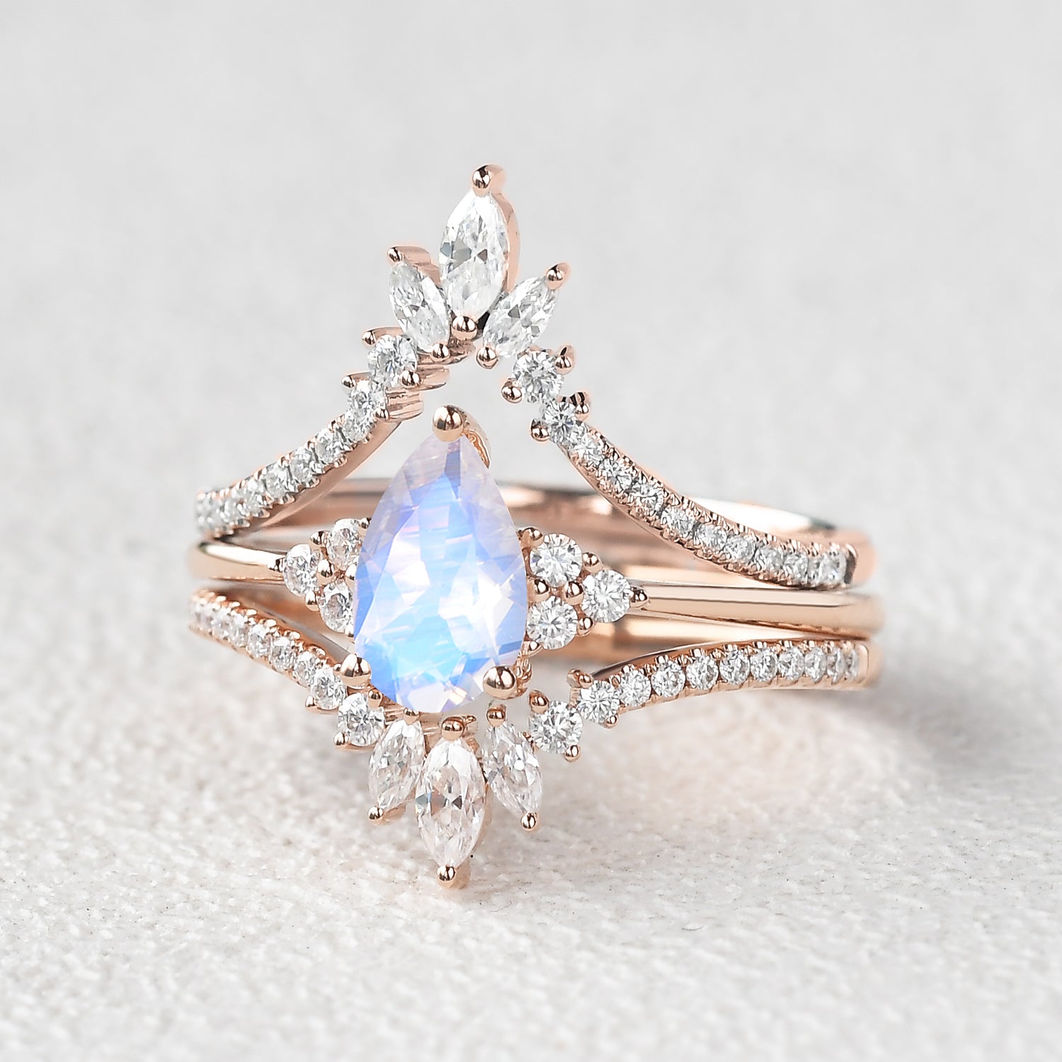 Moonstone Pear Signature Vintage Luna Ring Set 3pcs - Lydia