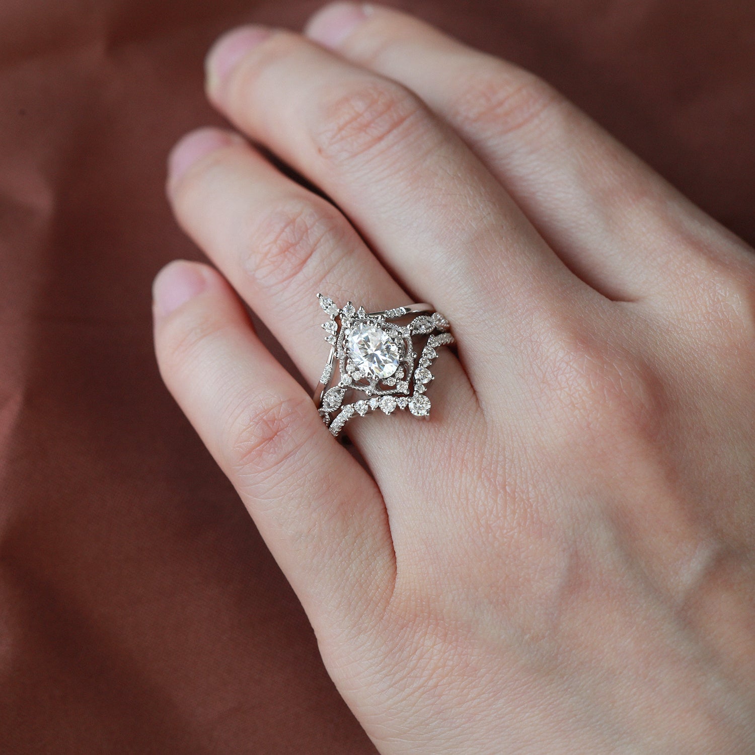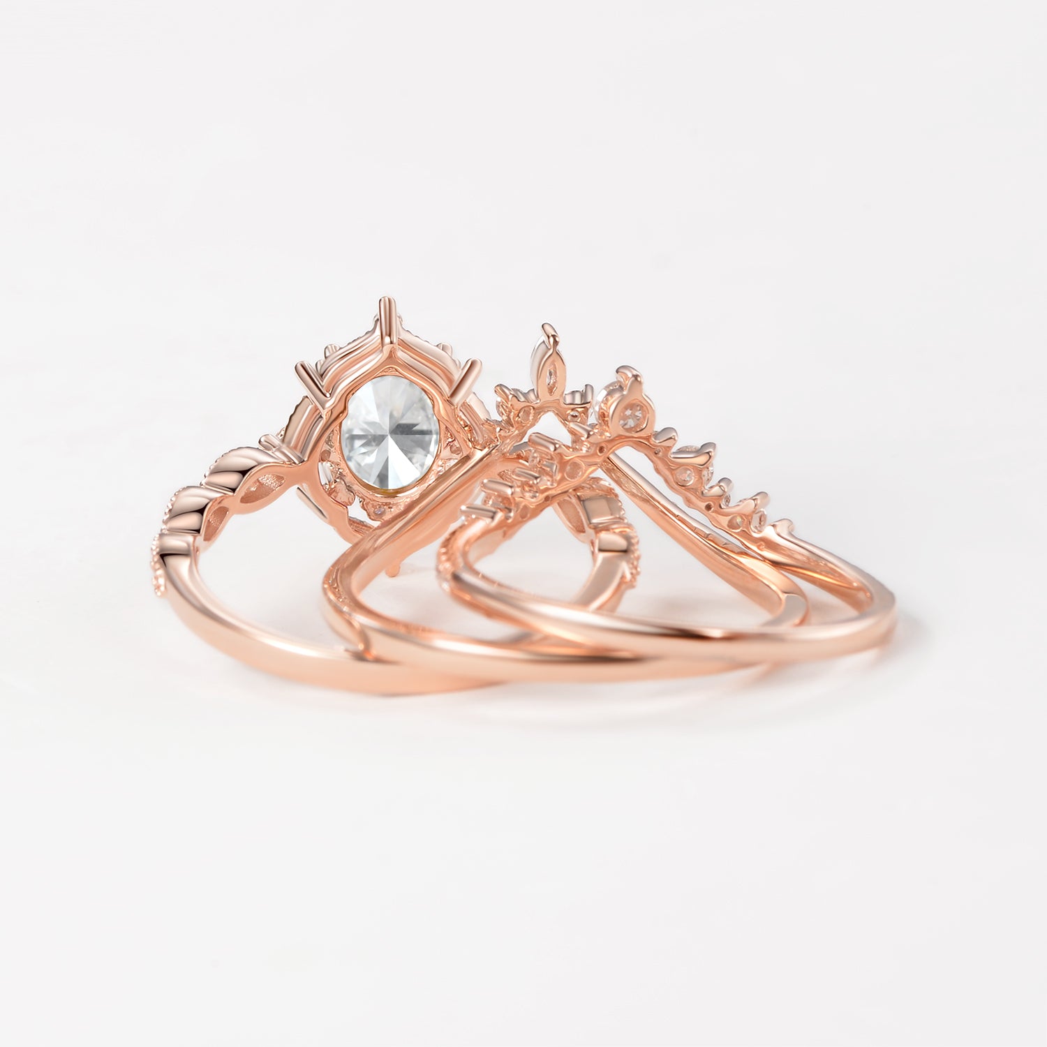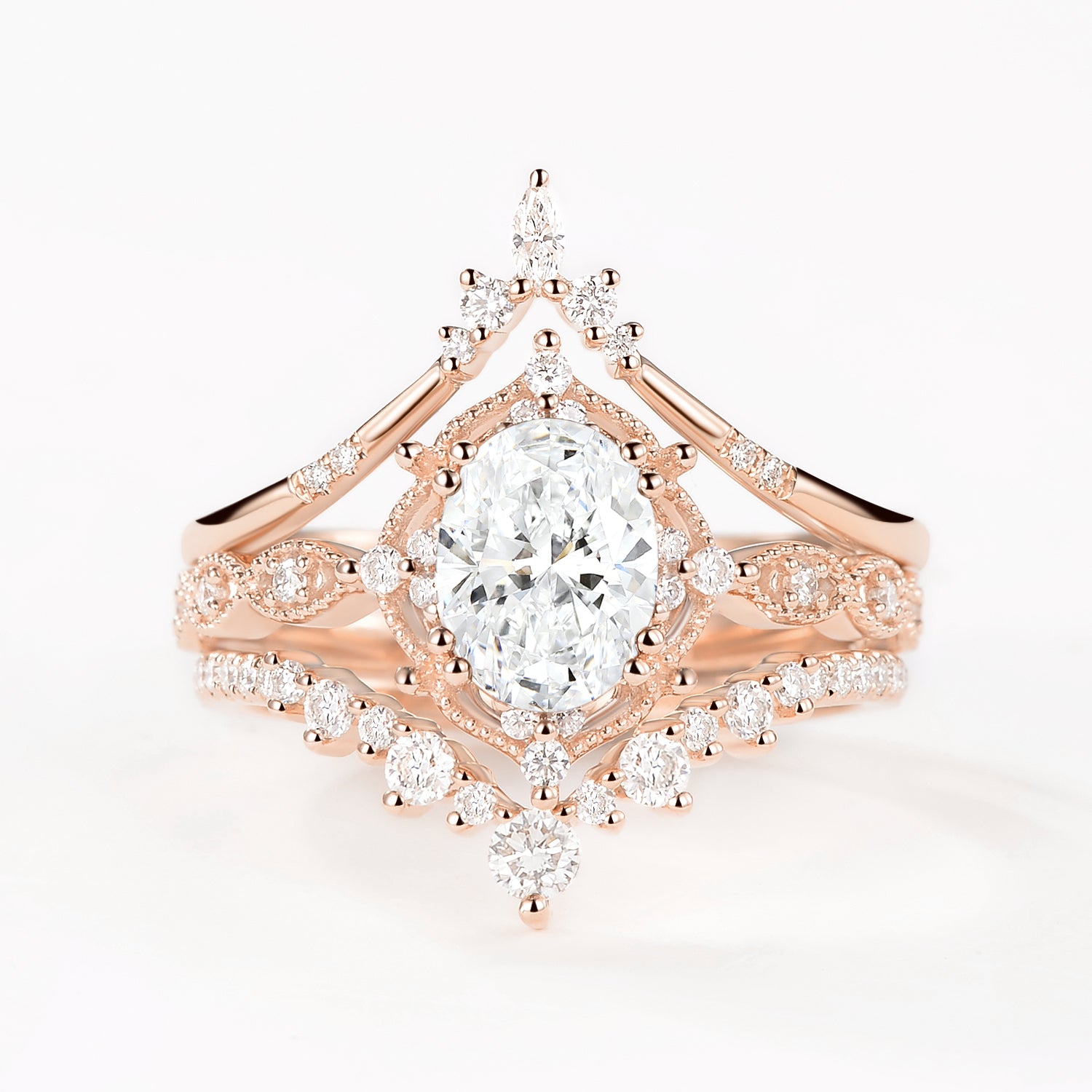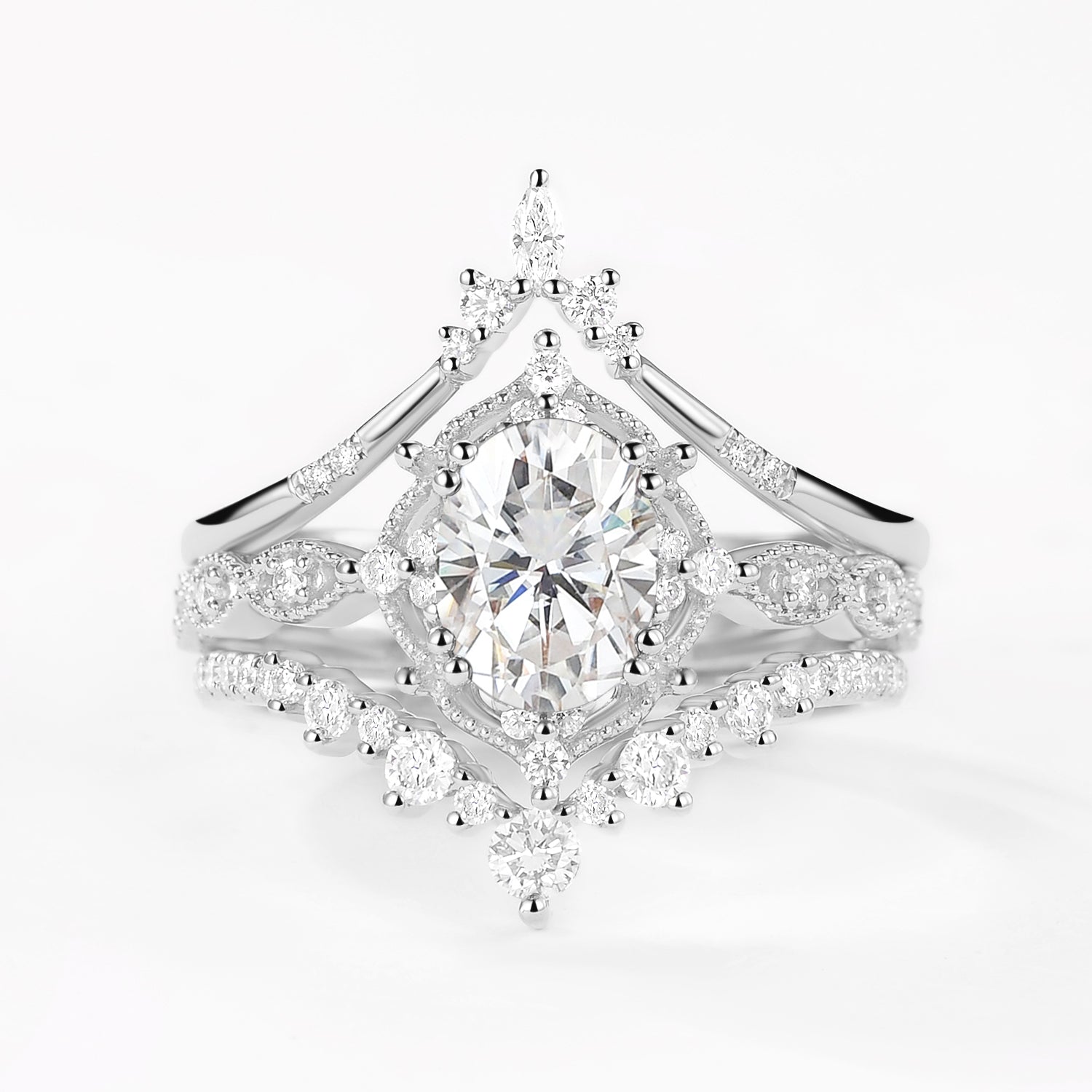 Oval Moissanite Signature Vintage Ring Set 3pcs - Charlotte