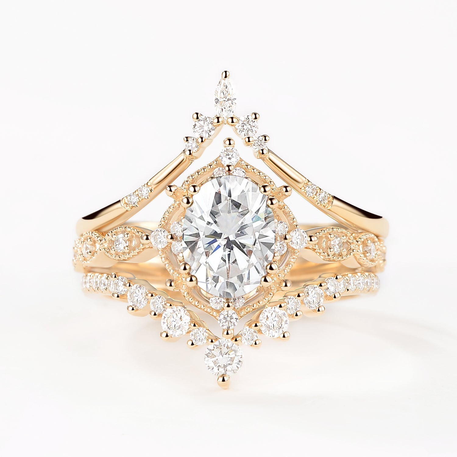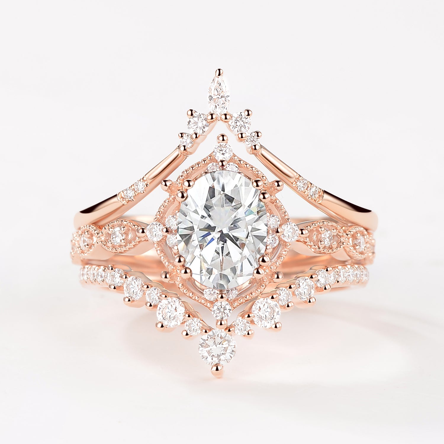 Oval Moissanite Signature Vintage Ring Set 3pcs