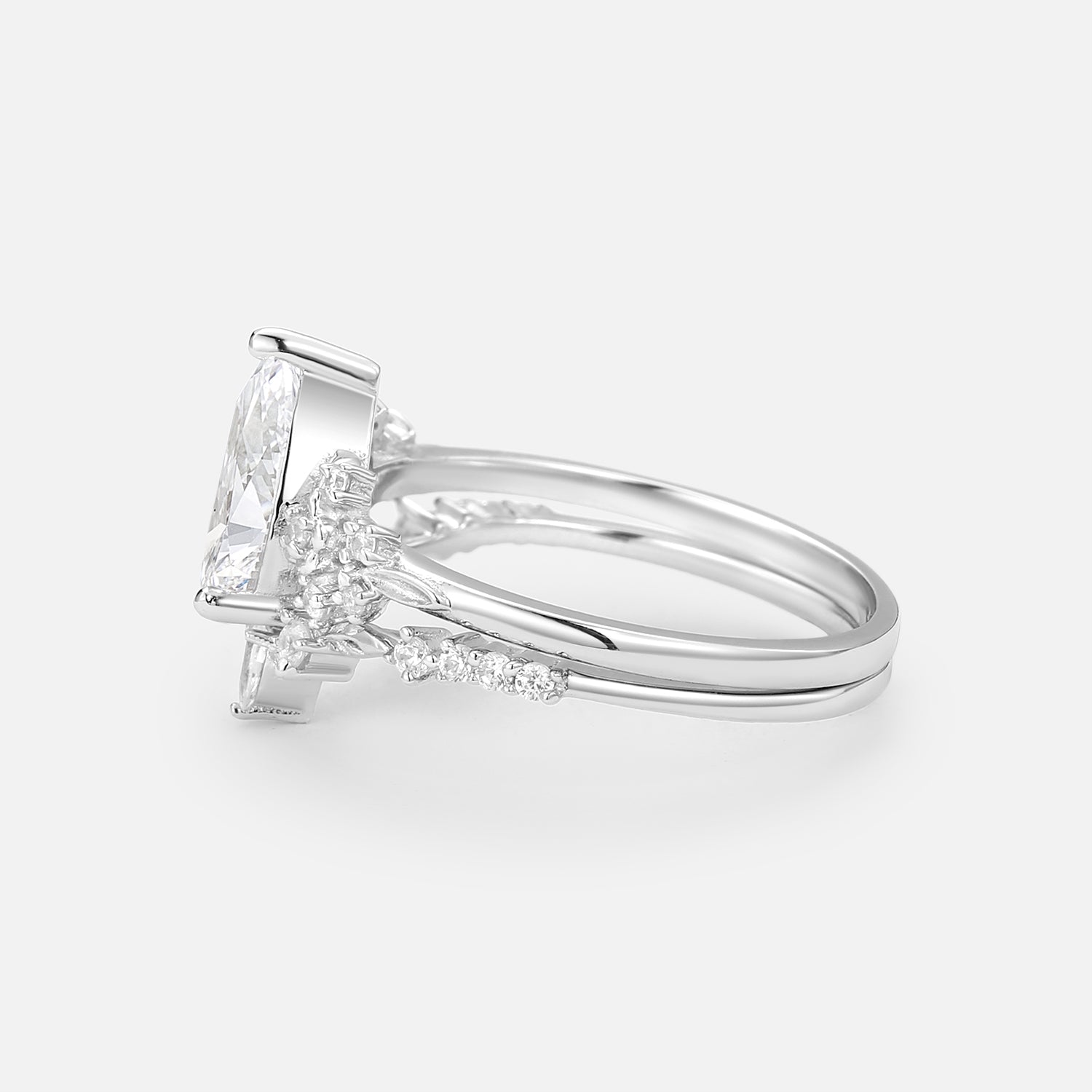 Pear Shaped Lab Grown Diamond Flower Bridal Ring Set 2pcs