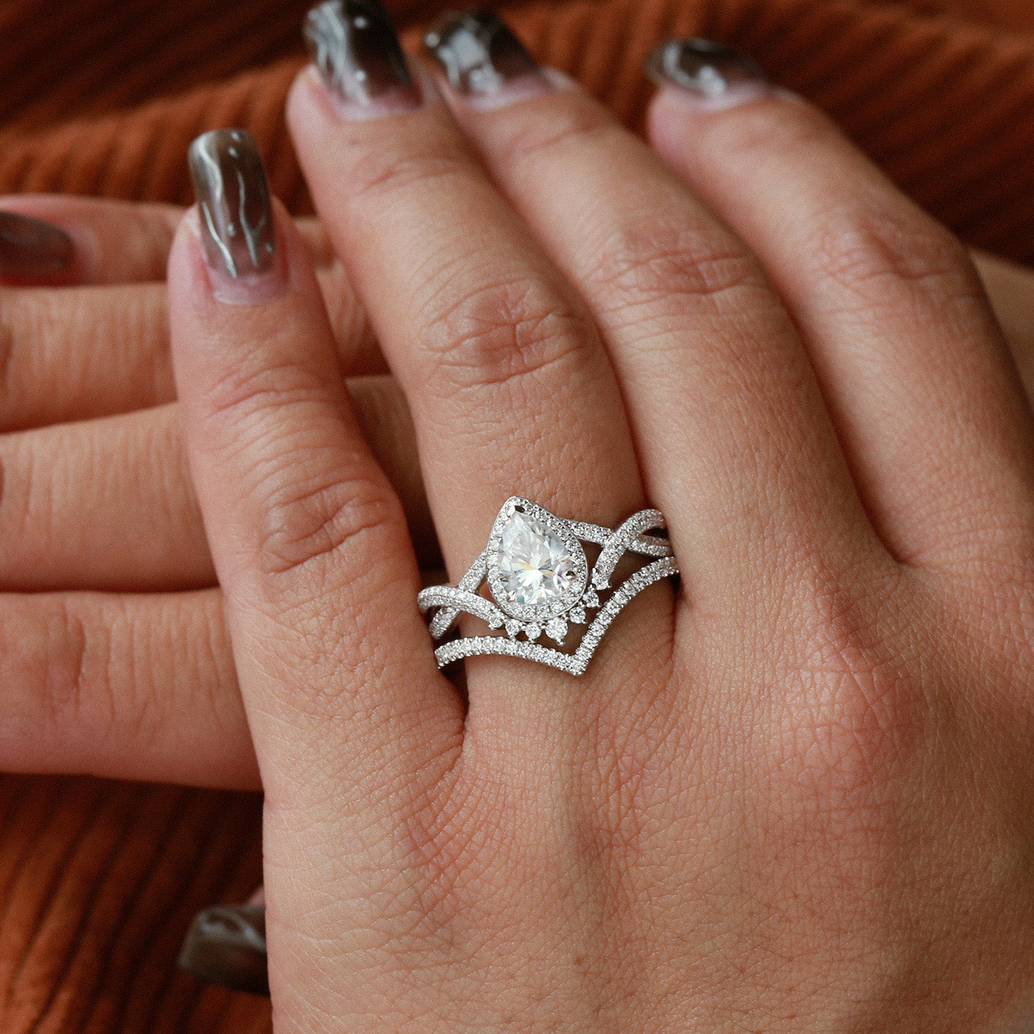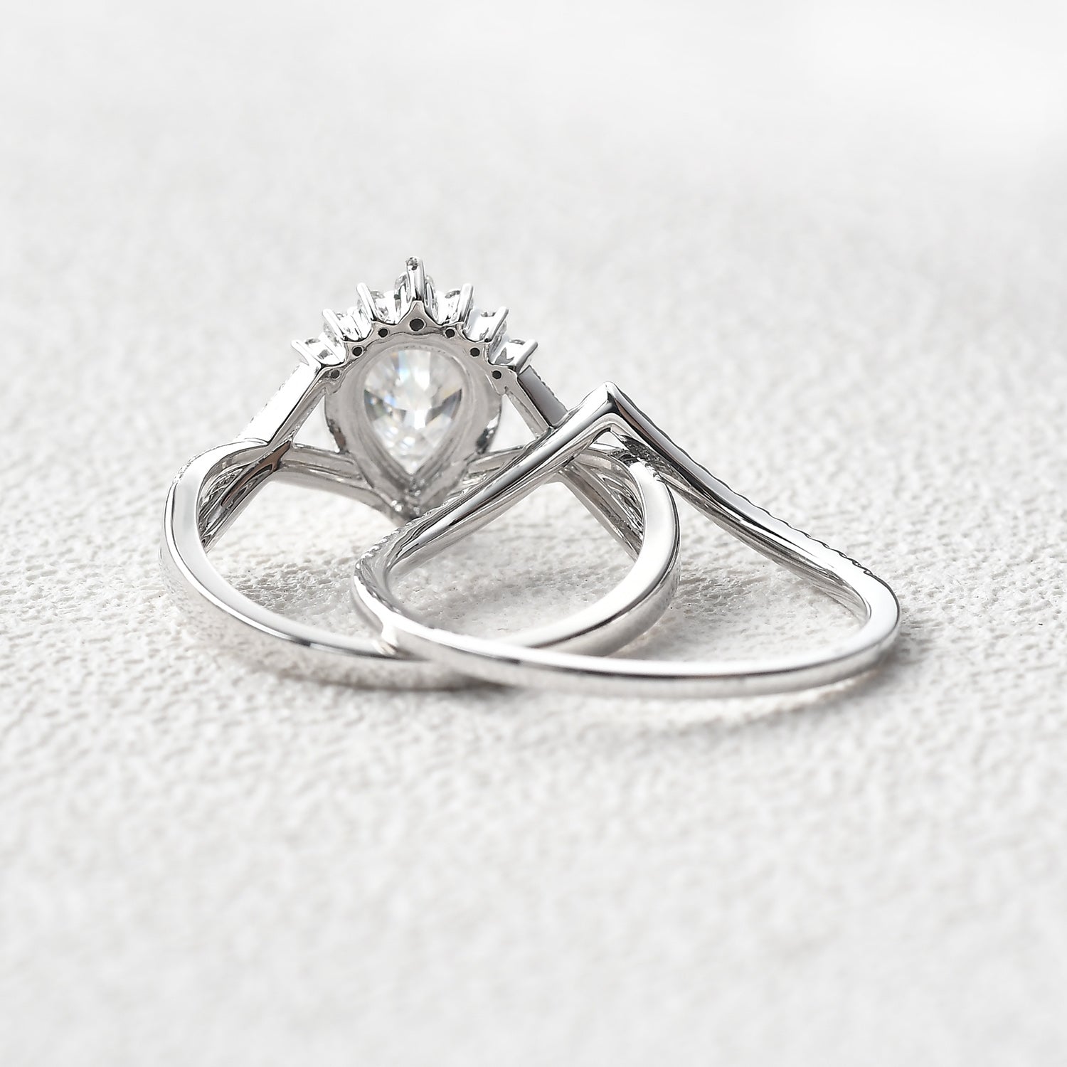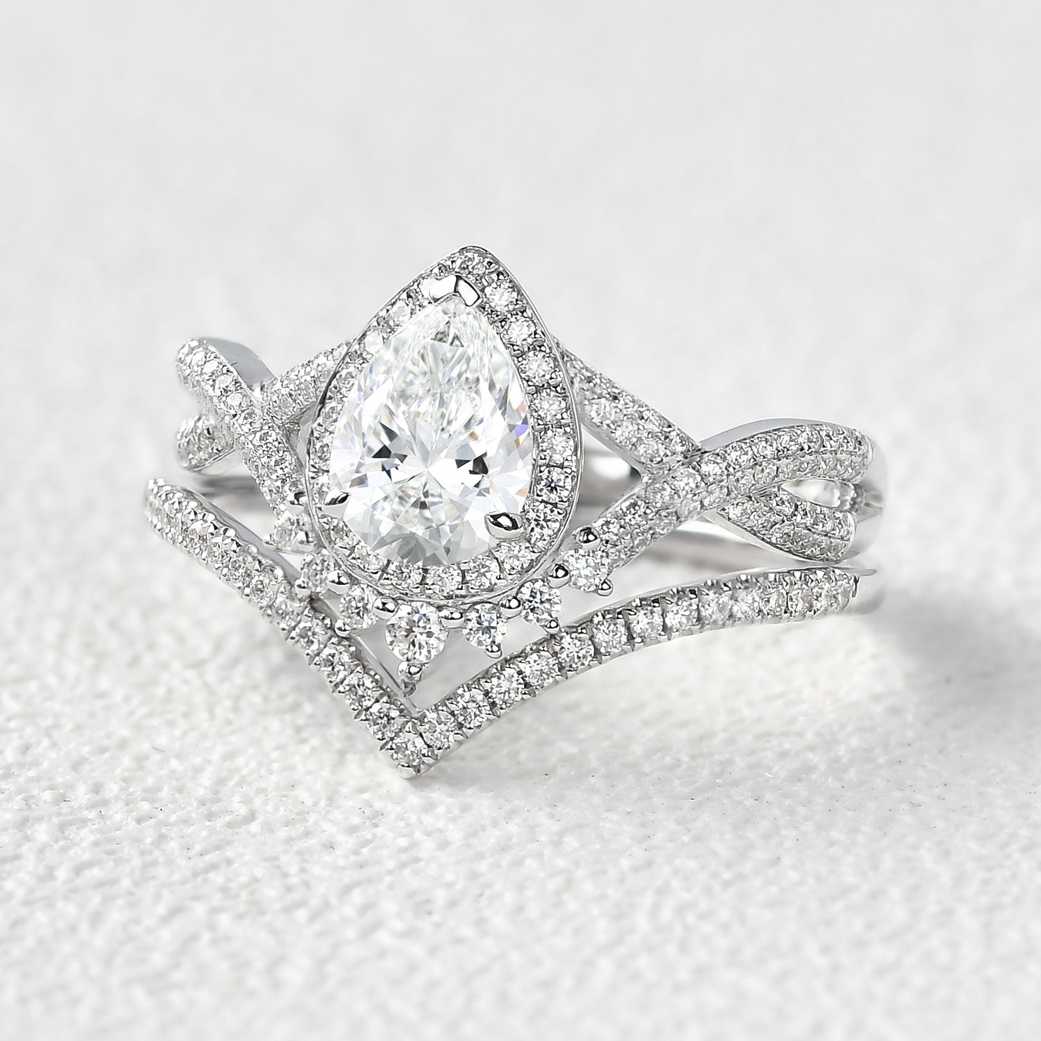 Pear Shaped Moissanite Infinity Gold Ring Set 2pcs