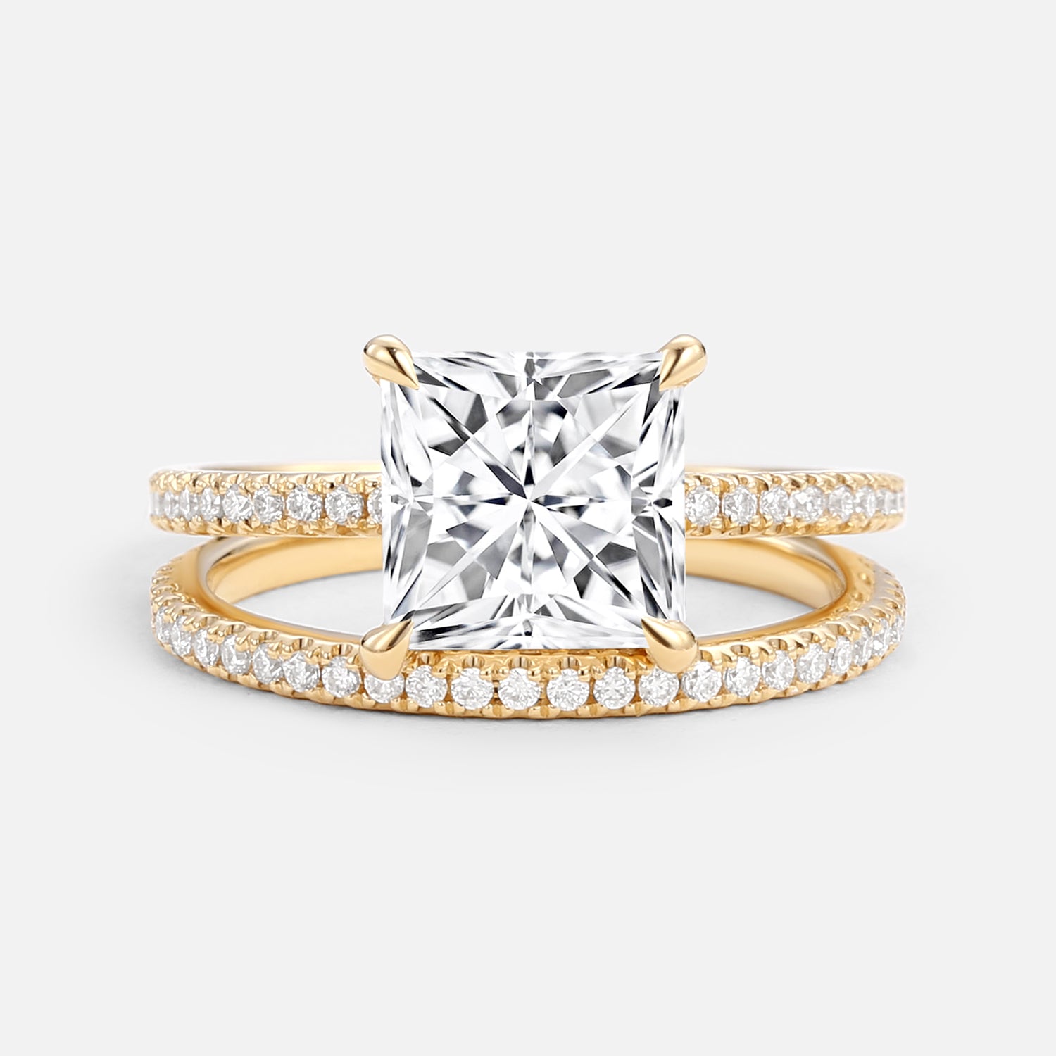 Princess Cut Moissanite Engagement Ring Set 2pcs - Belle