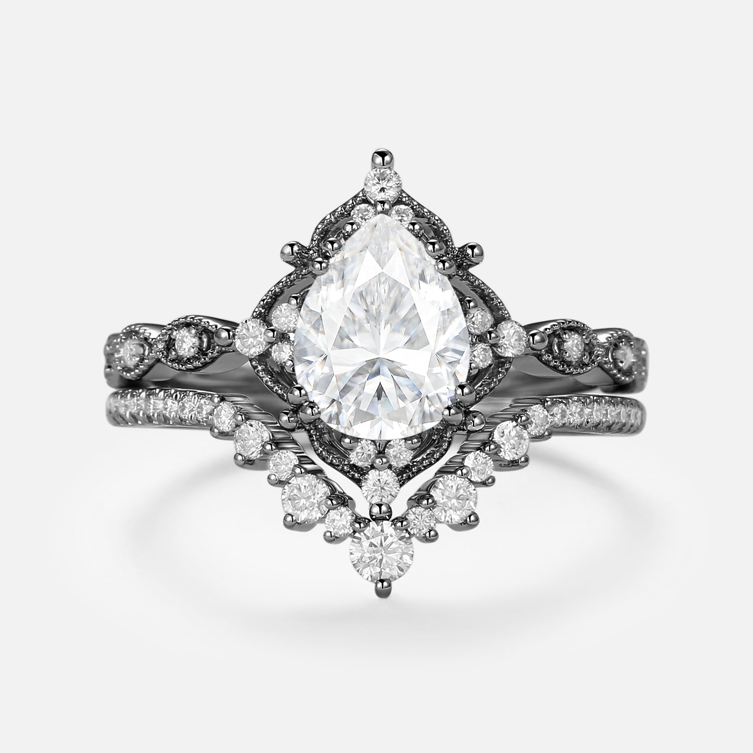 Signature Vintage - Pear Cut Vintage Ring Set 2pcs - Charlotte