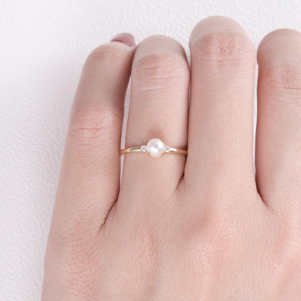 Akoya Pearl & Moissanite Yellow Gold Ring