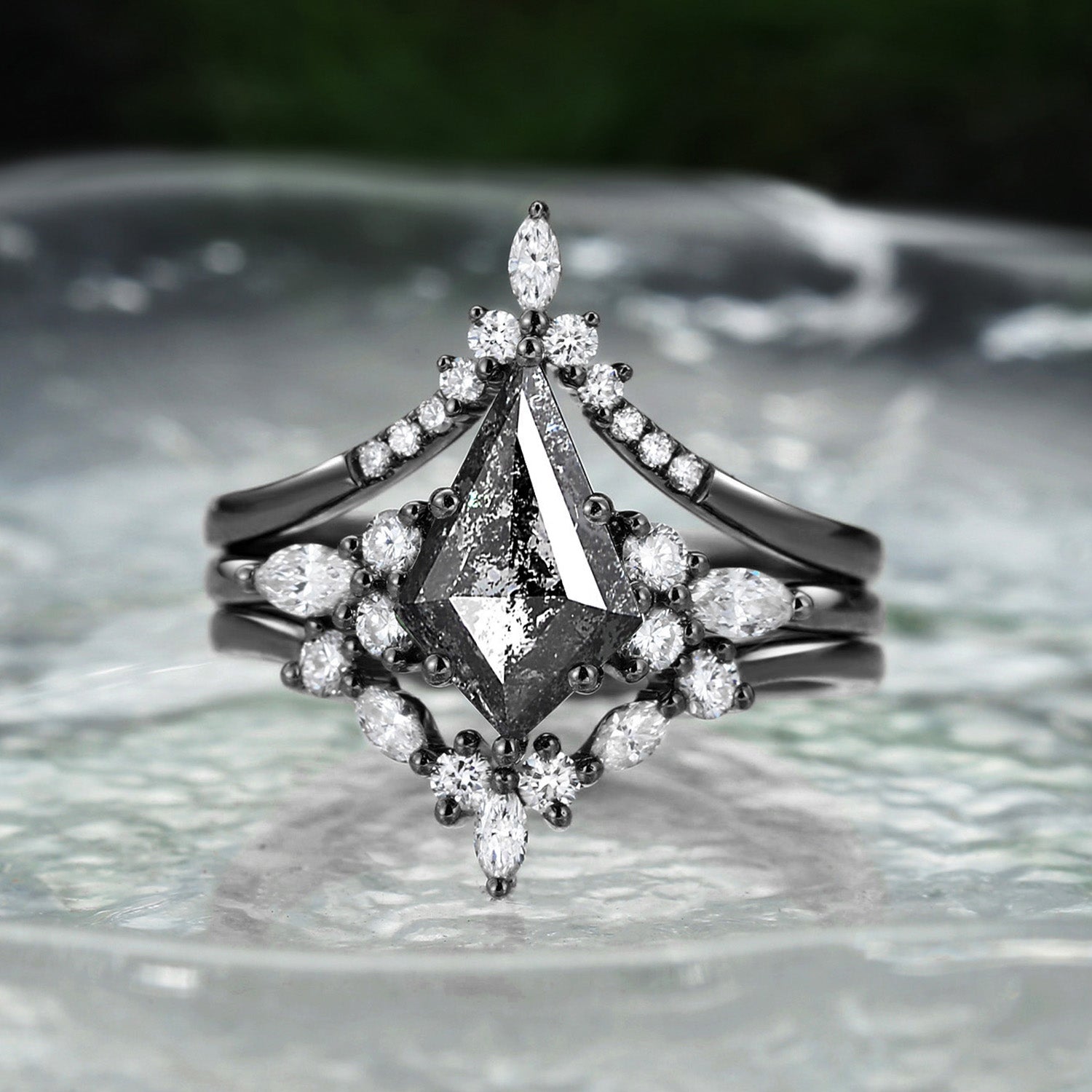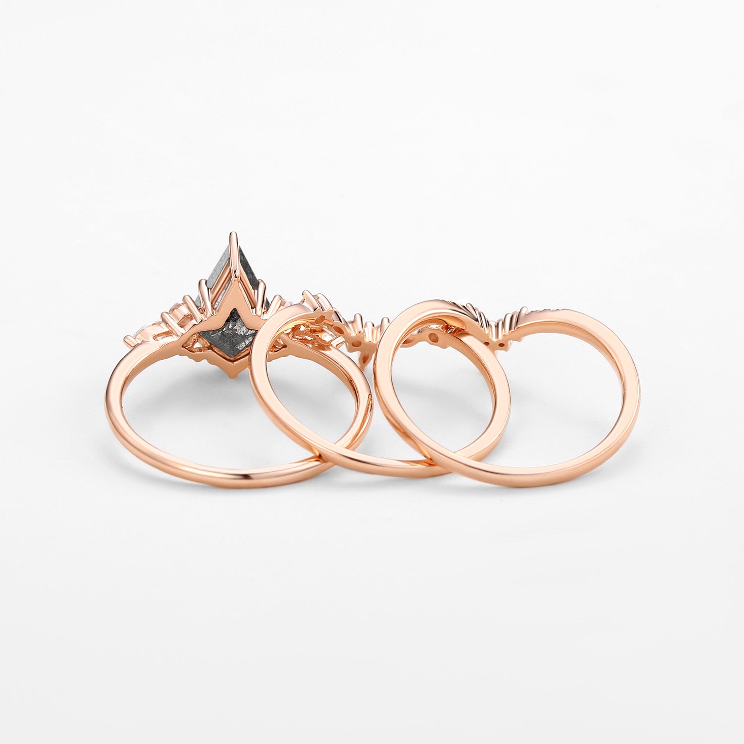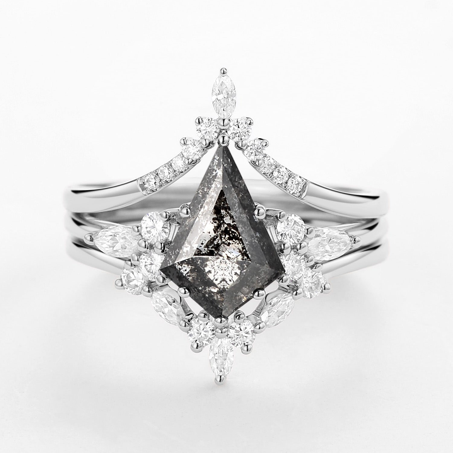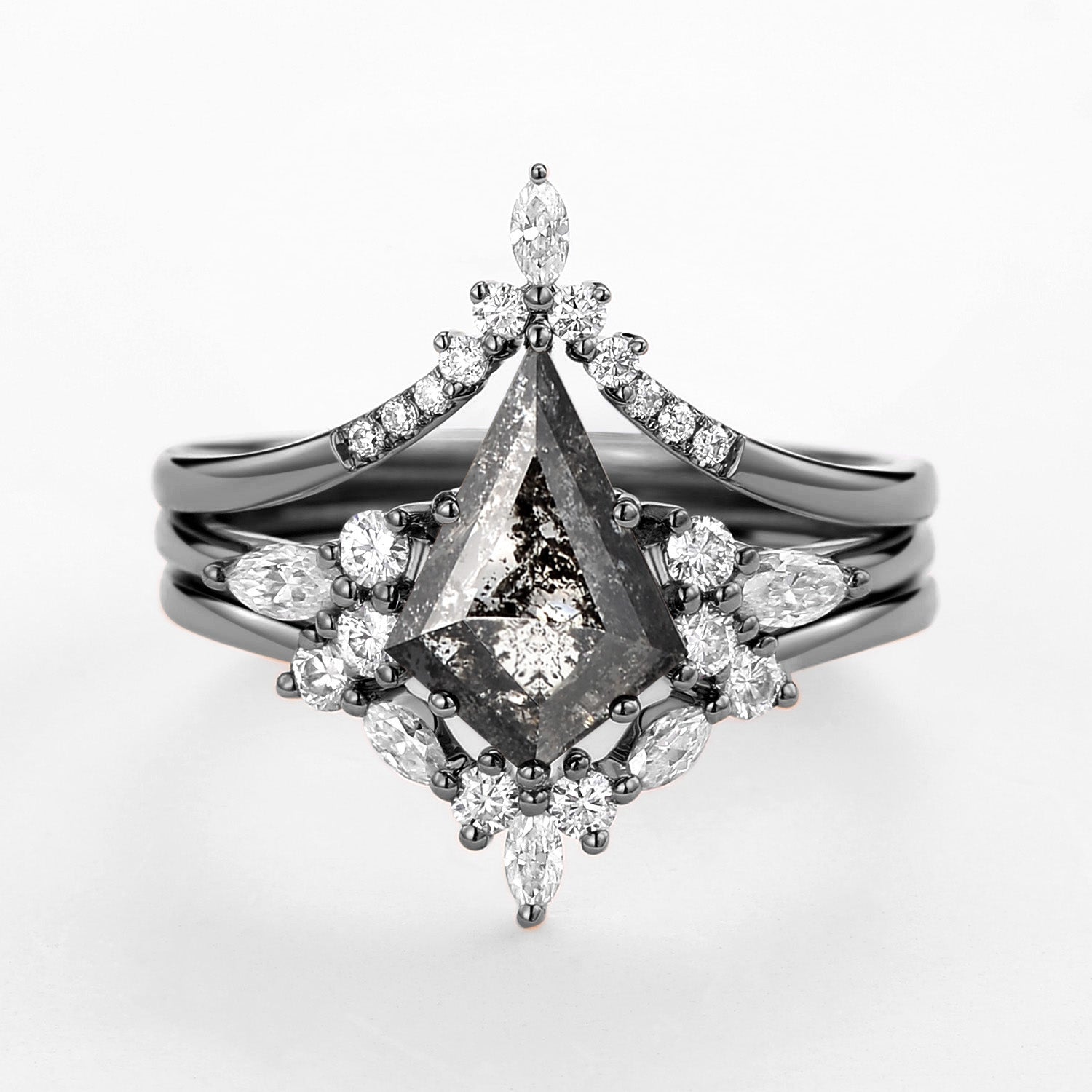 Kite Cut Salt and Pepper Diamonds Ring Set 3pcs - Kinsley