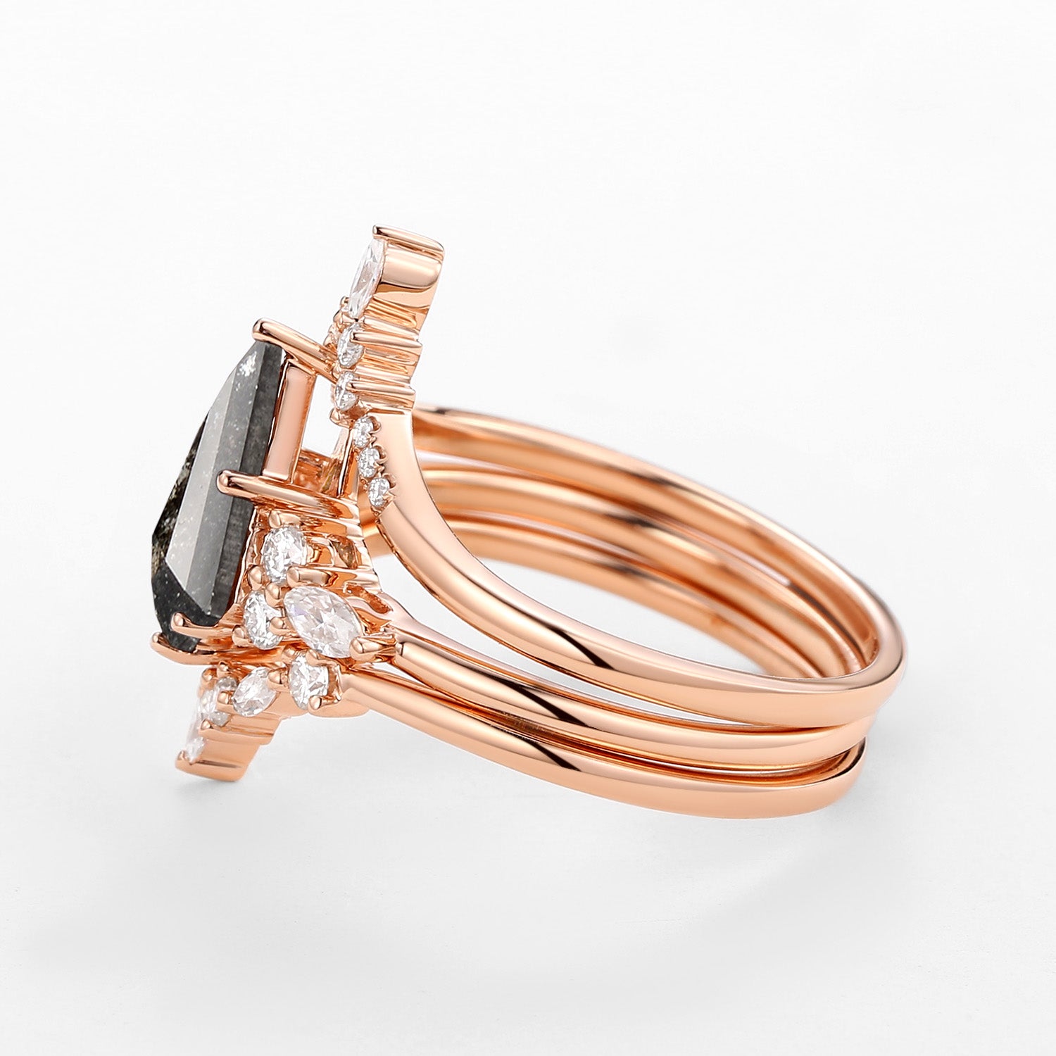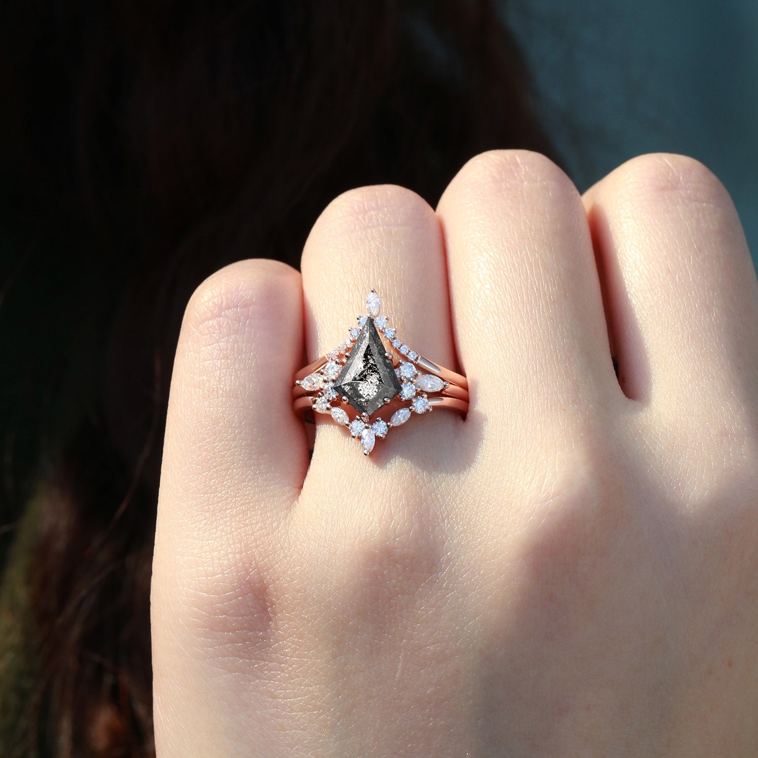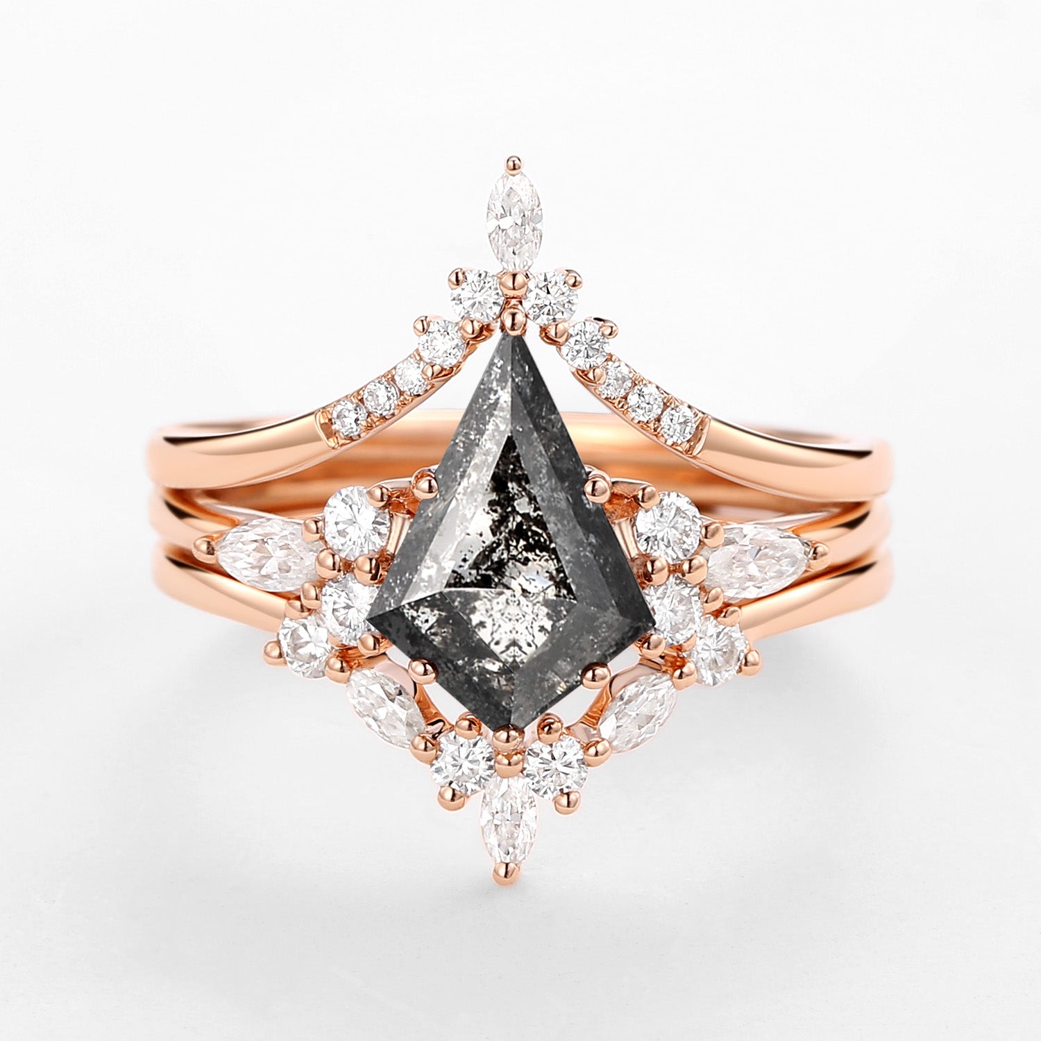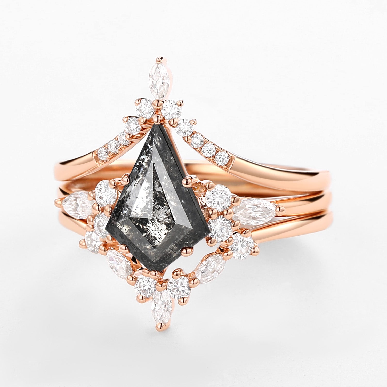 Kite Cut Salt and Pepper Diamonds Ring Set 3pcs - Kinsley