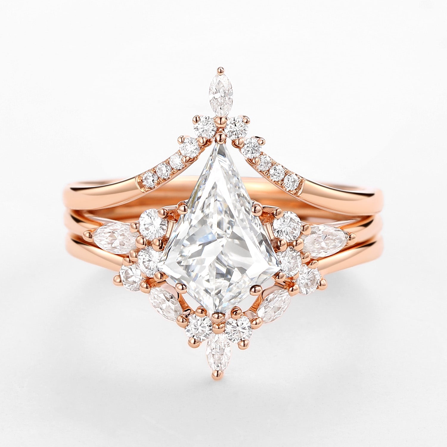 - 14k solid rose gold engagement ring set