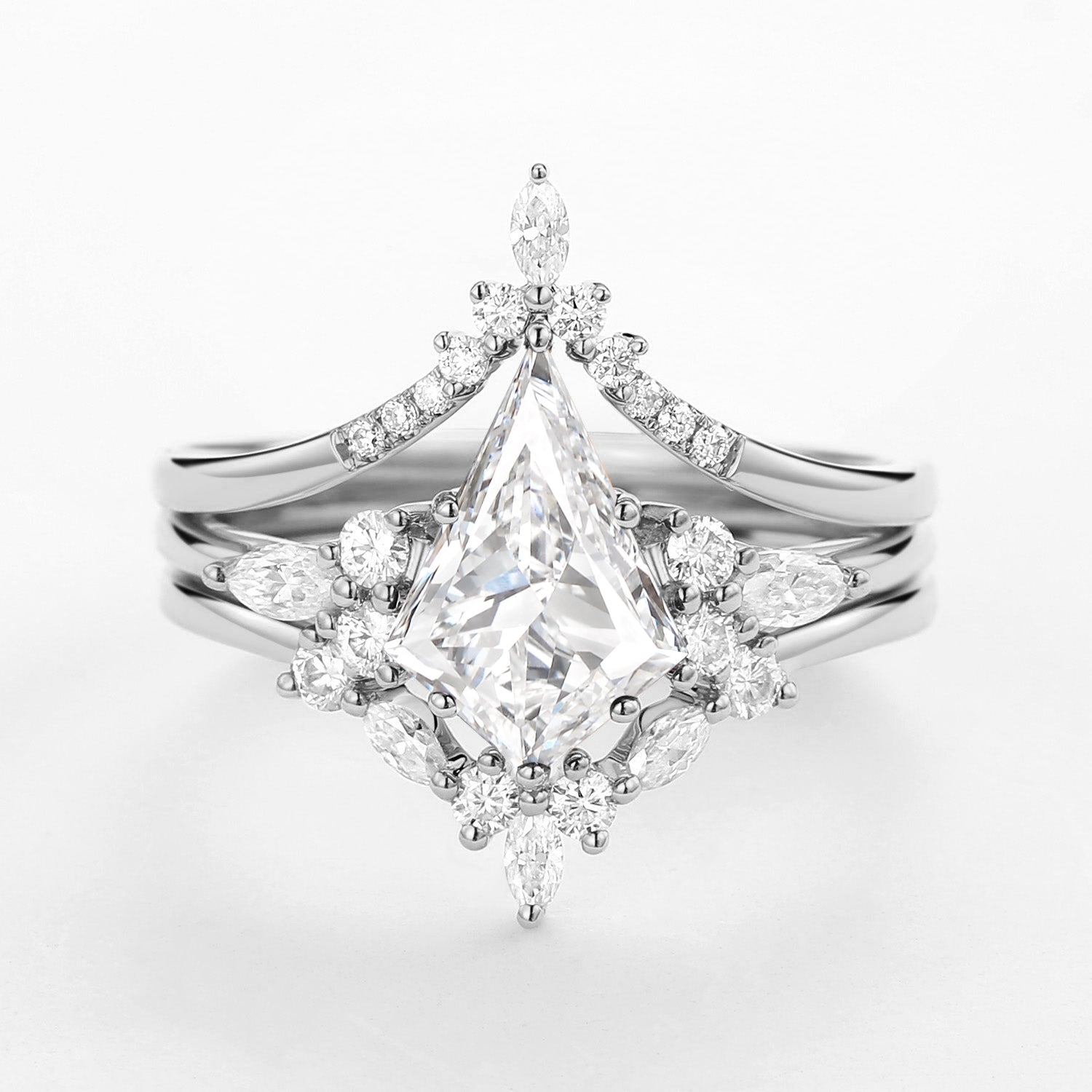 Felicegals 2.0ct Kite Cut Salt and Pepper Diamonds Ring Set 3pcs Natural Diamond Ring Set 3PCS Salt and Pepper Engagement Unique Kite Ring