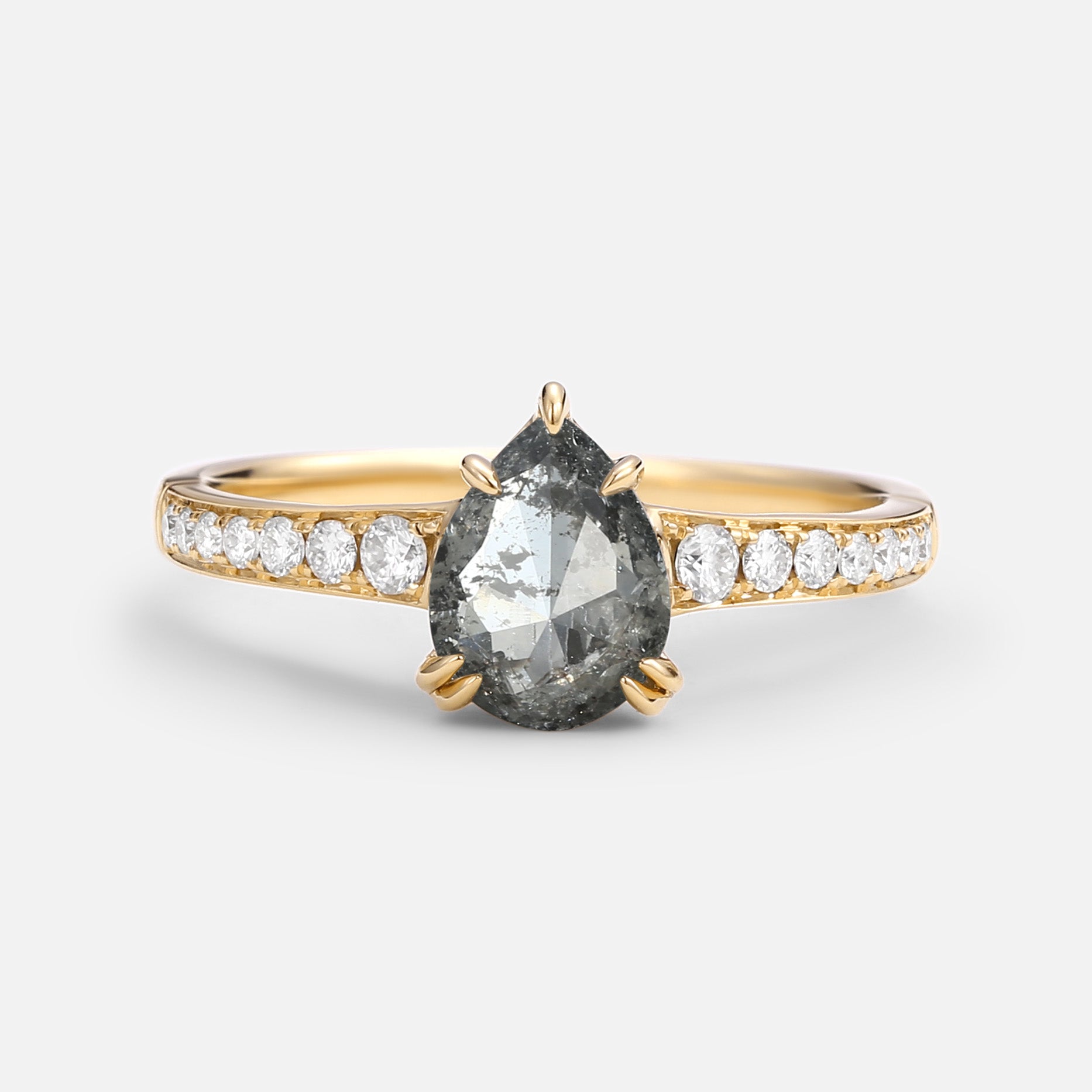 Antique Salt and Pepper Diamonds Pear Cut Engagement Ring