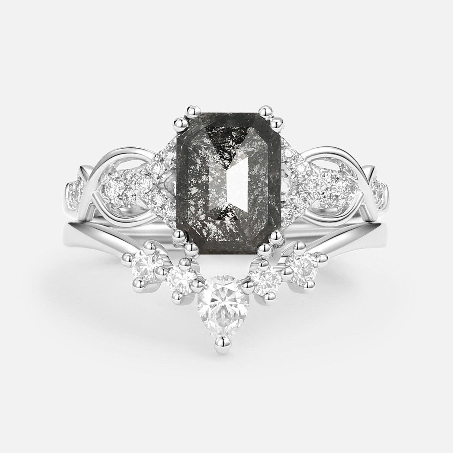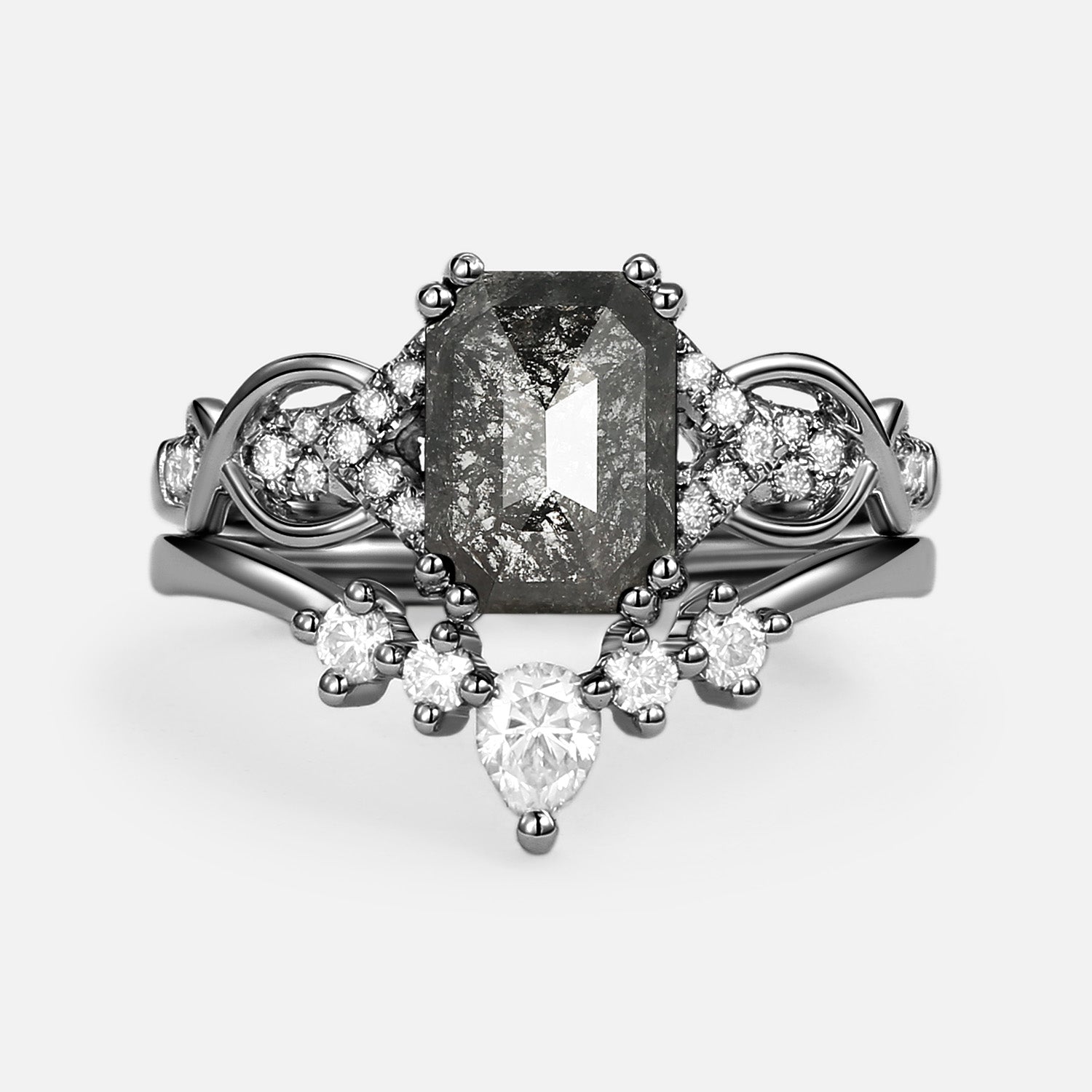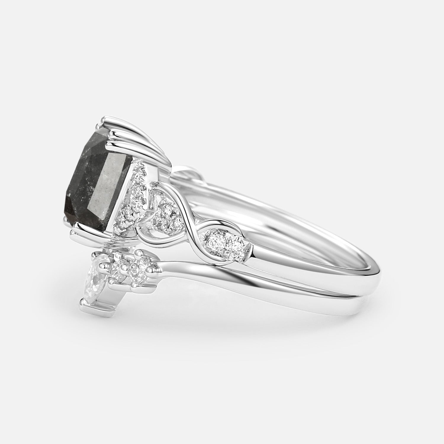 Cushion Cut Salt and Pepper Diamonds Vintage Engagement Ring Sets 2pcs