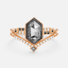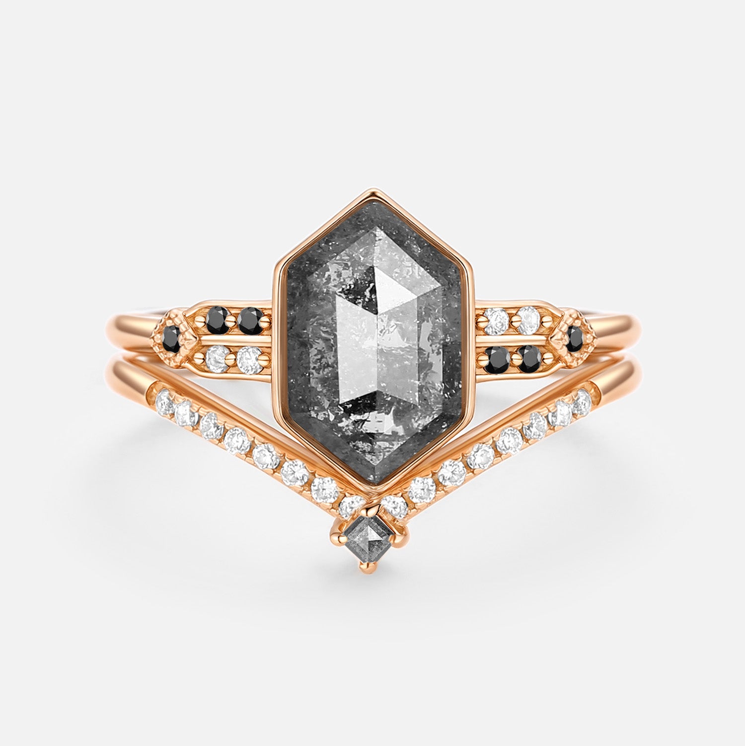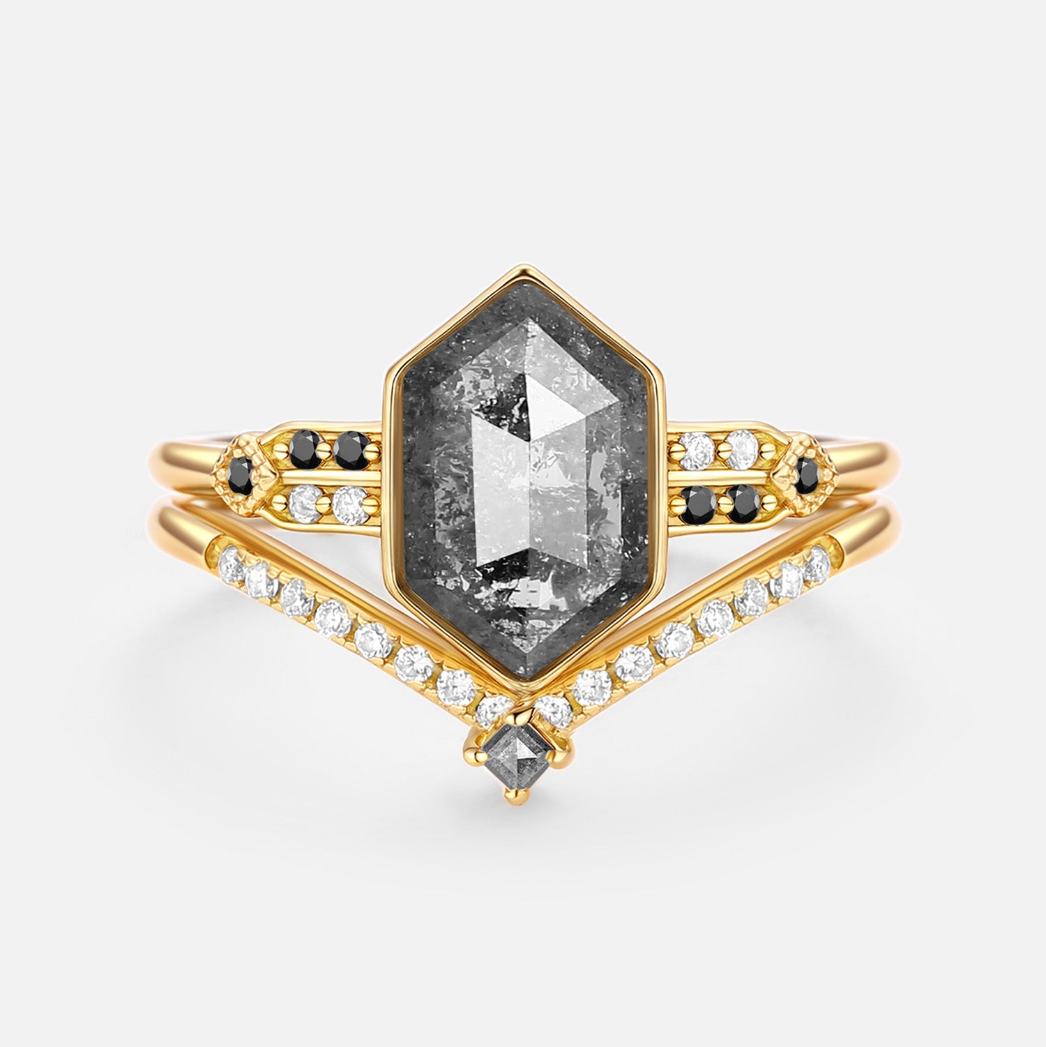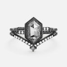 Hexagon Salt and Pepper Diamonds Ring Set 2pcs - Nocturne