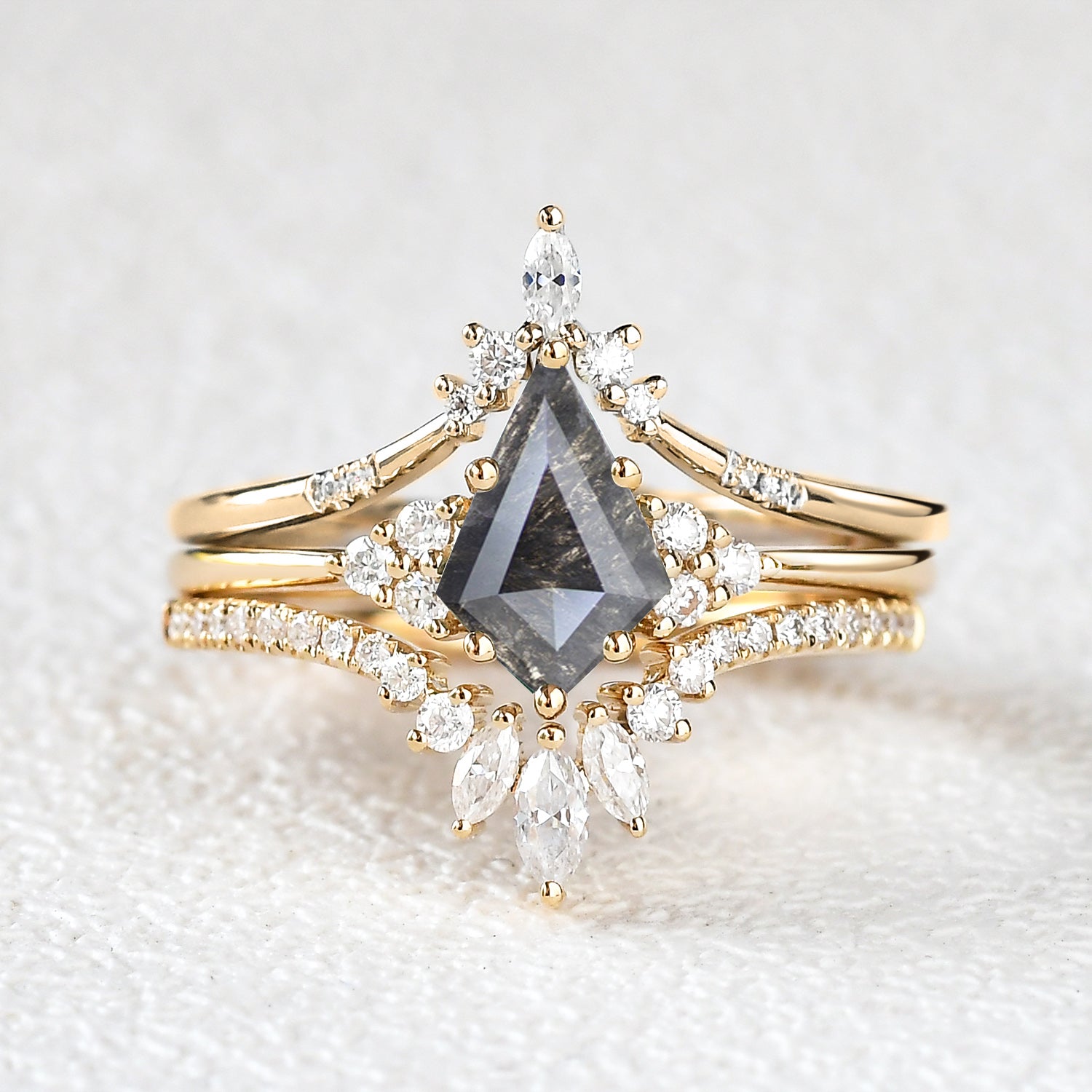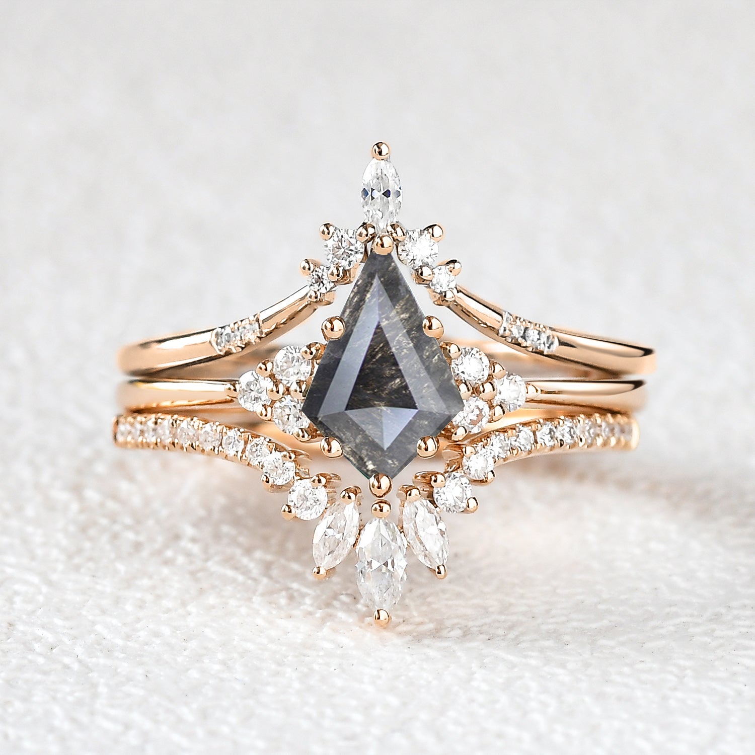 Kite Cut Darker Salt and Pepper Diamonds Ring Set 3pcs