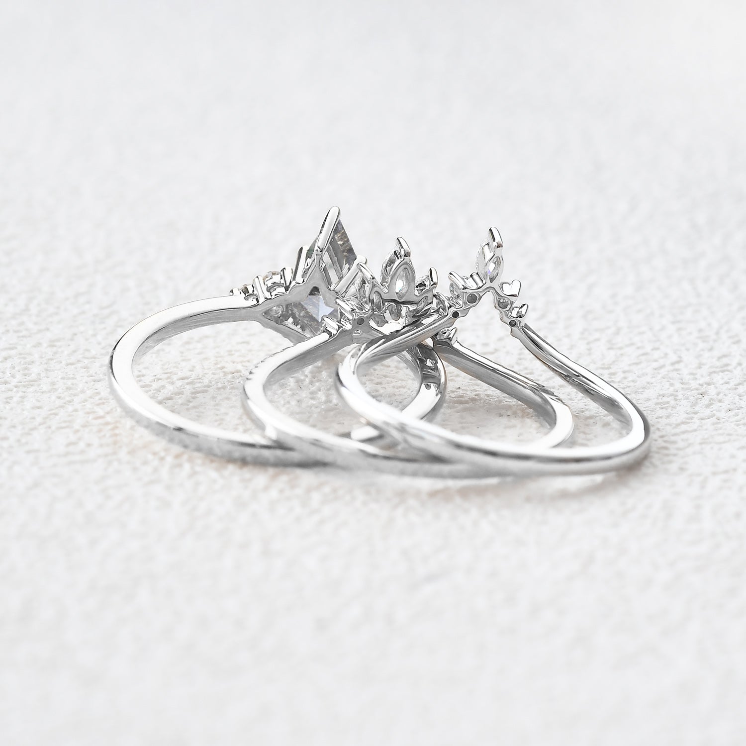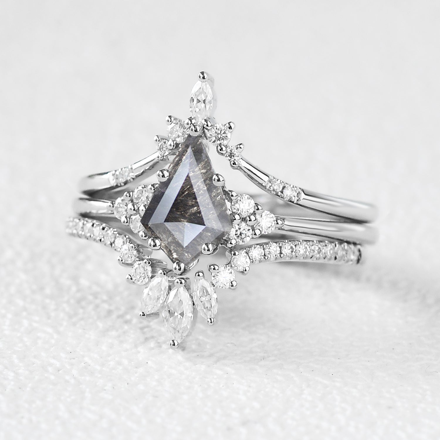 Felicegals 1.5ct Unique Kite Cut Salt and Pepper Diamonds Ring Set 3pcs Natural Diamond Ring Set 3PCS