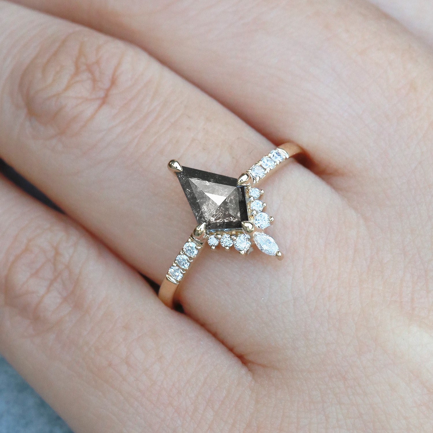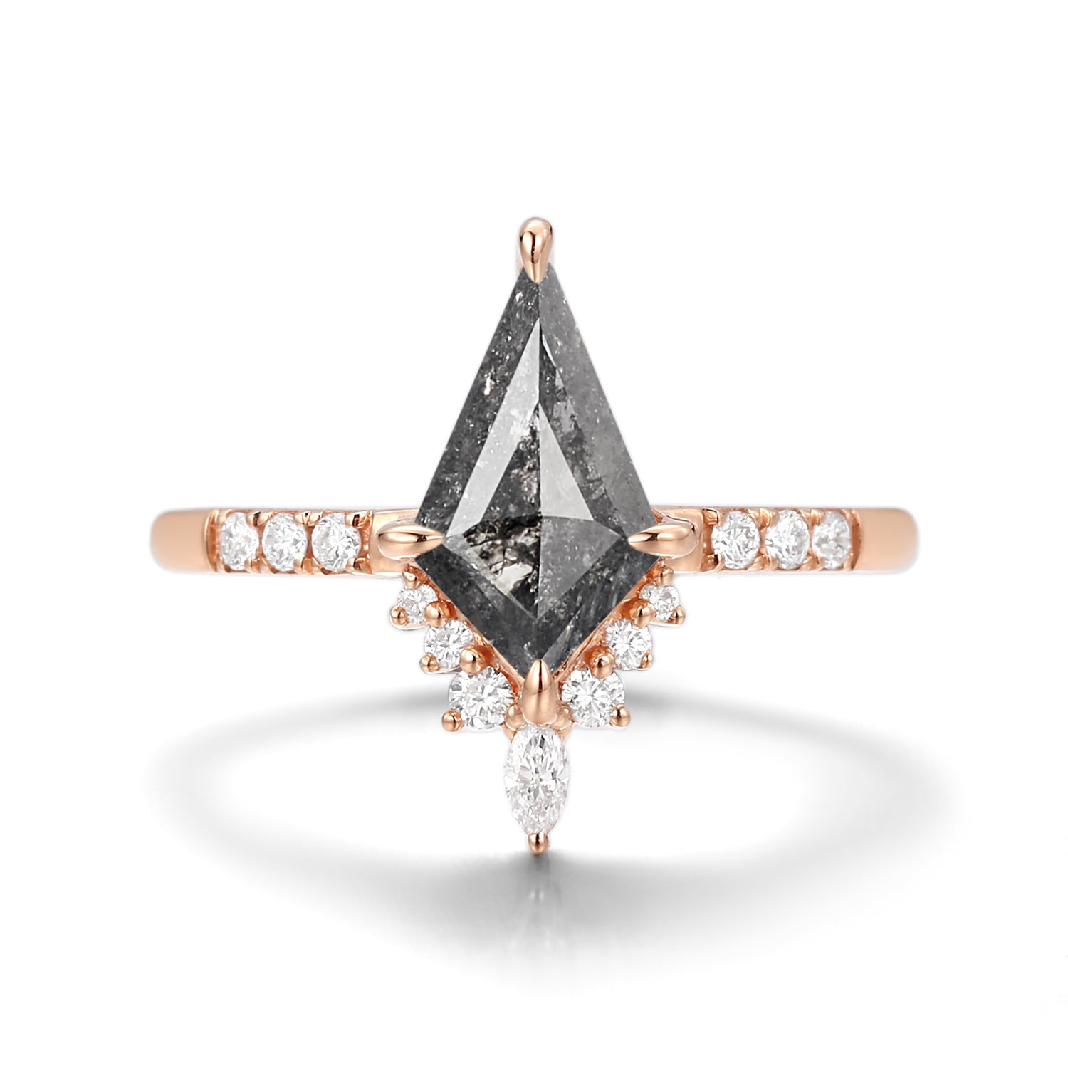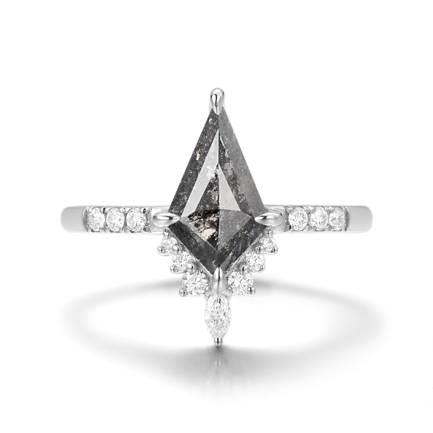 Kite Cut Salt and Pepper Diamonds Engagement Ring - Starla
