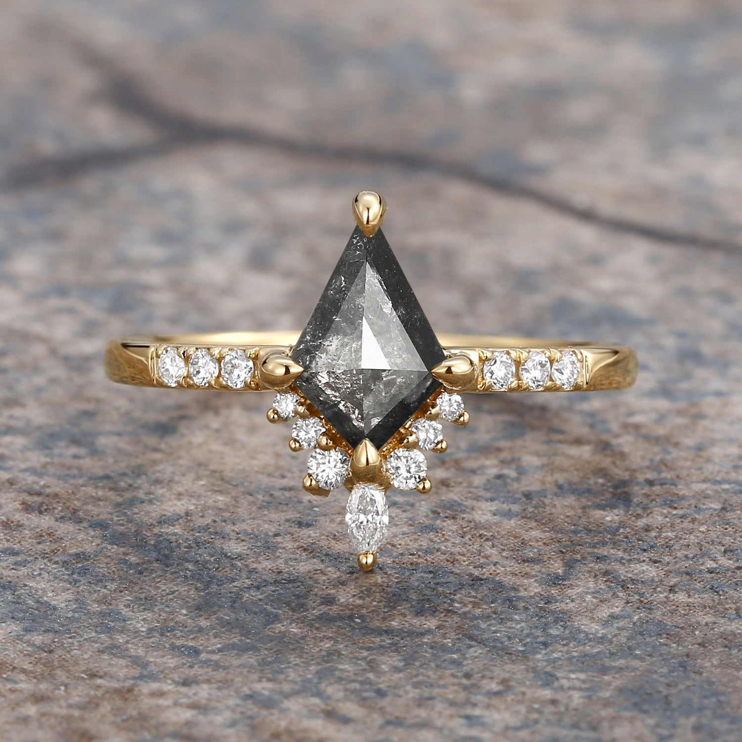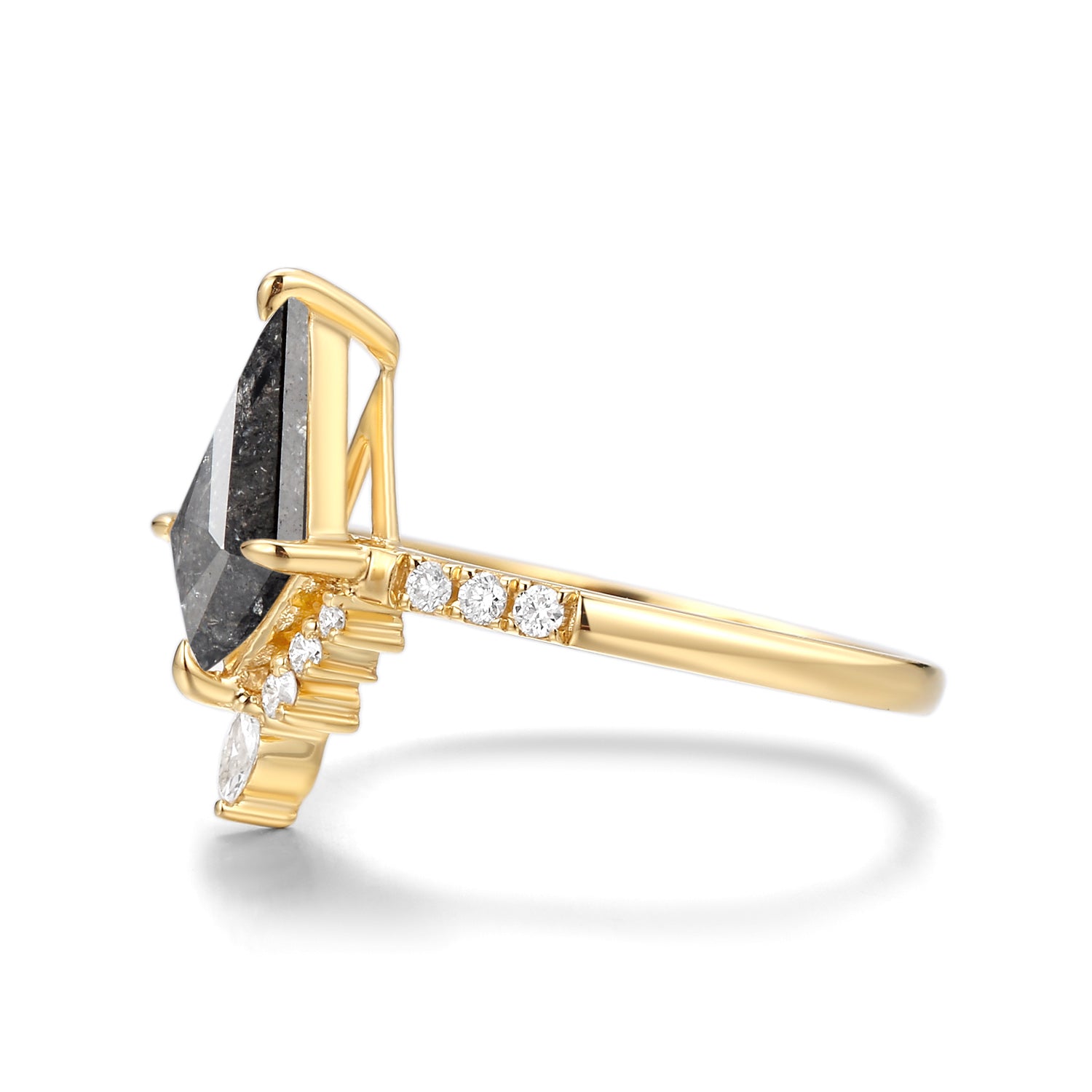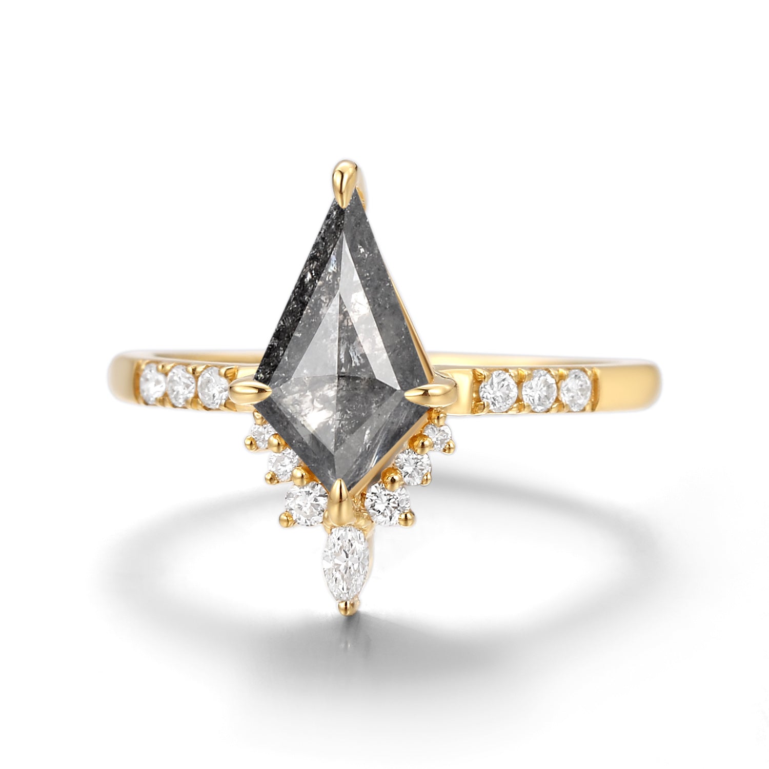 Kite Cut Salt and Pepper Diamonds Engagement Ring - Starla