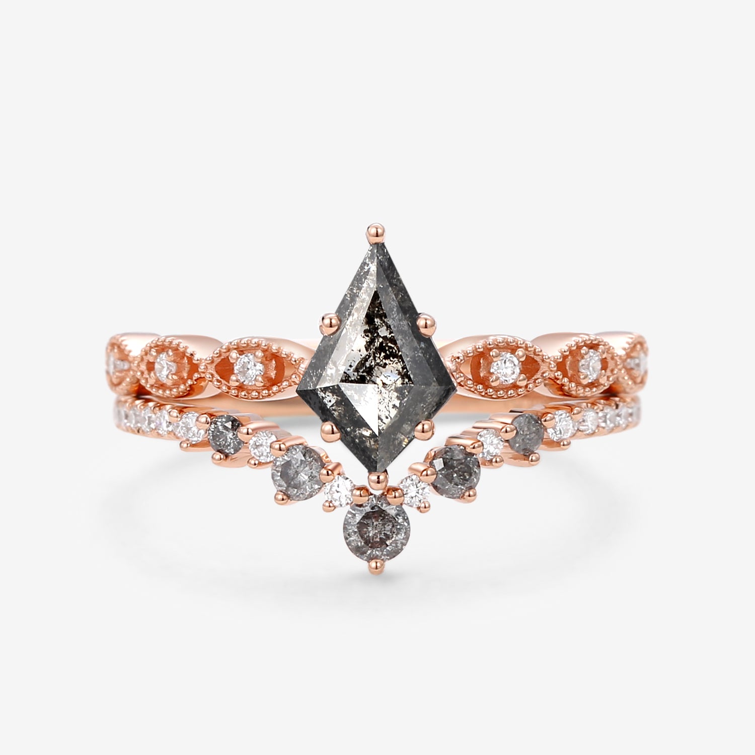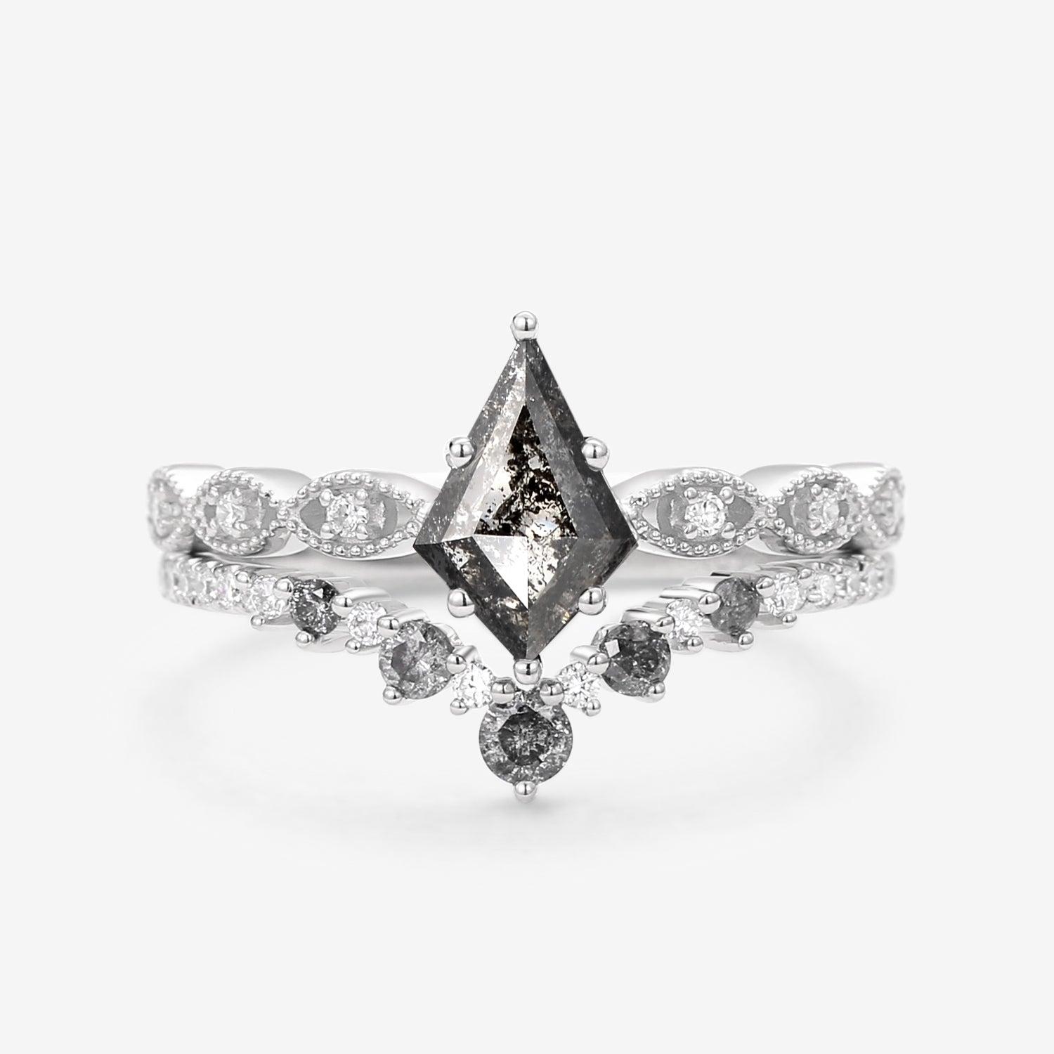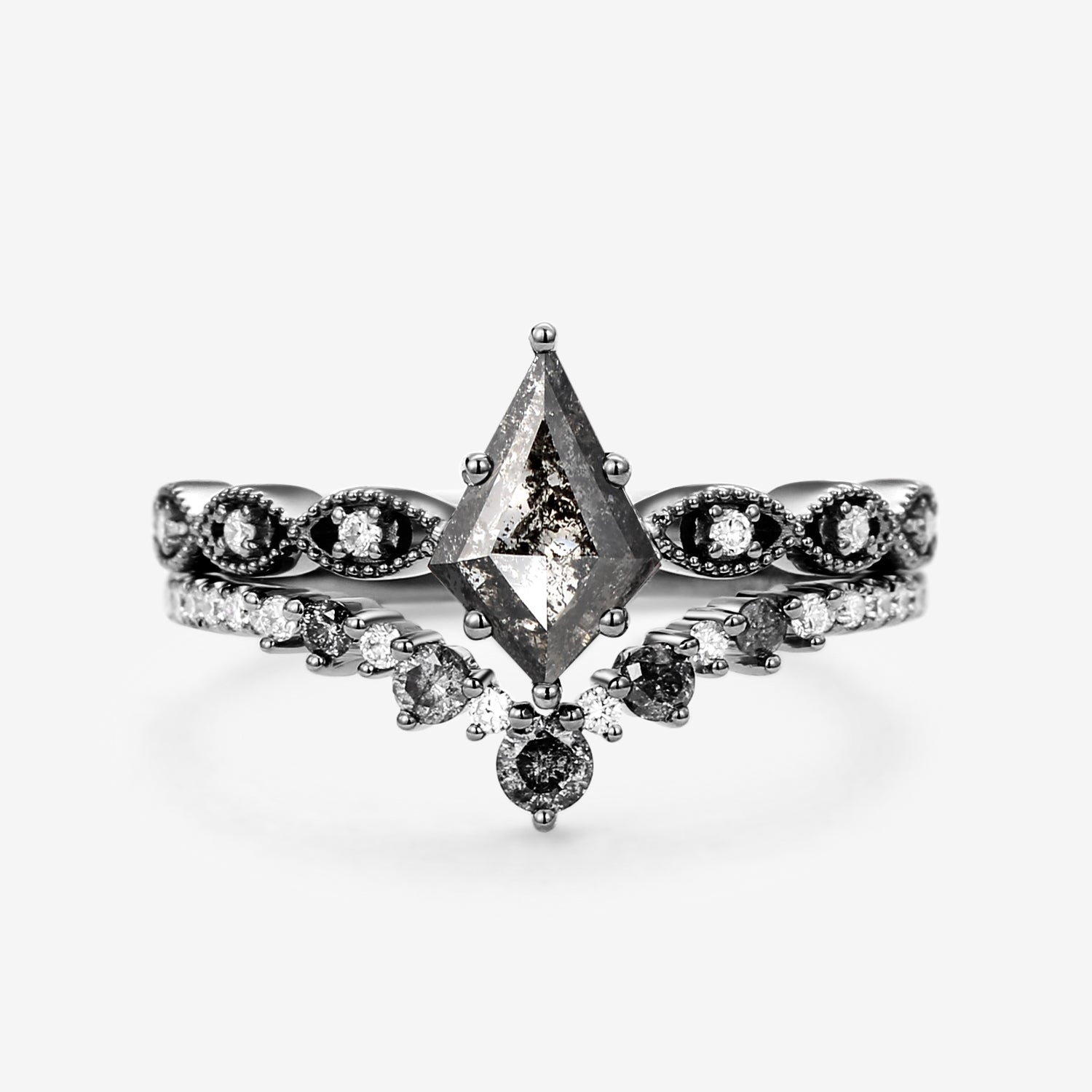 Kite & Round Salt and Pepper Diamonds Character Engagement Ring Set 2pcs - Winona