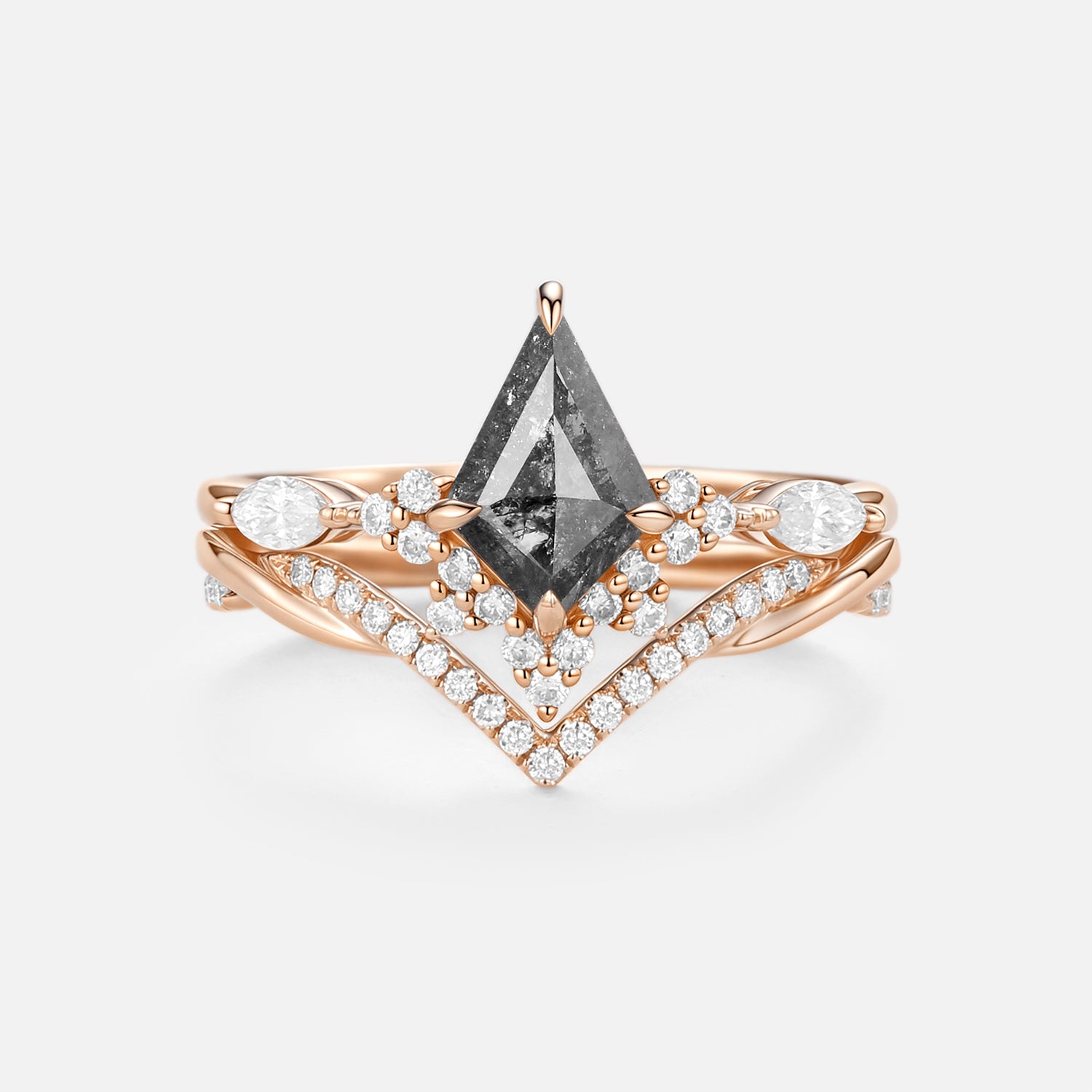 Kite Salt and Pepper Diamonds Twist Engagement Ring Set 2pcs - Gale