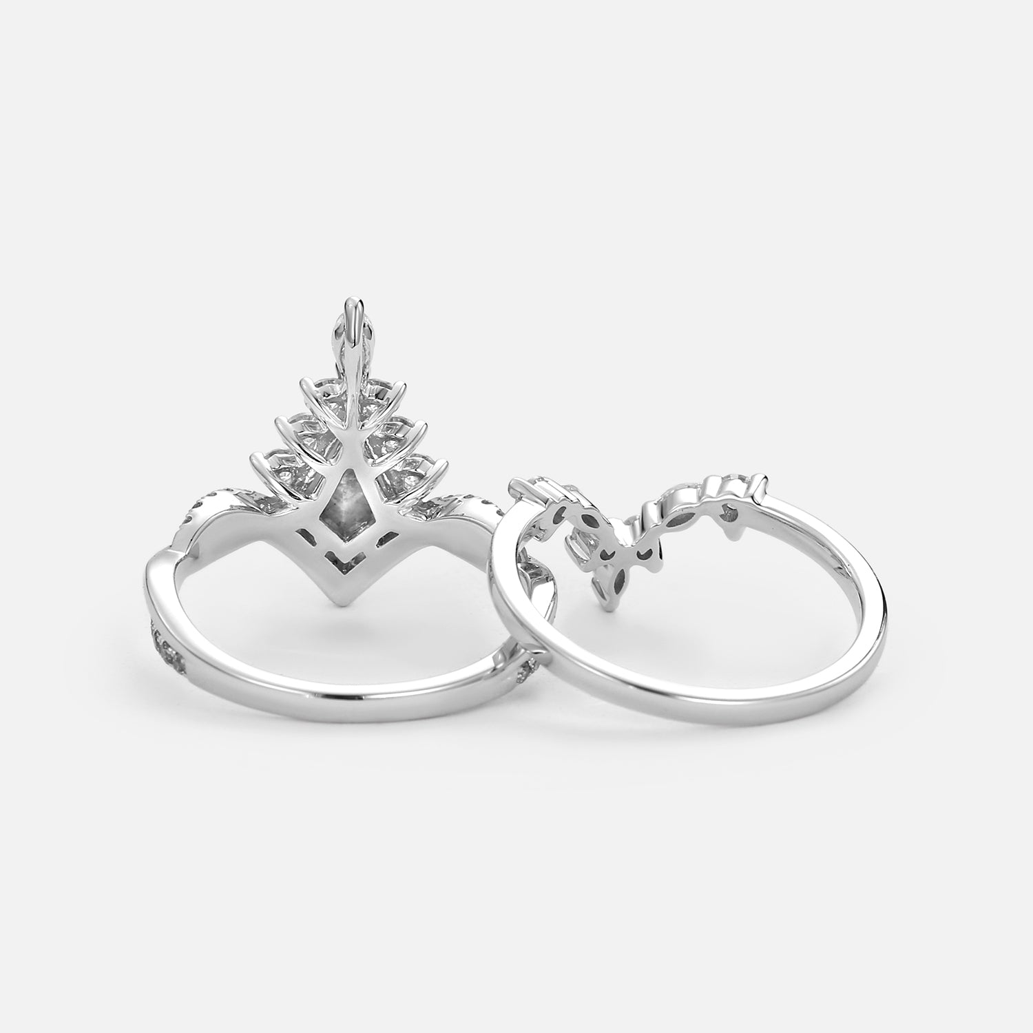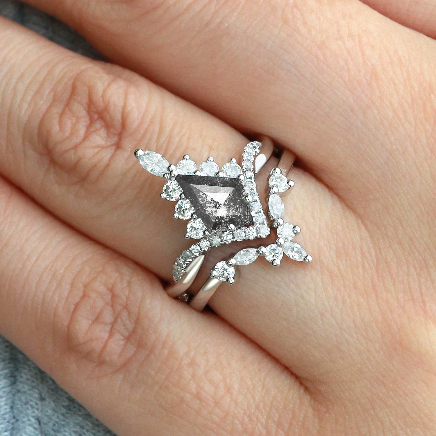 Felicegals Kite Salt & Pepper Diamonds Wedding Ring Set Natural Diamond Ring Set 2PCS Salt and Pepper Engagement Unique Kite Ring