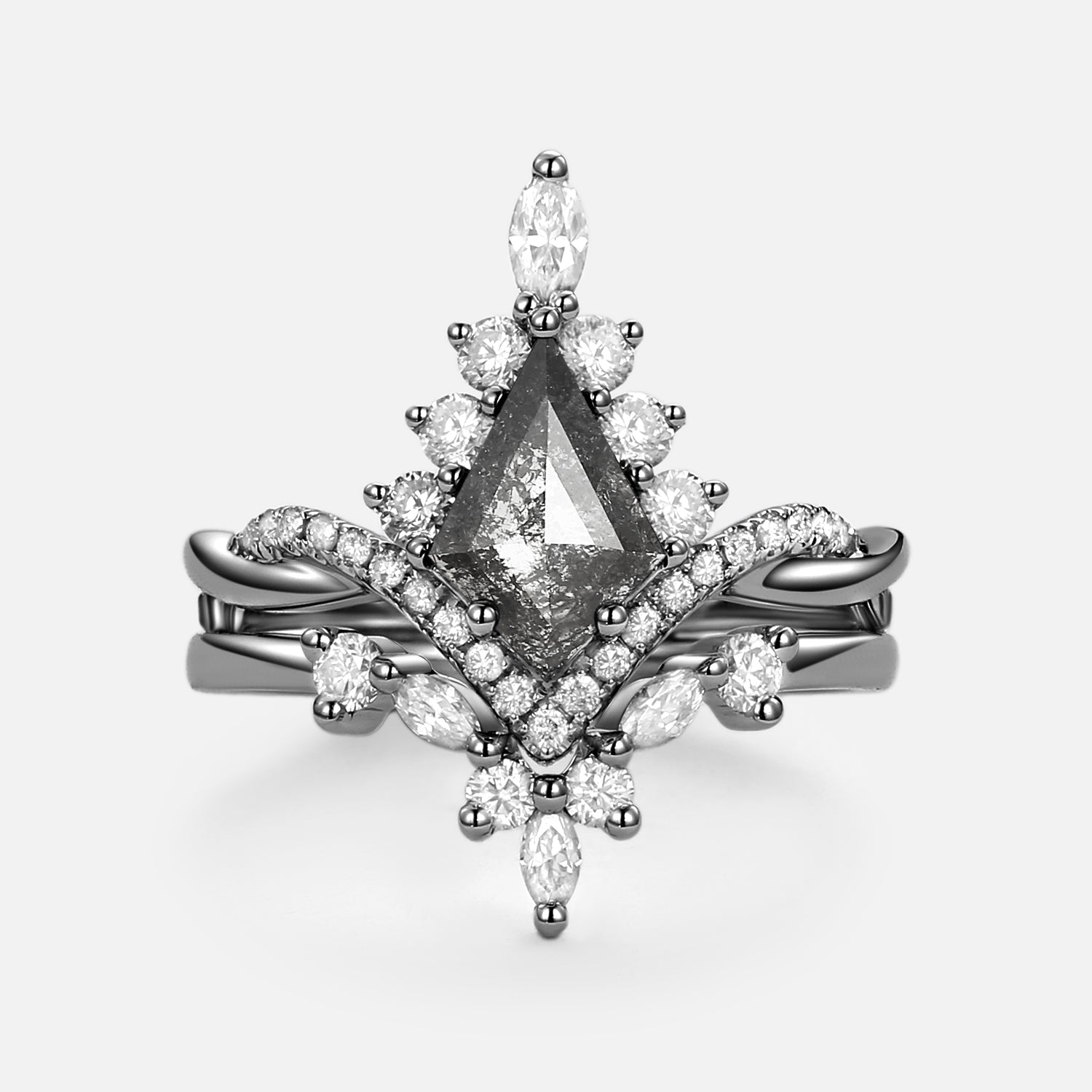 Kite Salt & Pepper Diamonds Wedding Ring Set 2pcs