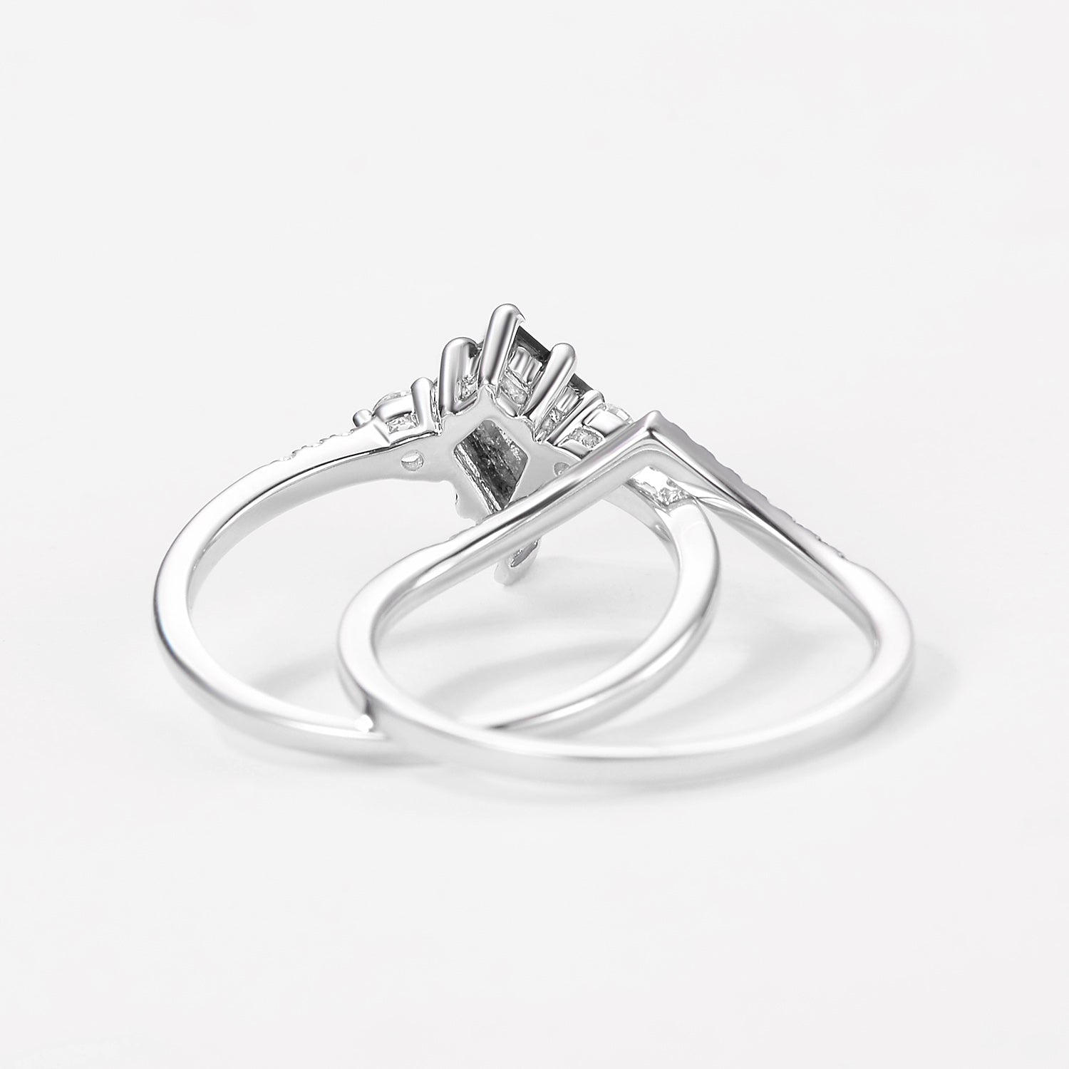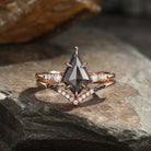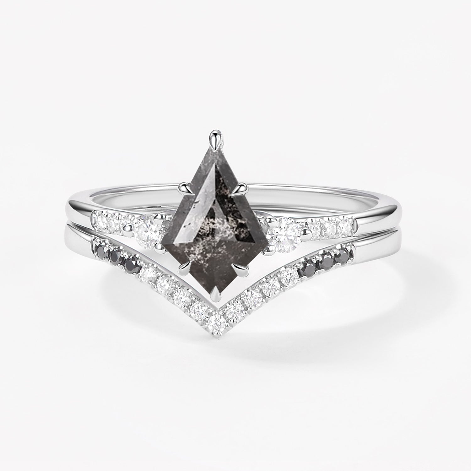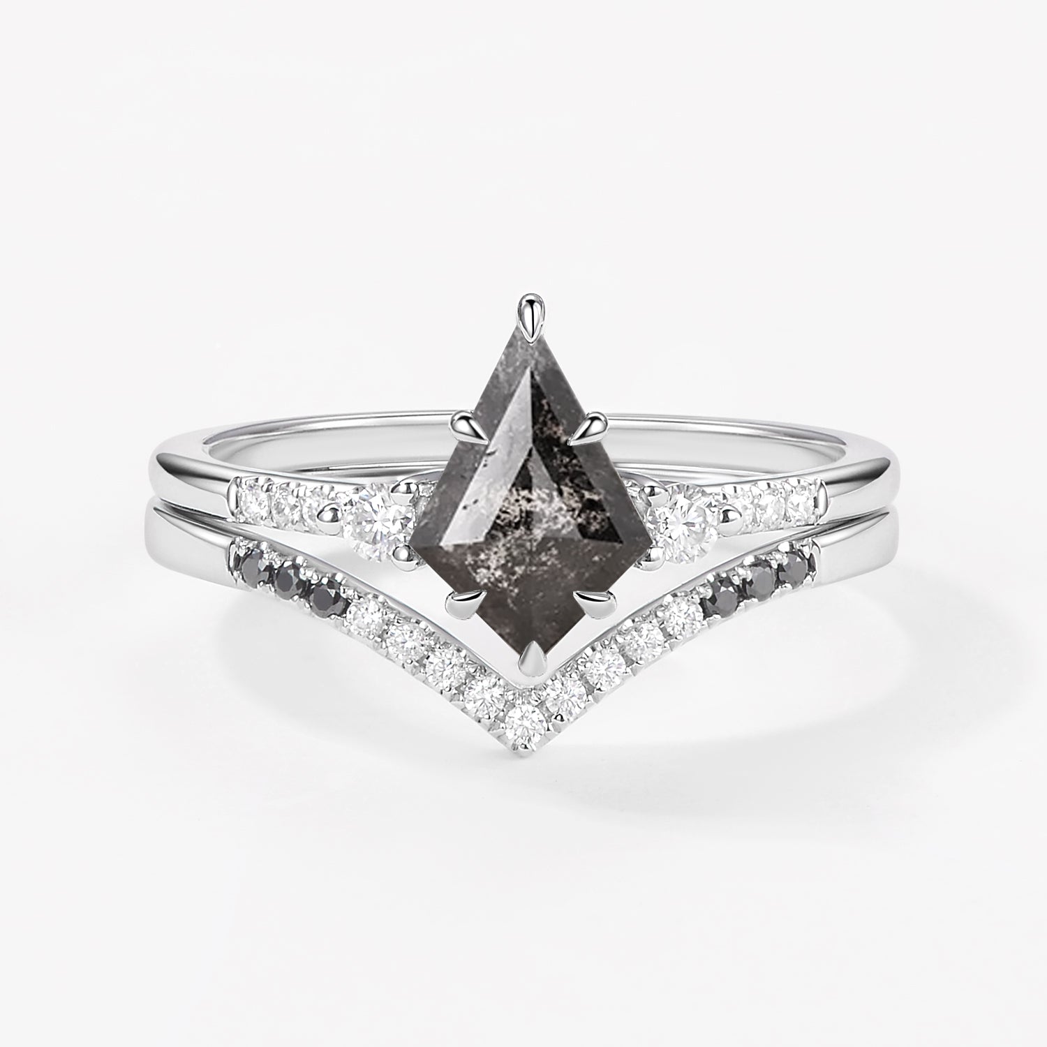 Salt and Pepper Diamonds & Black Moissanite Engagement Ring Set 2pcs