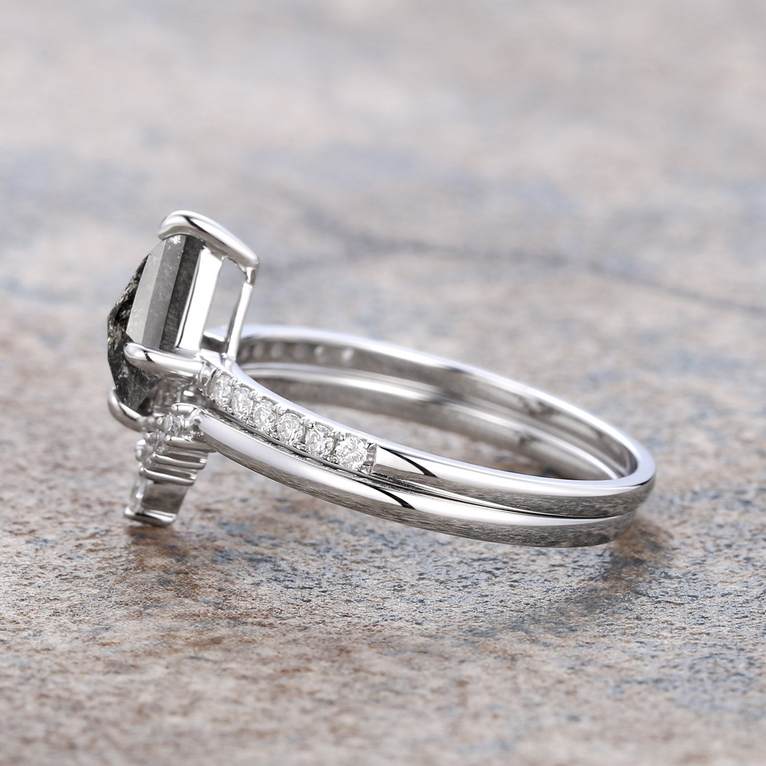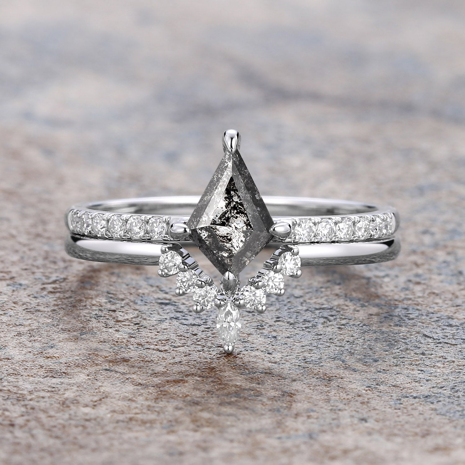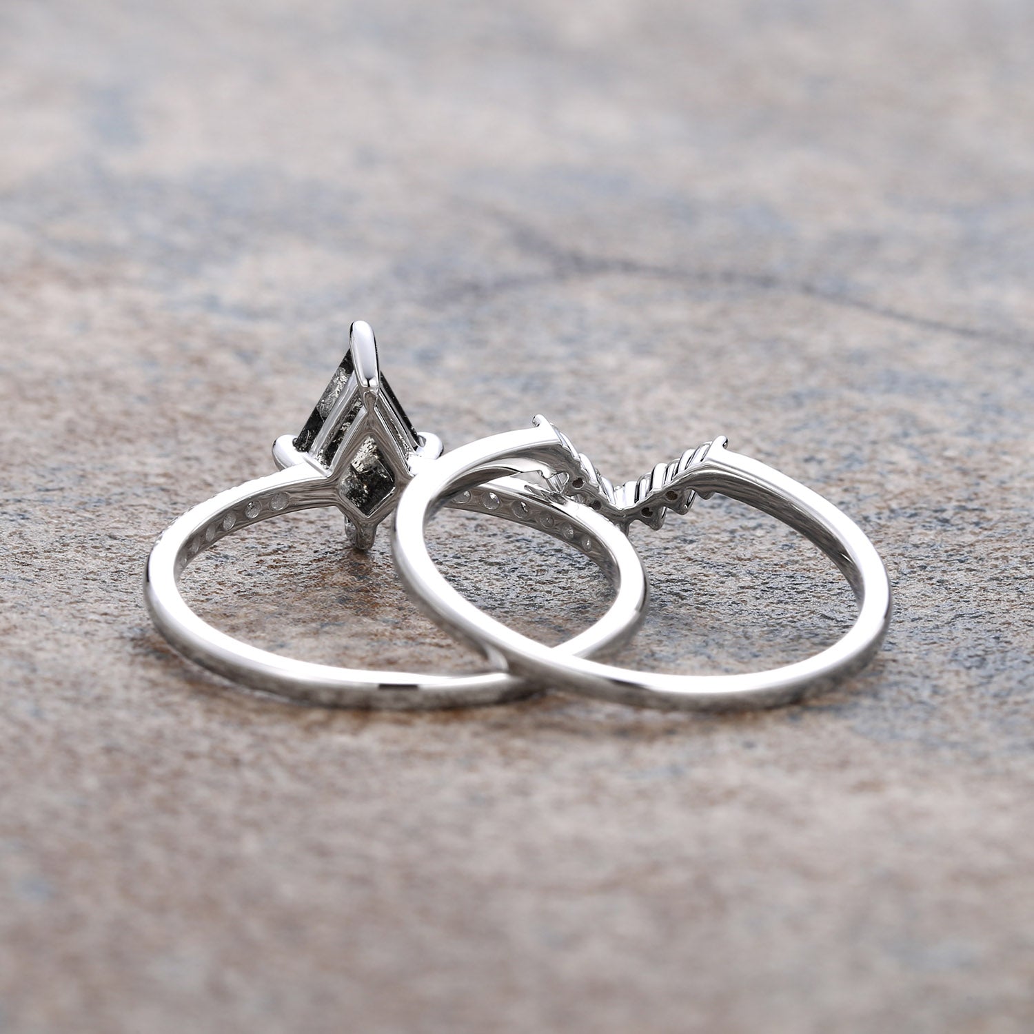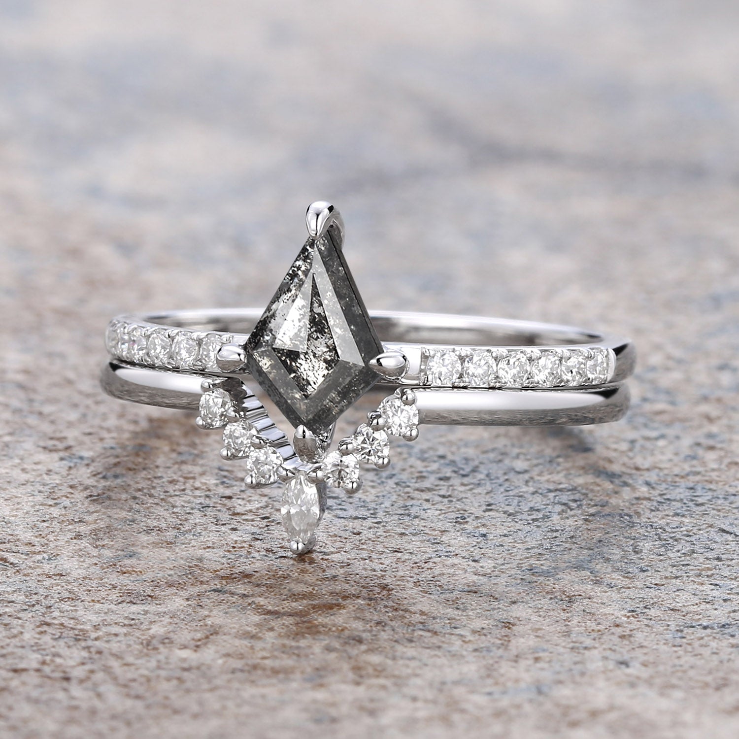 Salt and Pepper Diamonds Bridal Sets 2pcs Gift for loved one Diamond engagement ring Contemporary ring Salt and pepper diamond ring Custom kite diamond ring