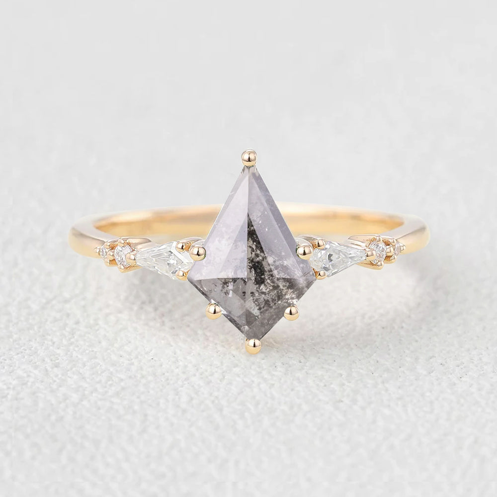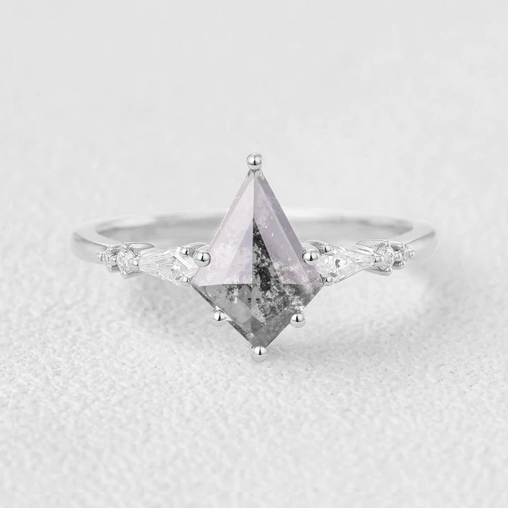 Salt and Pepper Diamonds Kite Cut Engagement Ring